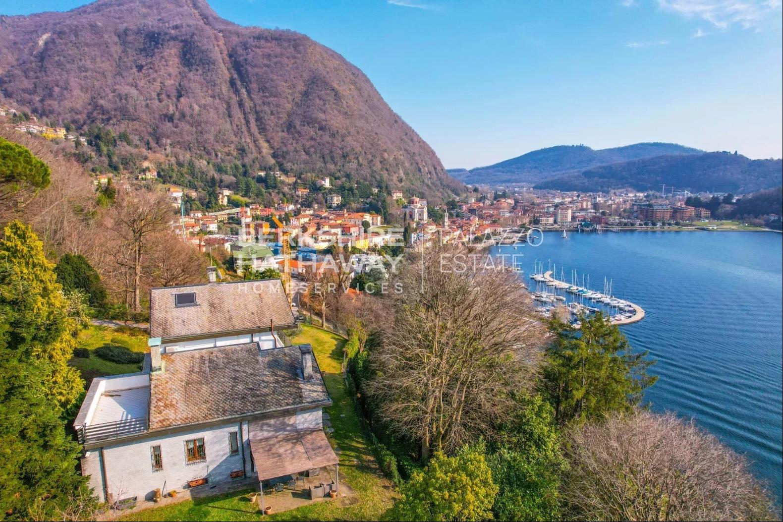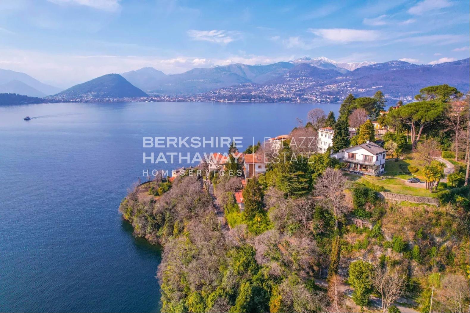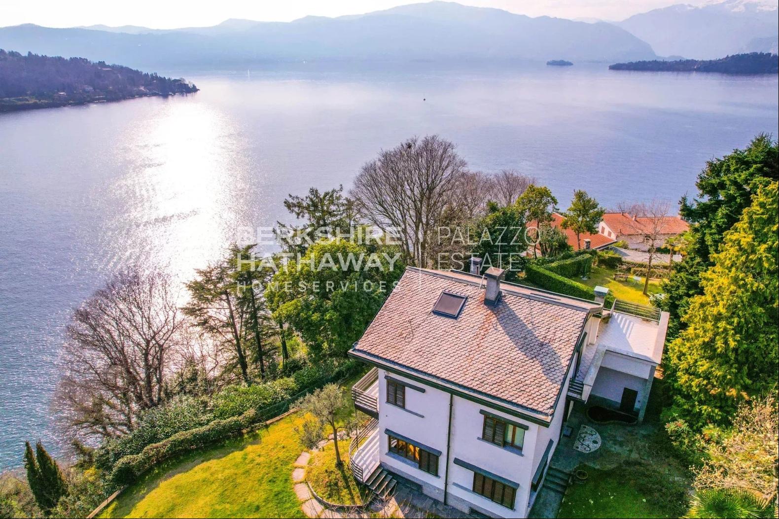With an internal surface of approximately 360 square meters, surrounded by a private park of about 1,900 square meters, the villa is arranged over two above-ground levels plus an attic floor and a semi-basement level, and includes a double garage, panoramic terrace, and additional service rooms. Renovated in 1992 and meticulously maintained, the property is in excellent condition and ready to move into.The residence stands on the sunny hillside of Laveno-Mombello, enjoying a privileged elevated position with an open panoramic view over Lake Maggiore. Its southwest exposure ensures natural light throughout the entire day. The town center and the lakeside promenade are reachable on foot in just a few minutes, allowing residents to enjoy tranquility while remaining close to all services.The interiors offer generous, harmonious spaces enhanced by quality finishes and abundant natural light. The ground floor features an elegant living room with fireplace and pellet stove, a dining room, and a fully equipped eat-in kitchen, complemented by a guest bathroom with shower and a spacious utility room currently used as laundry and storage. Large glass windows create a seamless connection with the outdoor areas and emphasize the breathtaking lake view, making the living area particularly enjoyable in every season.The first floor hosts two spacious suites, both opening onto a magnificent panoramic terrace overlooking the lake. Each suite includes a large wardrobe area and a bathroom equipped with whirlpool tub, shower, and double washbasin, offering maximum comfort and privacy. The attic floor provides an additional bedroom together with a convenient storage area in the eaves.The semi-basement level further enhances the property with functional and leisure spaces, including a study, a large tavern room currently arranged as a billiard room, and a bathroom with shower, as well as a cellar and a spacious garage accommodating two cars comfortably.Outside, the well-kept English-style garden surrounds the villa, creating pleasant scenery throughout the seasons. A refined covered porch with barbecue area and wood-fired pizza oven, facing the lake, offers an ideal setting for outdoor dining and relaxation.The villa is equipped with air conditioning in the bedrooms, pre-installation for an automatic irrigation system with rainwater recovery, alarm system, security entrance door, video intercom, wooden window frames with double glazing, and marble and parquet flooring, all contributing to comfort, security, and quality of living.In addition, there is the possibility to purchase separately an adjacent building plot of approximately 600 square meters, with an available building volume of about 100 square meters, ideal for constructing a panoramic guesthouse or for extending the existing property, at a price of €200,000.Disclaimer: The information is purely indicative and is in no way attributable to a contractual obligation. All data is subject to verification before starting any form of compromise.Energy Performance Certificate (APE) not available, delivered to the deed.