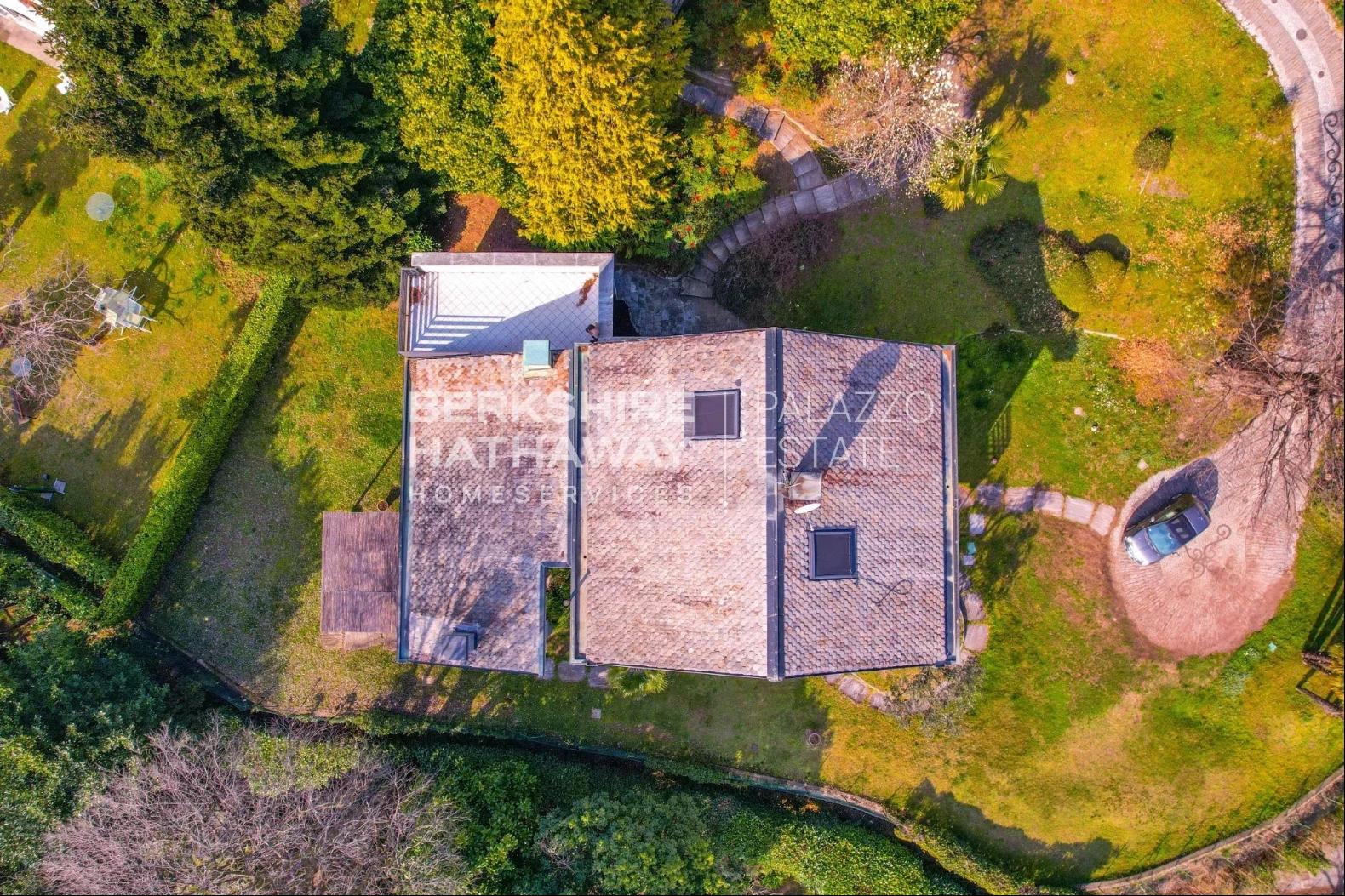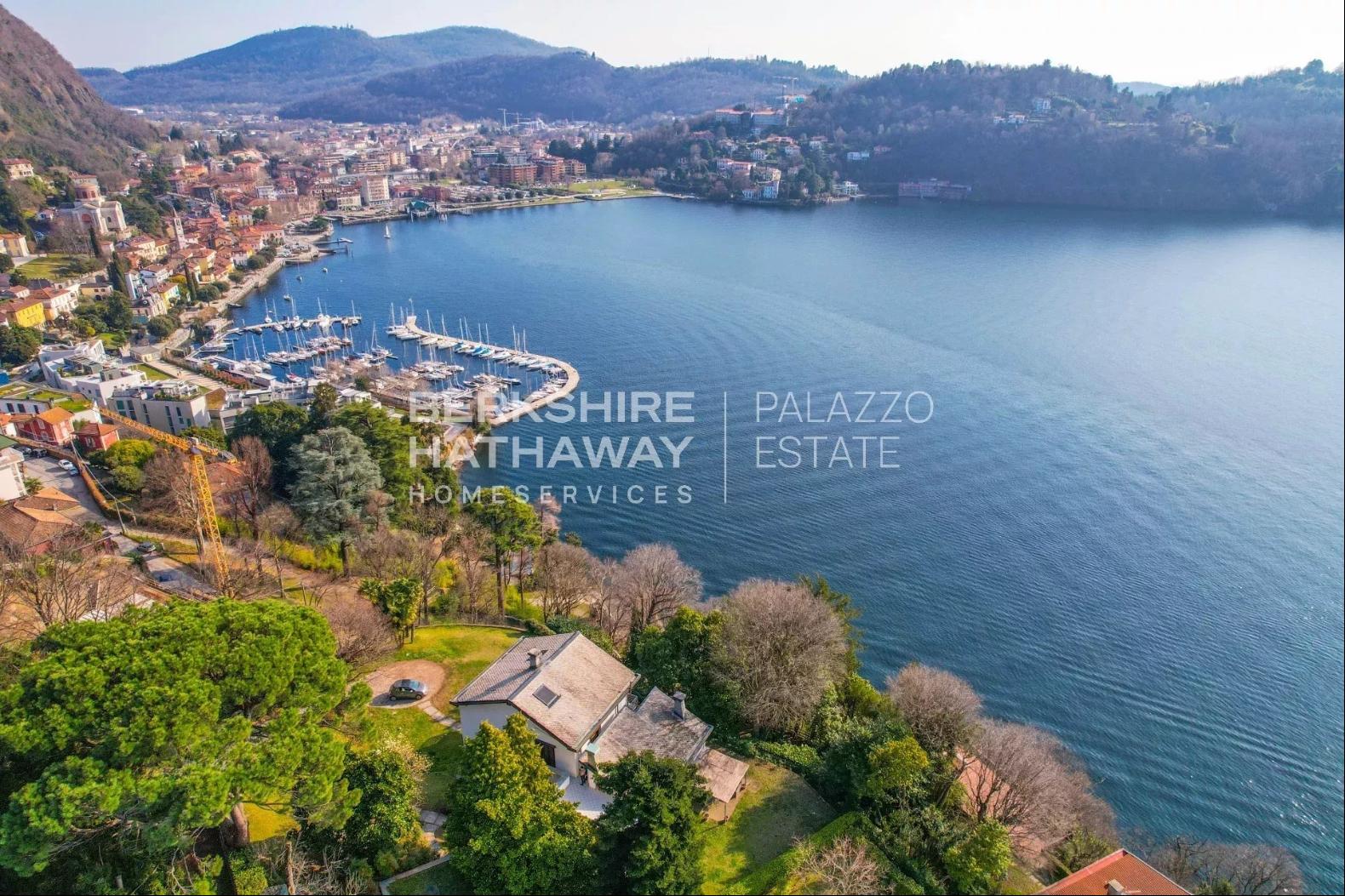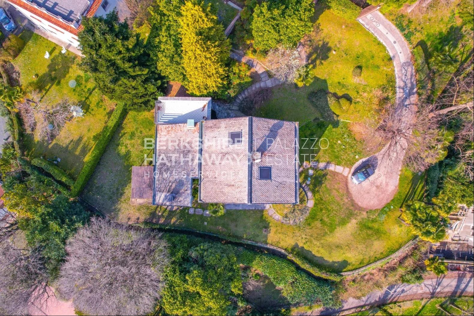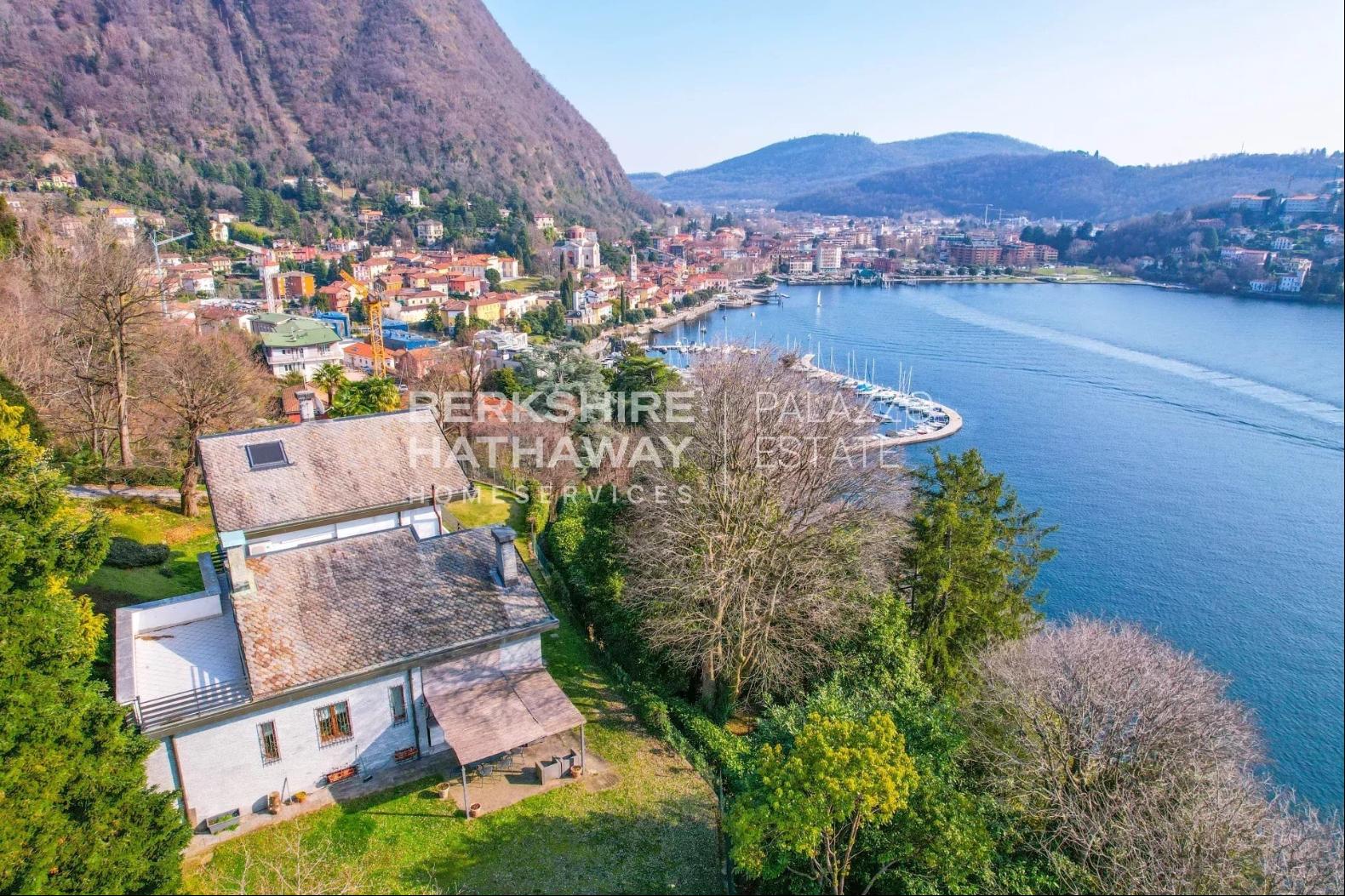 With an internal surface of approximately 360 square meters, surrounded by a private park of about 1,900 square meters, the villa is arranged over two above-ground levels plus an attic floor and a semi-basement level, and includes a double garage, panoramic terrace, and additional service rooms. Renovated in 1992 and meticulously maintained, the property is in excellent condition and ready to move into.The residence stands on the sunny hillside of Laveno-Mombello, enjoying a privileged elevated position with an open panoramic view over Lake Maggiore. Its southwest exposure ensures natural light throughout the entire day. The town center and the lakeside promenade are reachable on foot in just a few minutes, allowing residents to enjoy tranquility while remaining close to all services.The interiors offer generous, harmonious spaces enhanced by quality finishes and abundant natural light. The ground floor features an elegant living room with fireplace and pellet stove, a dining room, and a fully equipped eat-in kitchen, complemented by a guest bathroom with shower and a spacious utility room currently used as laundry and storage. Large glass windows create a seamless connection with the outdoor areas and emphasize the breathtaking lake view, making the living area particularly enjoyable in every season.The first floor hosts two spacious suites, both opening onto a magnificent panoramic terrace overlooking the lake. Each suite includes a large wardrobe area and a bathroom equipped with whirlpool tub, shower, and double washbasin, offering maximum comfort and privacy. The attic floor provides an additional bedroom together with a convenient storage area in the eaves.The semi-basement level further enhances the property with functional and leisure spaces, including a study, a large tavern room currently arranged as a billiard room, and a bathroom with shower, as well as a cellar and a spacious garage accommodating two cars comfortably.Outside, the well-kept English-style garden surrounds the villa, creating pleasant scenery throughout the seasons. A refined covered porch with barbecue area and wood-fired pizza oven, facing the lake, offers an ideal setting for outdoor dining and relaxation.The villa is equipped with air conditioning in the bedrooms, pre-installation for an automatic irrigation system with rainwater recovery, alarm system, security entrance door, video intercom, wooden window frames with double glazing, and marble and parquet flooring, all contributing to comfort, security, and quality of living.In addition, there is the possibility to purchase separately an adjacent building plot of approximately 600 square meters, with an available building volume of about 100 square meters, ideal for constructing a panoramic guesthouse or for extending the existing property, at a price of €200,000.Disclaimer: The information is purely indicative and is in no way attributable to a contractual obligation. All data is subject to verification before starting any form of compromise.Energy Performance Certificate (APE) not available, delivered to the deed.