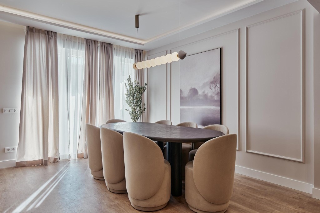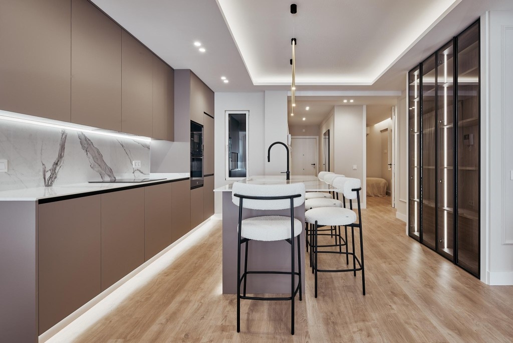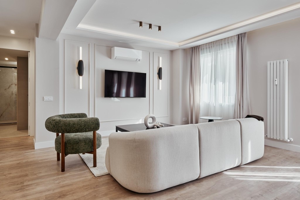 We offer for sale this magnificent property facing the courtyard of the block of 160 square metres and three bedrooms, renovated brand new, located on the first floor of a property with a modern facade built in 1960 and located in the most sought after area of the Salamanca-Goya district in one of the most emblematic streets of the neighbourhood and located in the commercial area of Goya. The property has a concierge service.Located on the first floor of a representative building, the property has great advantages that make it a very attractive option, not only for its excellent location and the quality of the refurbishment, but also for its marked stately character with high ceilings and for being a very bright property due to its large terrace and windows facing a very quiet and sunny courtyard.This property is distributed in a reception area consisting of a hall, living room with two rooms and open to this, in the dining area we have an open kitchen and equipped with island, fully furnished and equipped with high-end appliances, the living room has access to a nice terrace. In the sleeping area we have three large bedrooms, the master bedroom and a second bedroom are en suite with bathroom, the master bedroom also has a large dressing room, another large bedroom has windows to a large patio of lights, another bathroom gives service to this last bedroom and also as a guest bathroom. All the bedrooms have fitted wardrobes.It is worth highlighting the quality of the refurbishment carried out in which the best materials have been used, with air conditioning by independent splits in each room, electrified blinds and a great thermal and acoustic insulation and the generous entrance of light that this flat has through its terrace and its large windows. The property is sold furnished and decorated by a prestigious interior design studio.The property is perfectly communicated by public transport with the whole city.