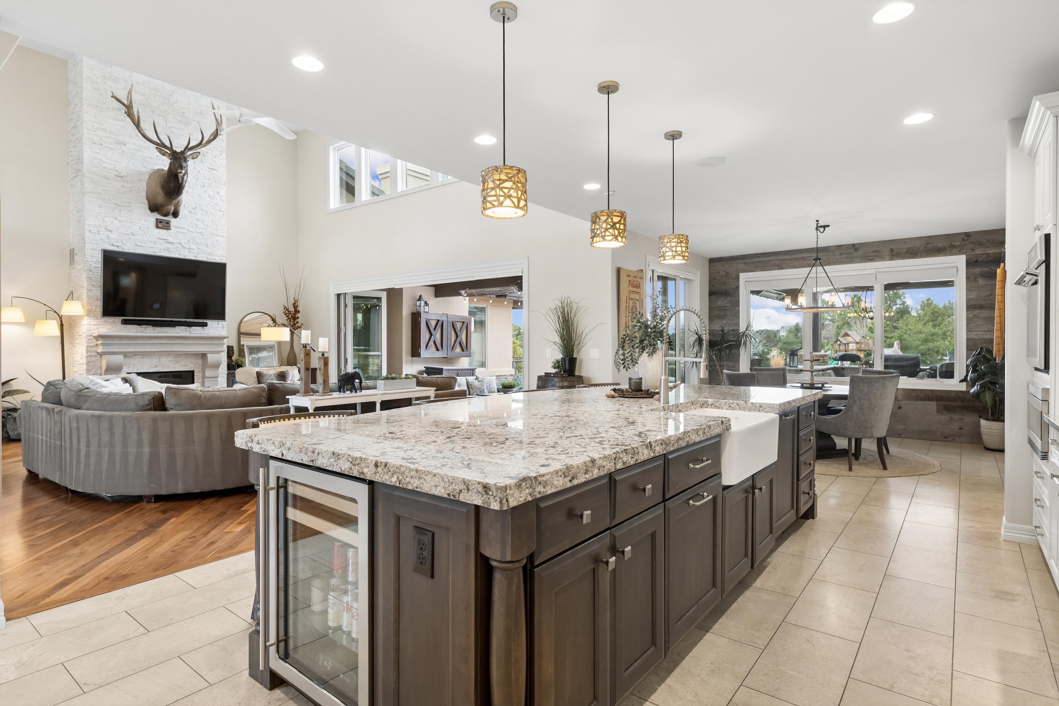 Welcome to 6719 Tremolite Drive. This extraordinary 1.2-acre estate is a true masterpiece, boasting five bedrooms and seven bathrooms. From the moment you enter, you'll be greeted by an open floor plan that seamlessly integrates indoor and outdoor living. The expansive layout features Nano doors that fully open, inviting the stunning exterior into your home.The gourmet kitchen is a culinary enthusiast's dream, featuring a large island with ample seating, a beverage refrigerator, dishwasher, and an impressive amount of cabinet space that provides plenty of room for all your culinary essentials.While the main floor master suite offers a private patio, gas fireplace, dual custom closets, and a luxurious bathroom complete with two vanity areas, a walk-in shower, standalone tub, and remote-controlled custom blackout blinds, ascend to the upper level, where three additional bedrooms each boast their own en suite bathrooms. Relax and watch a movie or grab a book in the cozy loft area, which also serves as a fantastic homework space.The lower level is an entertainer's paradise, featuring a large screen projector for movie nights and football games, an expansive entertaining area with a bar, a golf simulator, and a gym area. This level also includes a guest bedroom with its own en suite bathroom, a game area, and a convenient half bath.Step outside to discover your personal backyard oasis, complete with an in-ground pool, a hot tub and waterslide, a waterfall feature, an in-ground trampoline, and a play gym. The outdoor kitchen is equipped with heaters, ambient lighting, and a mounted TV, perfect for entertaining year-round. The property is further enhanced by 103 trees, providing privacy and tranquility. It is also a smart house, where all lights can be controlled by one simple pad.Complete with a four-car side-load garage and beautiful water features at the front entrance, this home is a truly remarkable find that should not be missed.