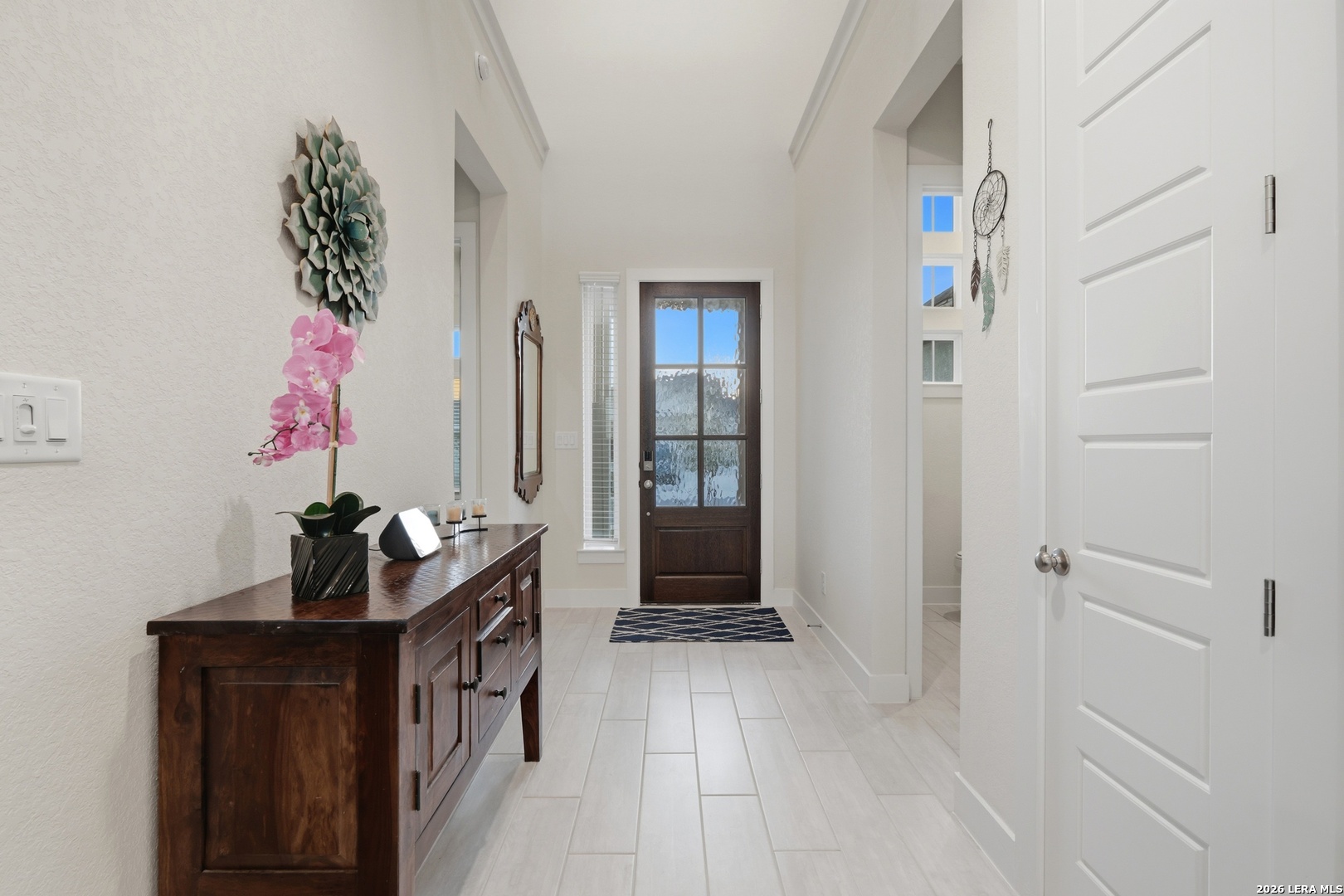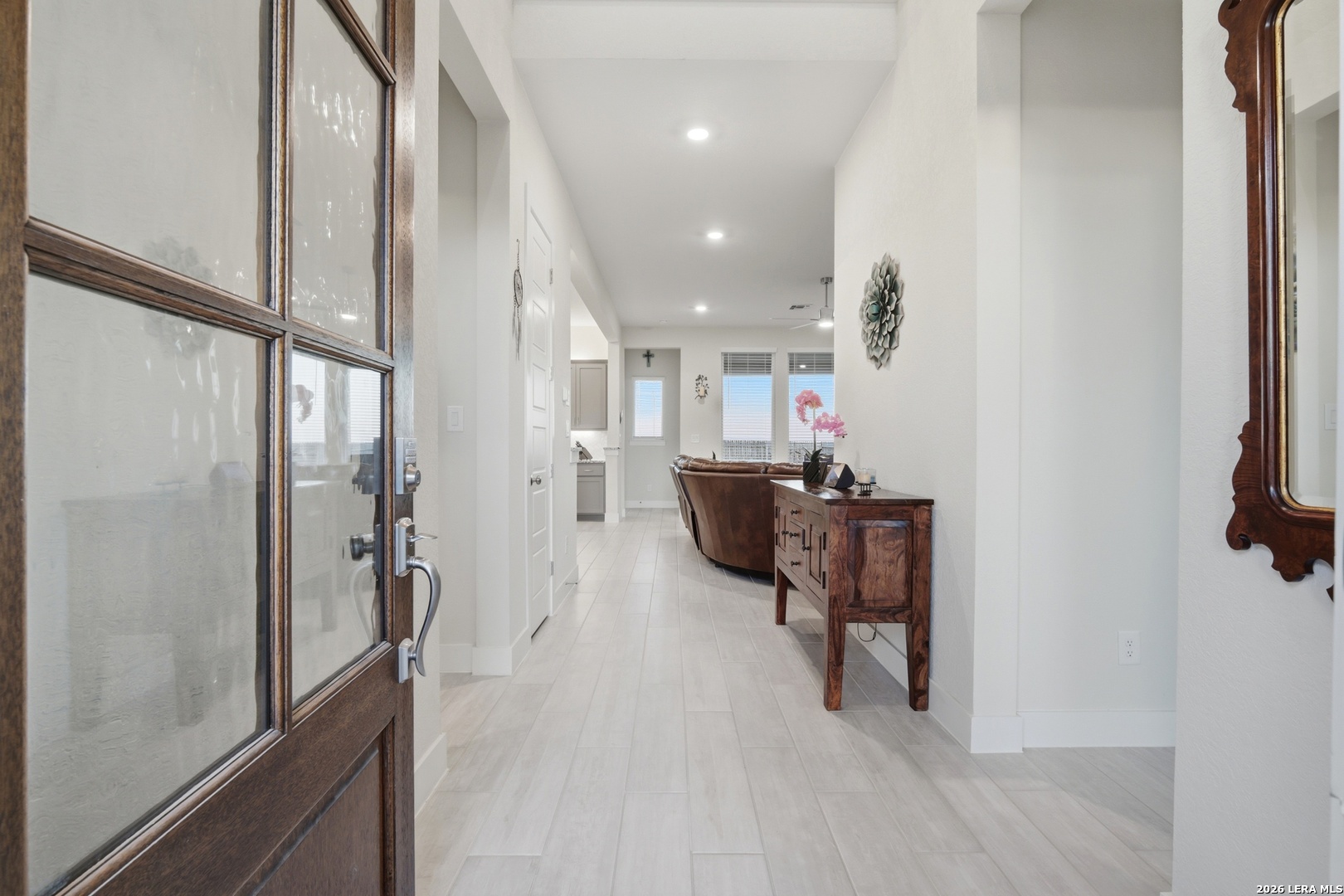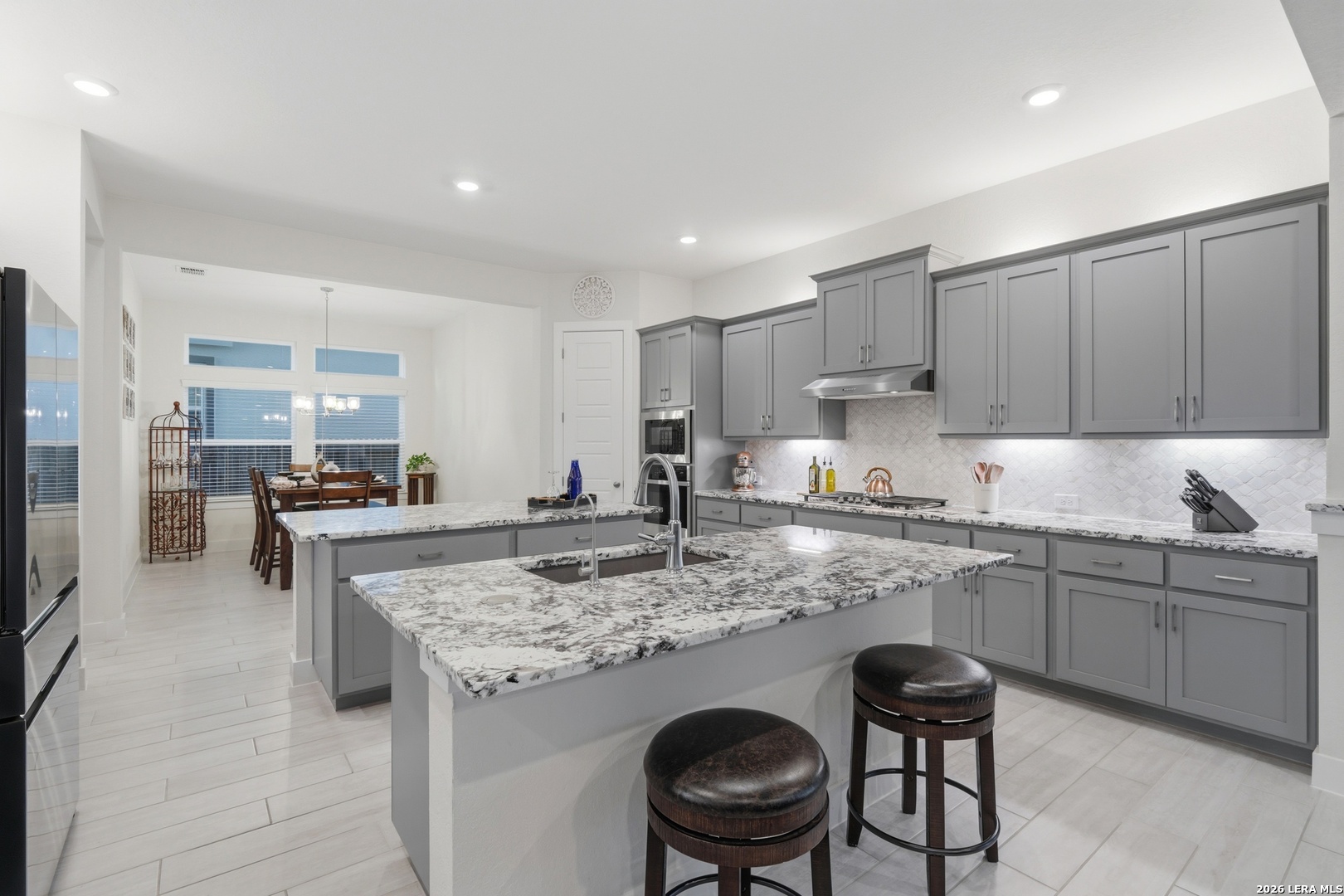 This exceptional, almost one-year-old home truly looks and feels Brand New, perfectly combining luxury, space, and functionality. Located in the desirable subdivision of Village at Three Oaks, this two-story home offers outstanding curb appeal with its four-sided masonry exterior and features 5 spacious bedrooms and 4.5 bathrooms thoughtfully designed for modern living. As you step inside, you're welcomed by the natural light from the large windows, that highlights the formal living, dining and the expansive open-concept layout. The Chef's Kitchen is truly the heart of the home, featuring two oversized islands, quartz countertops, a stylish tile backsplash, stainless steel appliances, ample cabinetry, and generous seating, ideal for entertaining or everyday meals. The main level includes a spacious primary suite with a spa-like bathroom, a garden tub, separate shower, dual vanities, and an oversized walk-in closet. A secondary bedroom with its own full bath perfect for a mother-in-law or guest suite, and the laundry room are also conveniently located downstairs. Upstairs, you'll find three additional bedrooms, two full bathrooms, and a large game room or second living area, offering flexibility and privacy for family or guests. The home also offers an oversized garage with a 3-foot extension, perfect for extra storage, a workshop area, or larger vehicles. Step outside to enjoy your private backyard with a generously sized covered patio and spacious yard perfect for gatherings & entertaining. This beautiful home truly has it all style, comfort, and lifestyle. A must-see that won't last long!