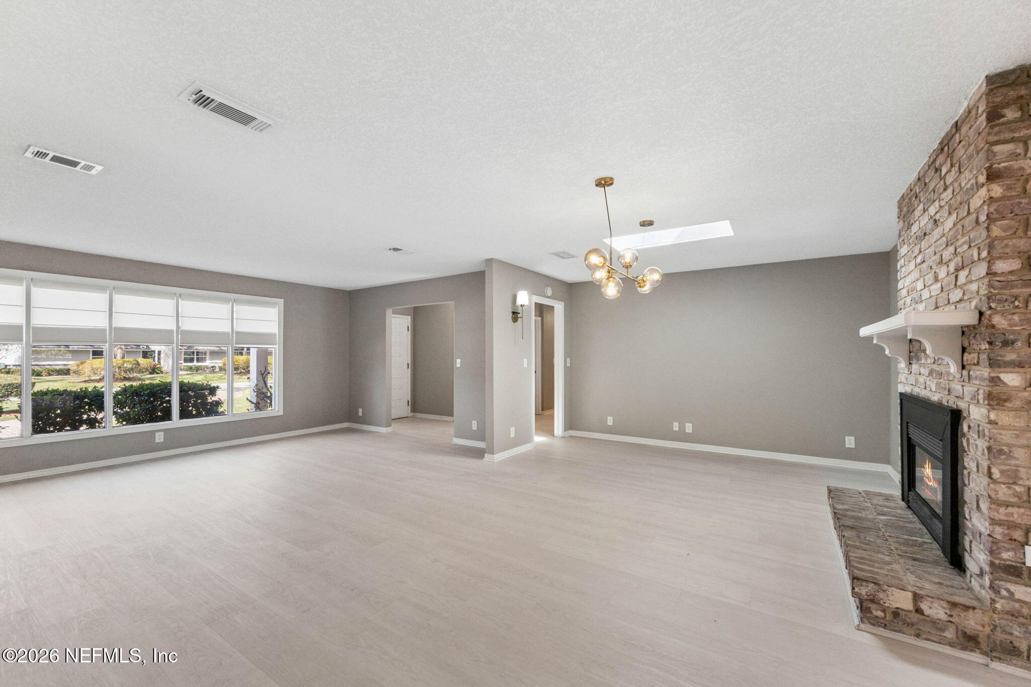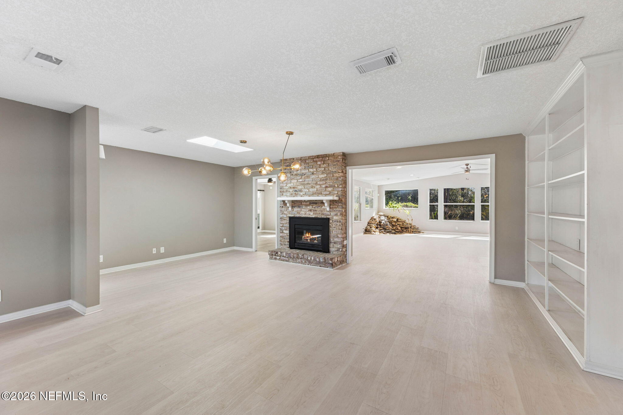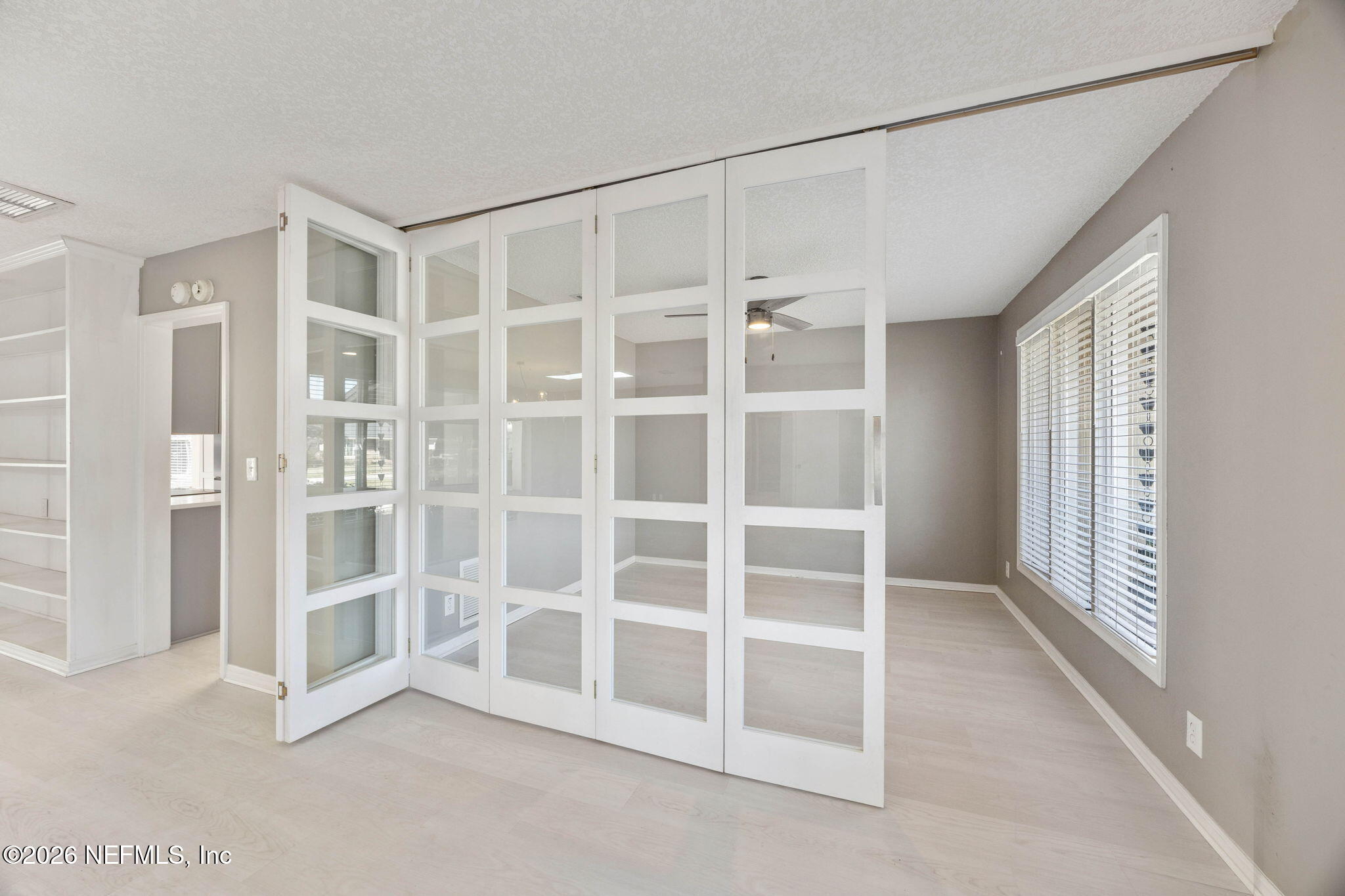 BACK ON MARKET! BUYER'S FINANCING FELL THROUGH A DAY BEFORE CLOSING. ITS YOUR CHANCE TO MAKE THIS ONE OF A KIND HOUSE YOUR HOME TODAY. Welcome to this beautifully updated 4 bedroom, 2.5 bath home situated on almost half an acre inside the prestigious, guard-gated Deerwood Country Club. From the moment you arrive, the brick circular driveway and private courtyard-entry garage create timeless curb appeal. Inside, expansive living spaces are highlighted by luxury vinyl plank flooring throughout and an abundance of natural light. The fully renovated kitchen is a true showpiece featuring quartz countertops, floor-to-ceiling custom cabinetry, luxury appliances, and a separate wine and beverage refrigerator--perfect for entertaining. The open flow into the main living areas creates both functionality and elegance. A stunning built-in stone waterfall feature brings a peaceful, spa-like ambiance to the sunroom, while the electric fireplace and built-in bookcases add warmth and character to the main living space. The flexible office/flex room with accordion doors provides privacy when needed while maintaining an open feel. The spacious primary suite is a private retreat featuring French doors that open to the backyard. The renovated spa-like bath offers a freestanding soaking tub, large walk-in glass shower with designer tile, dual vanities, and modern lighting. A custom California Closet with built-ins, drawers, and ample hanging space completes this luxurious and functional space. Step outside to your own private retreat. Beyond a charming gate, you're surrounded by mature pine trees, tranquil water views, and a cozy firepit seating area--offering a rare sense of privacy and intimacy. Additional features include washer and dryer, water softener system, spacious living areas, and thoughtful updates throughout. This is a rare opportunity to own a move-in ready home with modern finishes and serene outdoor living in one of Jacksonville's most desirable country club communities.