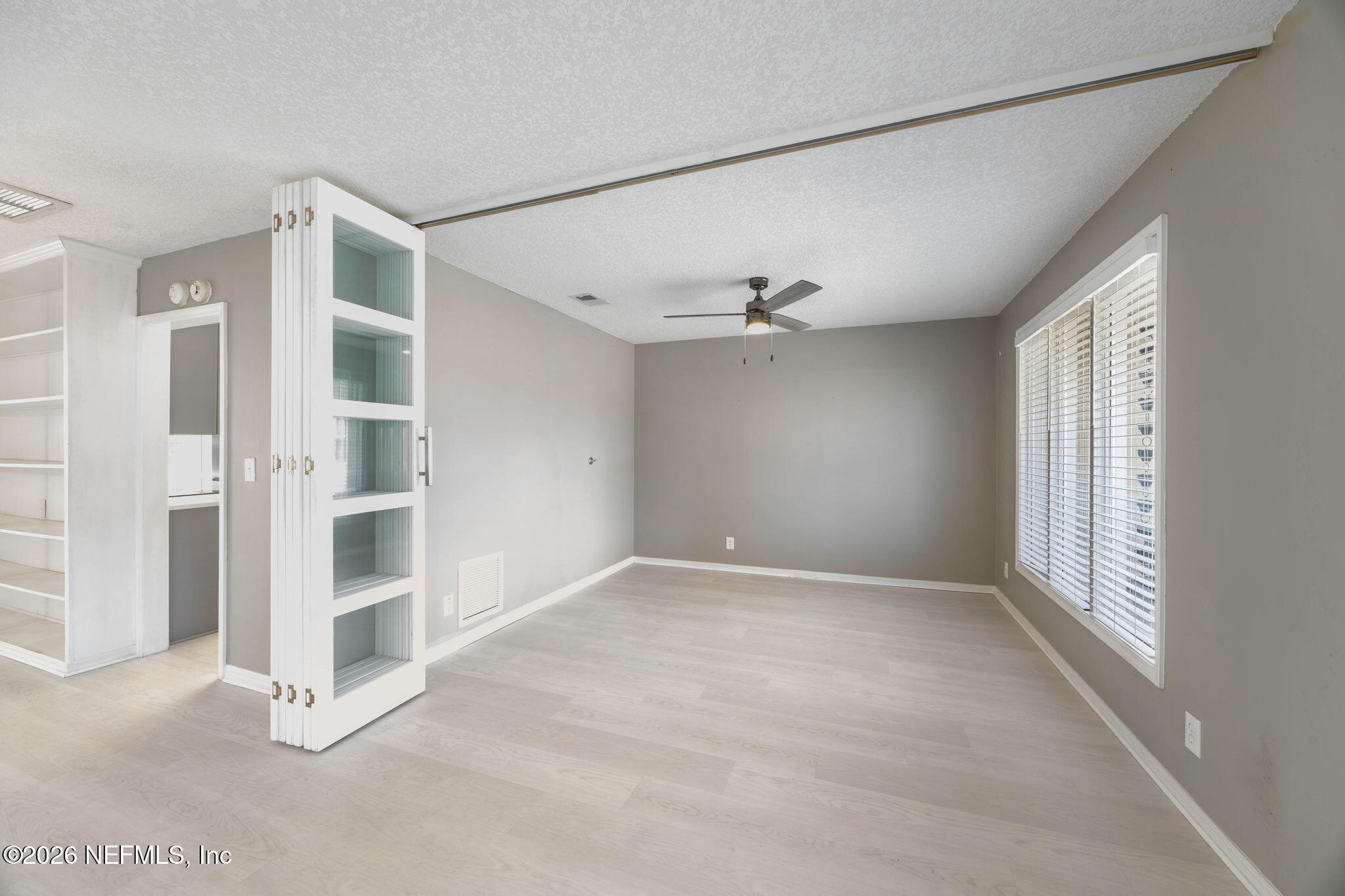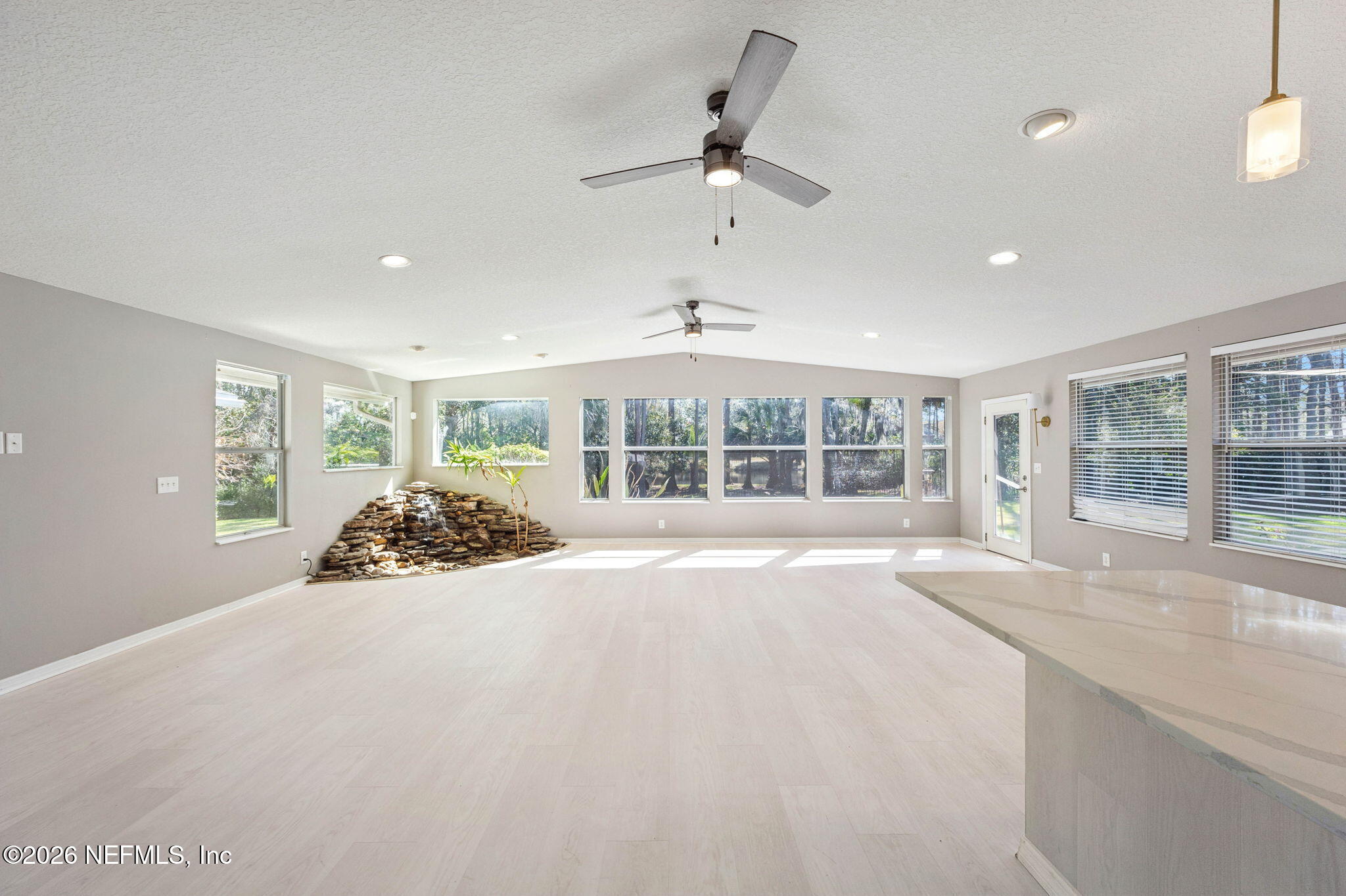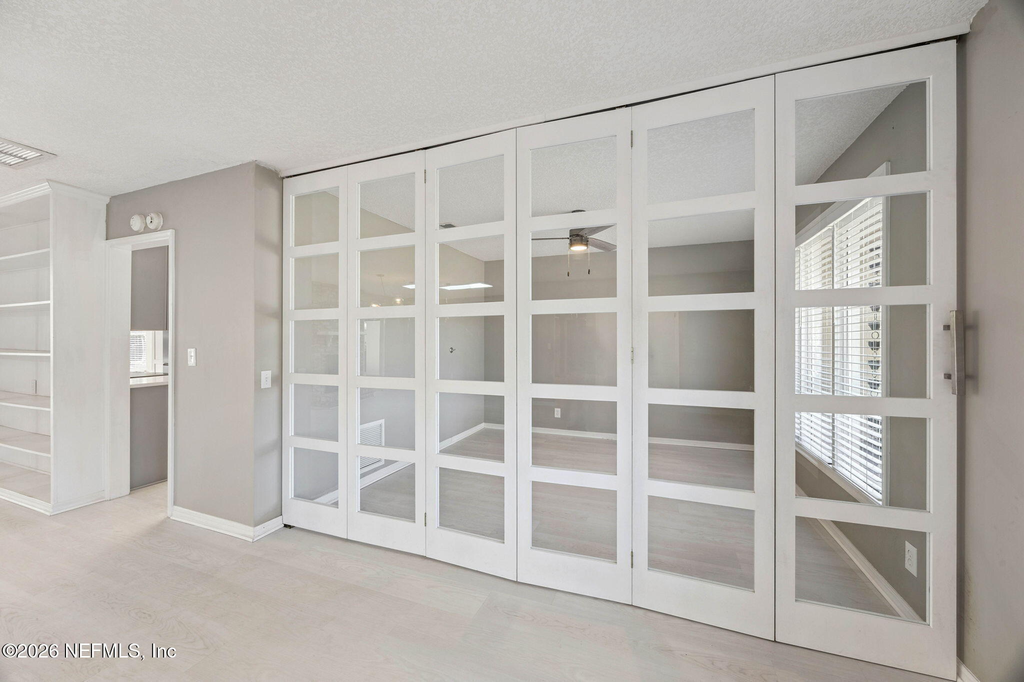BACK ON MARKET! BUYER'S FINANCING FELL THROUGH A DAY BEFORE CLOSING. ITS YOUR CHANCE TO MAKE THIS ONE OF A KIND HOUSE YOUR HOME TODAY. Welcome to this beautifully updated 4 bedroom, 2.5 bath home situated on almost half an acre inside the prestigious, guard-gated Deerwood Country Club. From the moment you arrive, the brick circular driveway and private courtyard-entry garage create timeless curb appeal. Inside, expansive living spaces are highlighted by luxury vinyl plank flooring throughout and an abundance of natural light. The fully renovated kitchen is a true showpiece featuring quartz countertops, floor-to-ceiling custom cabinetry, luxury appliances, and a separate wine and beverage refrigerator--perfect for entertaining. The open flow into the main living areas creates both functionality and elegance. A stunning built-in stone waterfall feature brings a peaceful, spa-like ambiance to the sunroom, while the electric fireplace and built-in bookcases add warmth and character to the main living space. The flexible office/flex room with accordion doors provides privacy when needed while maintaining an open feel. The spacious primary suite is a private retreat featuring French doors that open to the backyard. The renovated spa-like bath offers a freestanding soaking tub, large walk-in glass shower with designer tile, dual vanities, and modern lighting. A custom California Closet with built-ins, drawers, and ample hanging space completes this luxurious and functional space. Step outside to your own private retreat. Beyond a charming gate, you're surrounded by mature pine trees, tranquil water views, and a cozy firepit seating area--offering a rare sense of privacy and intimacy. Additional features include washer and dryer, water softener system, spacious living areas, and thoughtful updates throughout. This is a rare opportunity to own a move-in ready home with modern finishes and serene outdoor living in one of Jacksonville's most desirable country club communities.