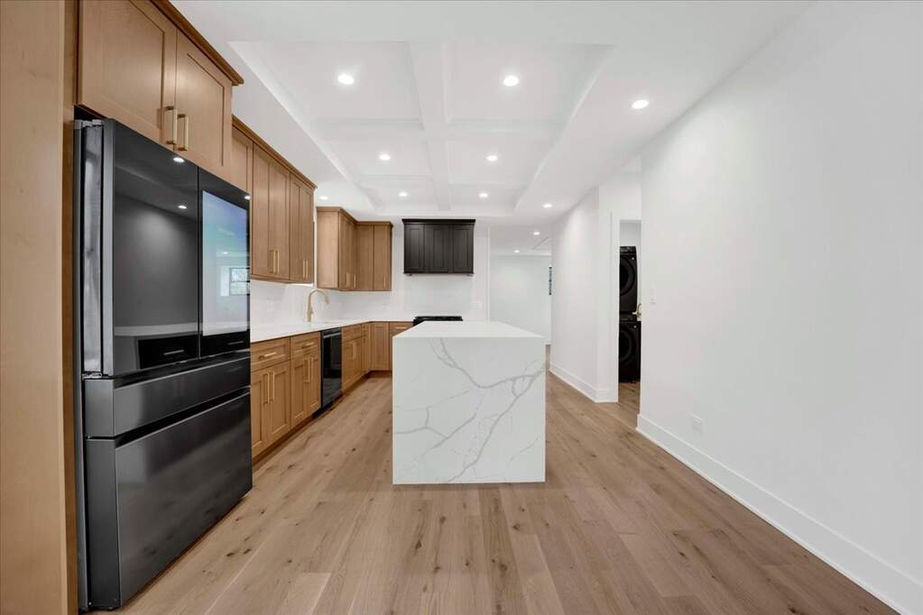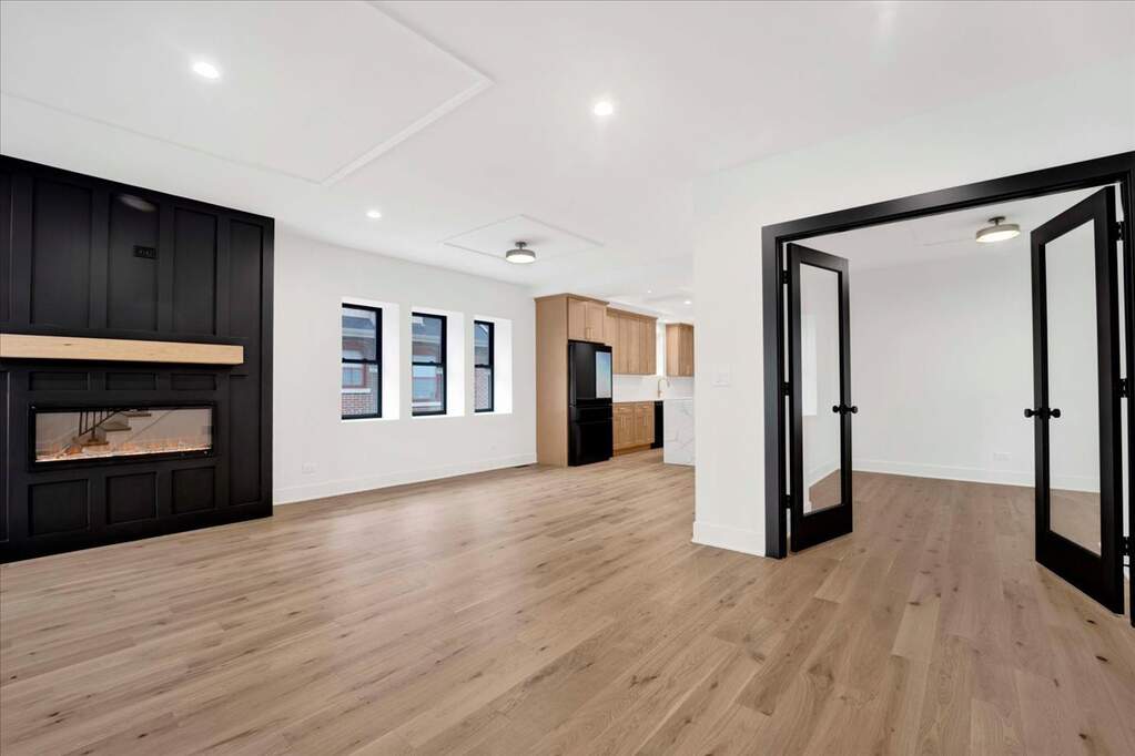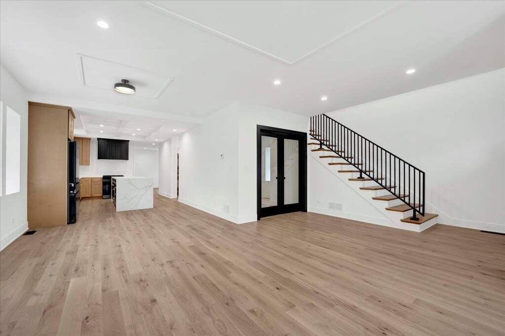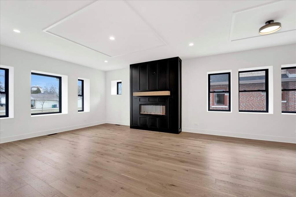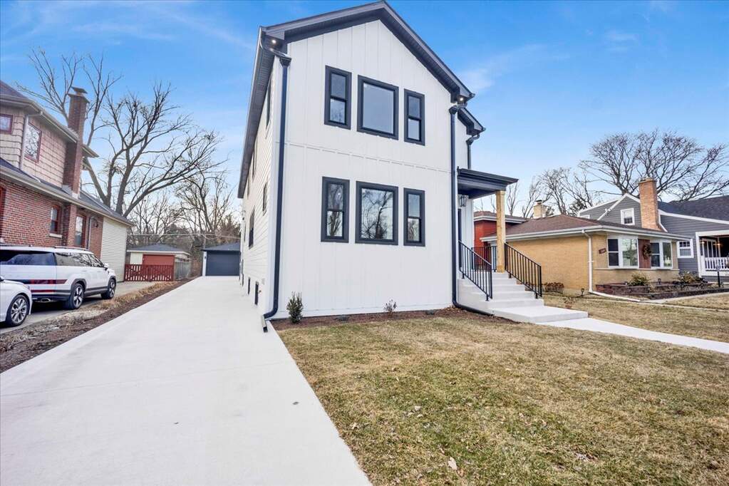 Exceptional opportunity to own a fully rebuilt modern luxury residence offering over 3,800 square feet of thoughtfully designed living space in a highly desirable Lombard location. This stunning 4 bedroom, 2.5 bath two-story home blends sophisticated design, quality craftsmanship, and a functional layout ideal for today's lifestyle. The main level features an expansive open-concept design highlighted by wide plank hardwood flooring, custom coffered ceilings, and a striking designer fireplace feature wall that anchors the living space. The chef-inspired kitchen is both elegant and practical, showcasing custom cabinetry, quartz countertops, tile backsplash, designer brass fixtures, stainless steel appliances, and an impressive oversized waterfall island perfect for entertaining and everyday living. A spacious dining area for casual and formal dinners alike and a large family room at the rear of the home with a dry bar and storage area, while a private main-level office which can be converted to a main floor 5th bedroom with glass doors provides the ideal work-from-home setting. A dedicated laundry room and stylish powder room complete the main floor. Upstairs, the luxurious primary suite offers a private retreat featuring a large walk-in closet and a spa-inspired bath with dual vanities, quartz surfaces, and an oversized double walk-in shower with multiple shower heads with designer finishes. Three additional generously sized bedrooms and a beautifully appointed full bathroom complete the upper level. The full basement provides exceptional potential for additional living space, recreation, or future customization. With its crisp modern exterior of LP SmartSide premium siding, board & batten exterior front elevation, striking black windows, premium oversized gutters with conductor heads on the front, exterior soffit accent lighting, and elevated interior finishes including Kohler plumbing fixtures throughout, this home offers the perfect balance of modern luxury and everyday comfort in an established neighborhood just minutes from downtown Lombard, Metra, parks, dining, shopping, and major expressways. A rare opportunity to own a turn-key luxury home where thoughtful design and modern living come together seamlessly.