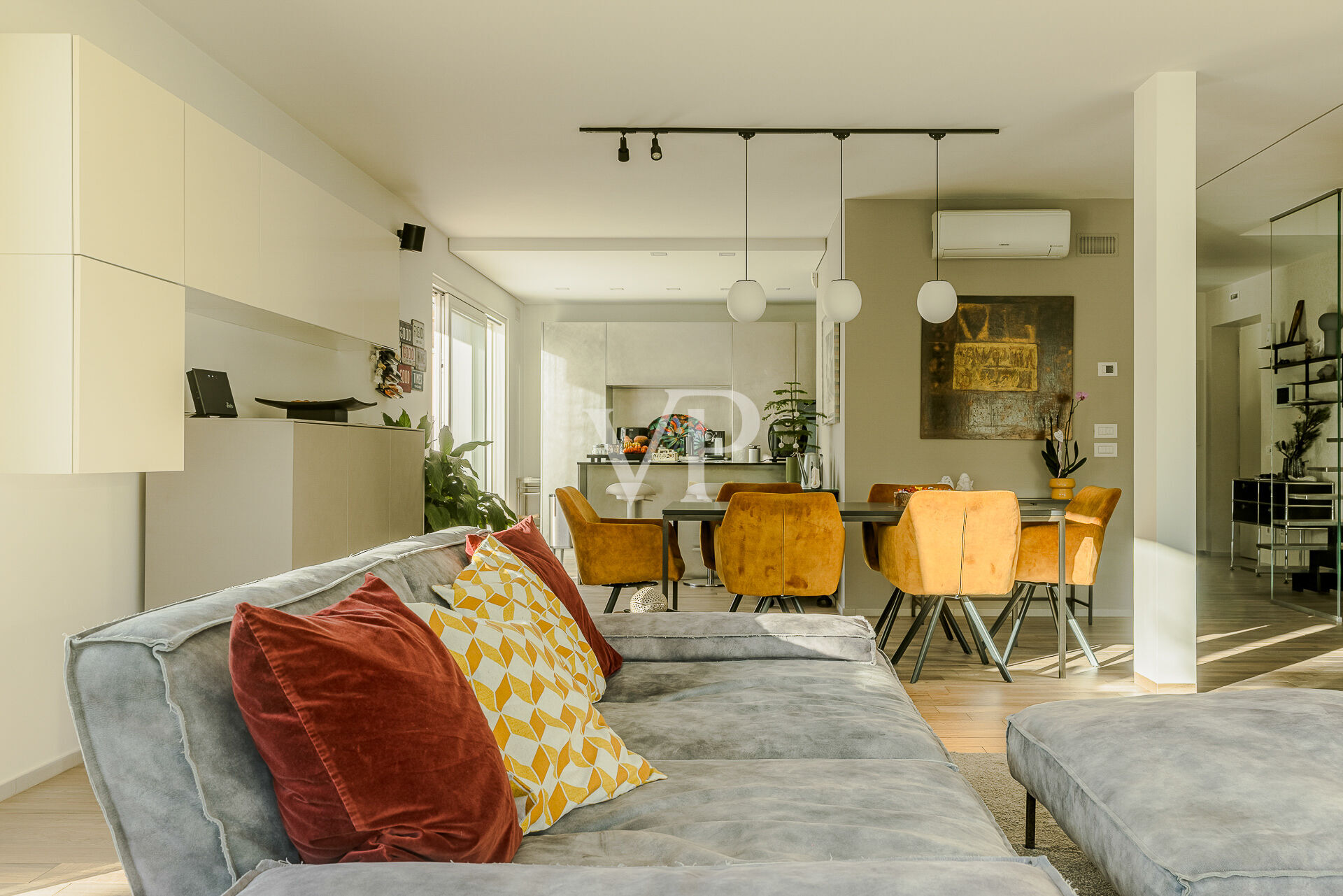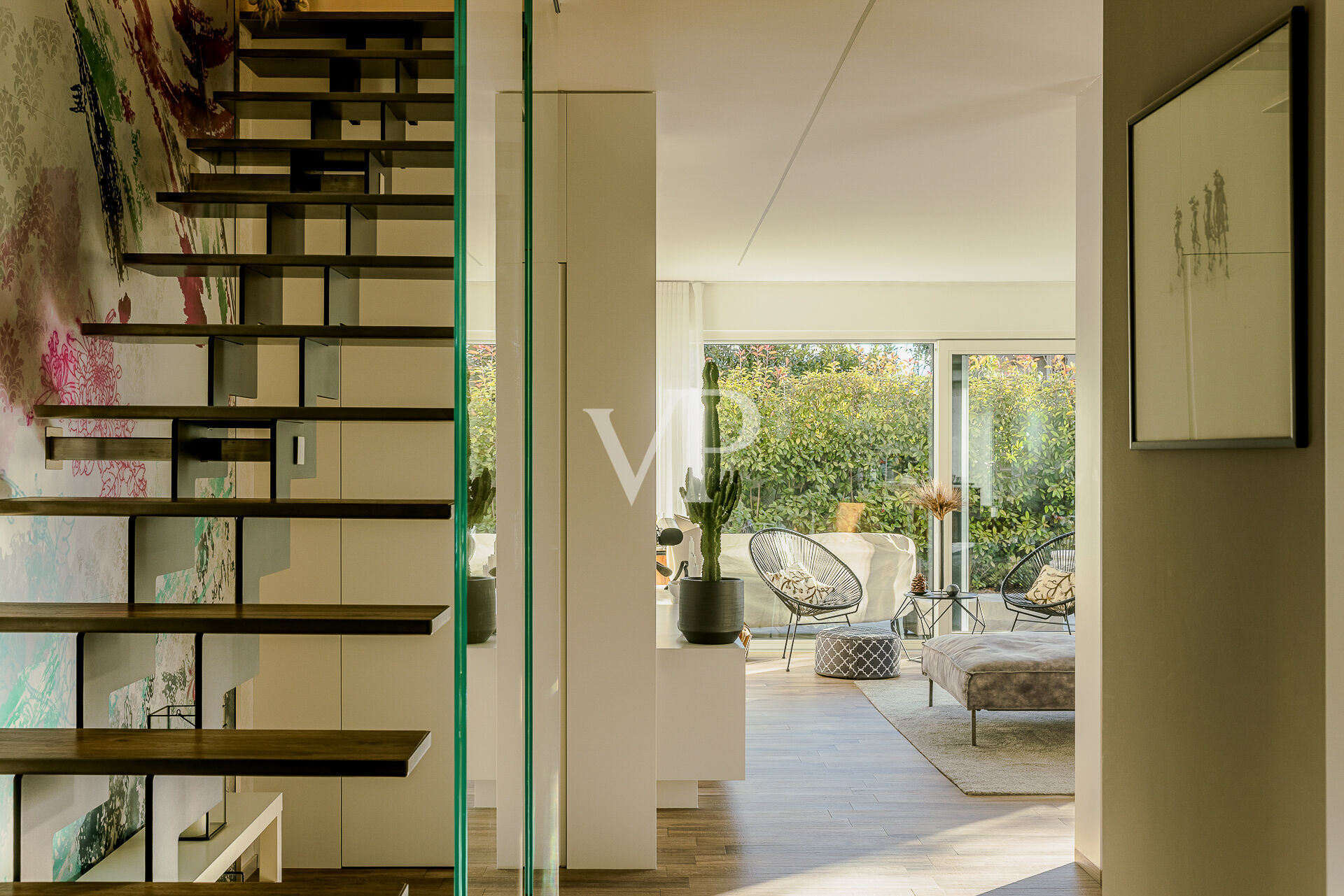 This prestigious and modern terraced villa, built to the highest CasaClima A standards, guarantees excellent energy efficiency and a high level of living comfort. The structure also ensures a considerable degree of privacy. The ground floor entrance leads directly to the LIVING living and dining area, overlooking the private garden. The large sliding windows and excellent exposure ensure excellent natural light throughout the day. The garden and terrace create a relaxing and welcoming environment, ideal for spending pleasant moments with family or friends. The floor is completed with a service bathroom and a storage room. On the second floor, reached by an internal staircase, there is the sleeping area consisting of: a master bedroom with balcony, a master room with en suite bathroom, an additional room (currently used as laundry room) and a master bathroom. The house is equipped with underfloor heating with independent temperature control in each room, ensuring a high feeling of well-being in all rooms. Also via an internal staircase there is access to the roof terrace with 360-degree panoramic views.Completing the offer: a double garage box, a single garage box with automated door and a cellar.The property, built in 2016, is distinguished by fine finishes and state-of-the-art technology.Automated exterior gate, Video intercom, Home automation system, Alarm system, automated irrigation, underfloor heating, heat pump, triple-glazed windows, automated garage lighting, etc.This elegant property is located in the locality of St. Maurice in Bolzano, a very quiet area surrounded by greenery, among fine villas and ancient trees. The historic center of Bolzano, is 5 km away. The strategic location and the proximity to the Mendel Pass, Lake Kaltern and the surrounding cable cars, offer at any time of the year, numerous possibilities for leisure time.