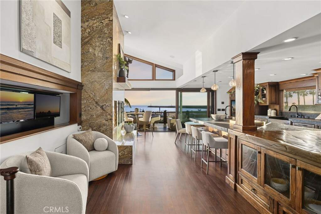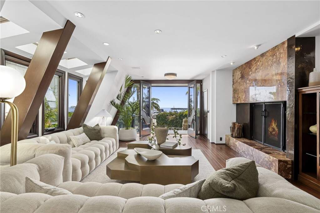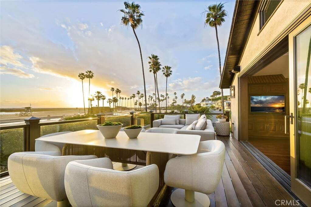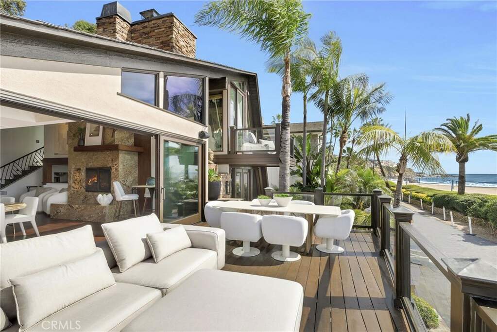 Set at the end of Breakers Drive, this extraordinary beachfront estate claims one of the most breathtaking vantage points along the coast, where endless ocean views, golden-hour sunsets, and the sound of the surf define daily life. Positioned just beyond the gates of one of the area's most coveted beachfront enclaves, the home offers a rare combination of privacy, direct beach access, and a front-row seat to the Pacific. Featuring four bedrooms plus bonus room, including a main-level en-suite, five bathrooms, and multiple ocean-facing decks designed to maximize both the scenery and the coastal lifestyle. Newly refinished wood floors and decks enhance the home's fresh, coastal feel, while expansive glass and intentional sightlines create seamless transitions between indoor and outdoor living. The ocean-view living room is a true retreat, centered by a wood-burning fireplace and appointed with custom cabinetry, a motorized lift housing dual televisions for versatile viewing, and reflective detailing that elevates both light and function. The kitchen blends warmth and character with professional-grade performance, showcasing Viking appliances, a farmhouse sink, a secondary utility sink, generous wood and honed stone surfaces for texture and refinement, and an alcove that artfully frames the eight-burner range, dual ovens, and pot filler. Distinctive designer lighting accentuates the craftsmanship throughout and extends into the adjoining dining room, where a temperature-controlled walk-in wine cellar and an illuminated onyx bar create a dramatic, gallery-like focal point. Both spaces capture ocean views, enhancing the experience of cooking, gathering, and entertaining. Throughout the residence, multiple strategically positioned television installations create an unparalleled sports and entertainment experience, while six wood-burning fireplaces infuse the home with warmth, character, and a level of ambiance rarely found in true beachfront properties. Glass doors open to pristine decks and lounges where the coastline becomes the backdrop to everyday living. The primary suite is a true sanctuary, defined by beamed ceilings, a secluded ocean-view deck, and an oversized walk-in closet with a central island illuminated by overhead skylights. The spa-like bath is equally impressive, offering a dramatic skylit walk-in shower, a dedicated makeup vanity, and an elegant dual-sink vanity. Experience refined coastal living in a rare end-of-street beachfront setting.