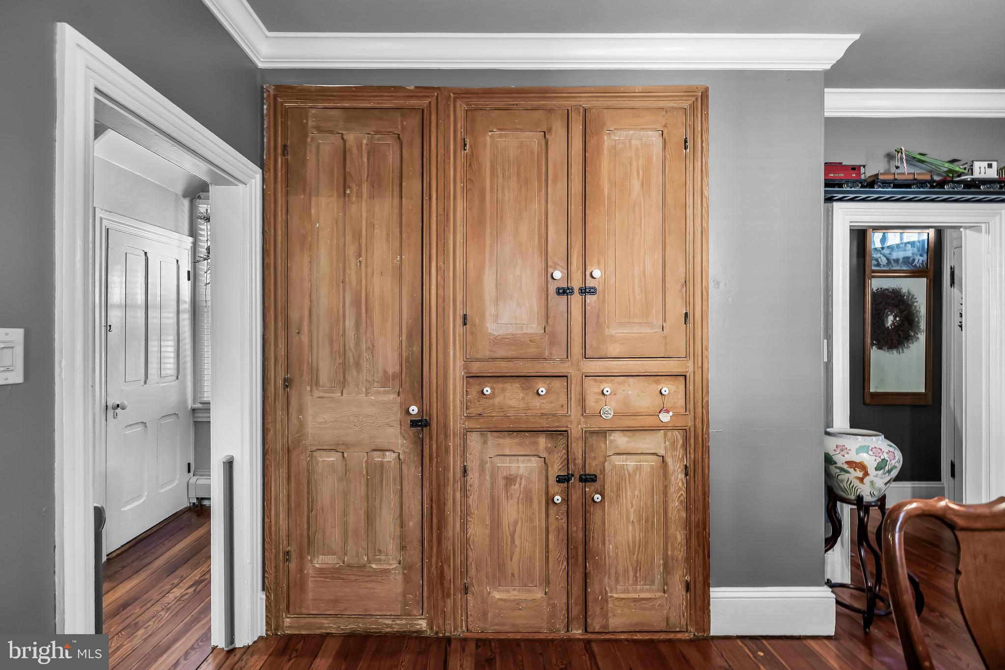 Historic Elegance Meets Modern Comfort - Westampton Colonial Built in 1875 This remarkable three-story colonial, built in 1875, offers the rare opportunity to own a piece of Westampton's history while enjoying the comfort and convenience of modern updates. From its inviting white picket fence and classic black shutters to its charming dormer windows and manicured landscaping, this home instantly captures your heart. Step inside and you're greeted by the warmth of original wide-plank hardwood floors that carry throughout much of the home. The living room is both elegant and inviting, anchored by a brick fireplace with a detailed mantel and flanked by custom built-ins perfect for displaying books, art, or collectibles. With abundant natural light and timeless craftsmanship, it's a space designed for both intimate evenings and lively gatherings. The formal dining room is ideal for entertaining, offering tall windows, crown molding, and space for holiday dinners or everyday meals. Rustic built-ins with a white-washed finish add both charm and functionality, providing the perfect backdrop for displaying china, glassware, or treasured keepsakes. At the heart of the home, the kitchen is a true showpiece. Designed with both form and function in mind, it features 42-inch maple cabinetry, granite countertops, stainless steel appliances, and a large center island with seating. A wine storage rack, stylish tile backsplash, and adjacent sitting nook make this the perfect place for both meal prep and conversation. The warm maple wood adds depth and elegance, blending seamlessly with the home's historic charm. Just off the main entry is a mudroom filled with charm and functionality. Thoughtful built-ins and a window seat not only provide an inviting nook but also offer ideal hidden storage,making this space as practical as it is beautiful. Adding both convenience and charm, the first floor includes a full bath with a walk-in shower and a one-of-a-kind vanity that blends modern function with distinctive style. This thoughtful feature makes the main level ideal for hosting guests or for multi-generational living. The primary suite is a serene retreat with gleaming hardwood floors and plenty of space to unwind. The ensuite bath is a showstopper, featuring a glass-enclosed shower lined with luxurious marble tile, accented by designer hexagon details and sleek fixtures - a spa-like experience every day. Also on this floor are two generously sized bedrooms, each filled with natural light and historic charm. These versatile rooms are ideal for family, guests, or a home office. The third floor adds even more flexibility, offering a bonus room ideal for a studio, playroom, or quiet hideaway. Bathrooms: Modern Updates with Style Bathrooms throughout the home have been thoughtfully renovated with quartz and marble- style vanities, gold-tone fixtures, elegant tile work, and modern lighting - a perfect balance of history and style. Outdoor Living: An Entertainer's Dream The outdoor spaces are just as impressive as the interiors. A detached two-car garage with dormer windows provides parking, storage, or potential workshop space, while a covered carport adds extra convenience. Thve backyard is designed for both relaxation and entertaining, with an expansive brick patio offering multiple seating and dining areas under the shade of mature trees. Landscaped gardens, stone accents, and lush greenery create a private oasis, while a play area and charming outbuildings add to the home's unique character. Whether hosting barbecues, enjoying morning coffee, or unwinding in the evening, this yard offers year- round enjoyment. Special Features - Built in 1875 with preserved architectural details - Original wide-plank hardwood floors - Brick fireplace with custom built-ins -Fully Insulated prior to installation of vinyl siding -Upgraded Electrical System