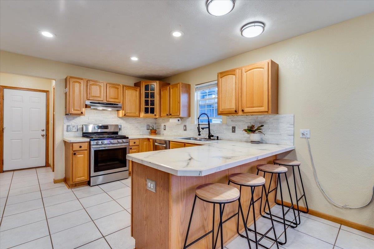 Welcome home to this five bedroom three full bathroom home in the Buhler School District! You will appreciate the updated and move in ready condition of this home in a welcoming northeast neighborhood of Hutchinson. This property has three main floor bedrooms, a primary bedroom with en suite and another full bathroom. Cozy living room with a gas fireplace and spacious kitchen and dining room combination with breakfast bar. Main floor laundry makes chores a little more convenient. The kitchen offers plenty of cabinets for storage along with a panty or closet area, coffee bar and gas stove. Expand your holiday gatherings or celebrations into the basement in the family room or host guests with two additional bedrooms and another full bathroom. Storage, saferoom and mechanicals all easily accessible too! The backyard has a privacy fence and deck. Come check it out and see for yourself.
