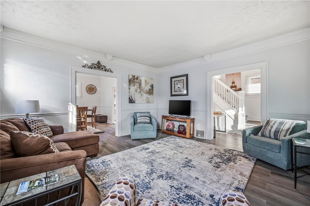 Welcome to 368 Stambaugh Avenue. This Brick and Vinyl home features large covered front porch and multilevel back deck. Beautiful Entry foyer. The home has 3 bedrooms and 1.5 baths. Large living room with Life Proof laminate flooring which extends throughout the complete first floor. Formal dining room with window seat and first floor Den with lots of windows. Large eat in kitchen with ample cabinets, appliances included but not warranted. 3 bedroom upstairs and full bath with some updates including new vanity and flooring. The basement features epoxy paint on the floor and newer half bath. The interior has been painted, some new fixtures. Hot water tank is newer.
