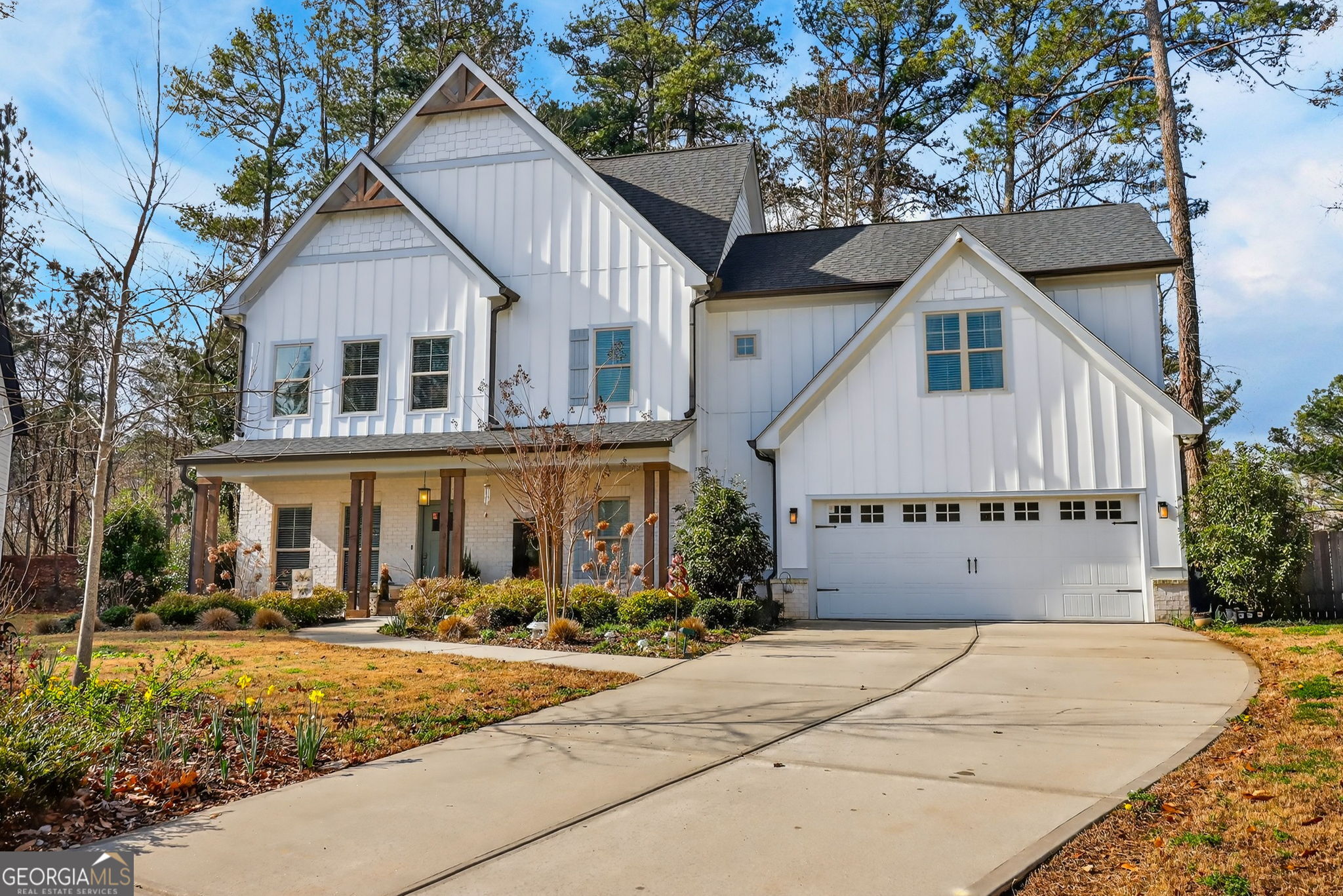 Nestled in the vibrant heart of the Hampton Preserve neighborhood, this stunning Craftsman Farmhouse radiates modern elegance, unbeatable comfort, and effortless convenience. Every detail of this meticulously crafted residence exudes style, from the inviting curb appeal to the thoughtfully designed interior spaces that promise a lifestyle of luxury and ease. Whether you're entertaining guests, relaxing in your private retreat, or enjoying the seamless indoor-outdoor flow, this home is a true masterpiece! The front entry of this charming property is an expansive brick with wood pillars front porch, the perfect spot to sip morning coffee or unwind with a glass of wine at the end of the evening. Step inside to discover an open-concept living area that immediately captures attention with high ceilings and an abundance of natural light. The rich hardwood floors add warmth and sophistication, creating an inviting atmosphere that effortlessly blends comfort with classic style. At the center of this home is a dream kitchen, designed to impress and inspire. Featuring sleek white cabinetry paired with modern hardware, this culinary haven boasts gorgeous quartz countertops and a colossal island that doubles as a breakfast bar-ideal for casual mornings or lively gatherings. All stainless steel appliances, the amazing tiled backsplash and stylish pendant lighting elevate the room's aesthetic. Whether you're preparing everyday meals or hosting dinner parties, this kitchen offers the perfect backdrop for culinary creativity. This home's main level has a spacious mudroom provides a seamless transition to the spacious oversized two-car garage-ideal for keeping essentials organized and your home tidy. Outdoors, the main level opens onto a lovely patio overlooking a fully fenced backyard-an inviting space for outdoor entertaining, gardening, or sunbathing in privacy and serenity. Venture upstairs to discover a luxurious owner's suite with a fireplace that feels like a private sanctuary. The master-suite bathroom exudes spa-like elegance, boasting a spacious glass-enclosed shower, freestanding soaking tub, double vanity with quartz countertops, and classic hardware. Complemented by a large, well-appointed walk-in closet, this bathroom provides the perfect finishing touch to your daily routine. Three additional upstairs bedrooms share a thoughtfully designed bathroom, offering enough room for guest or large family. A well-appointed laundry room completes this level, adding to the home's practicality and ease of living. Enjoy the nearby amenities, including walking trails and parks minutes away, alongside convenient shopping. Every square inch of this residence showcases precision craftsmanship and attention to detail, ensuring enduring quality. Beyond its stunning interiors, this home offers an unbeatable location near the South-West Beltline, Downtown Atlanta, and Hartsfield Jackson Airport.