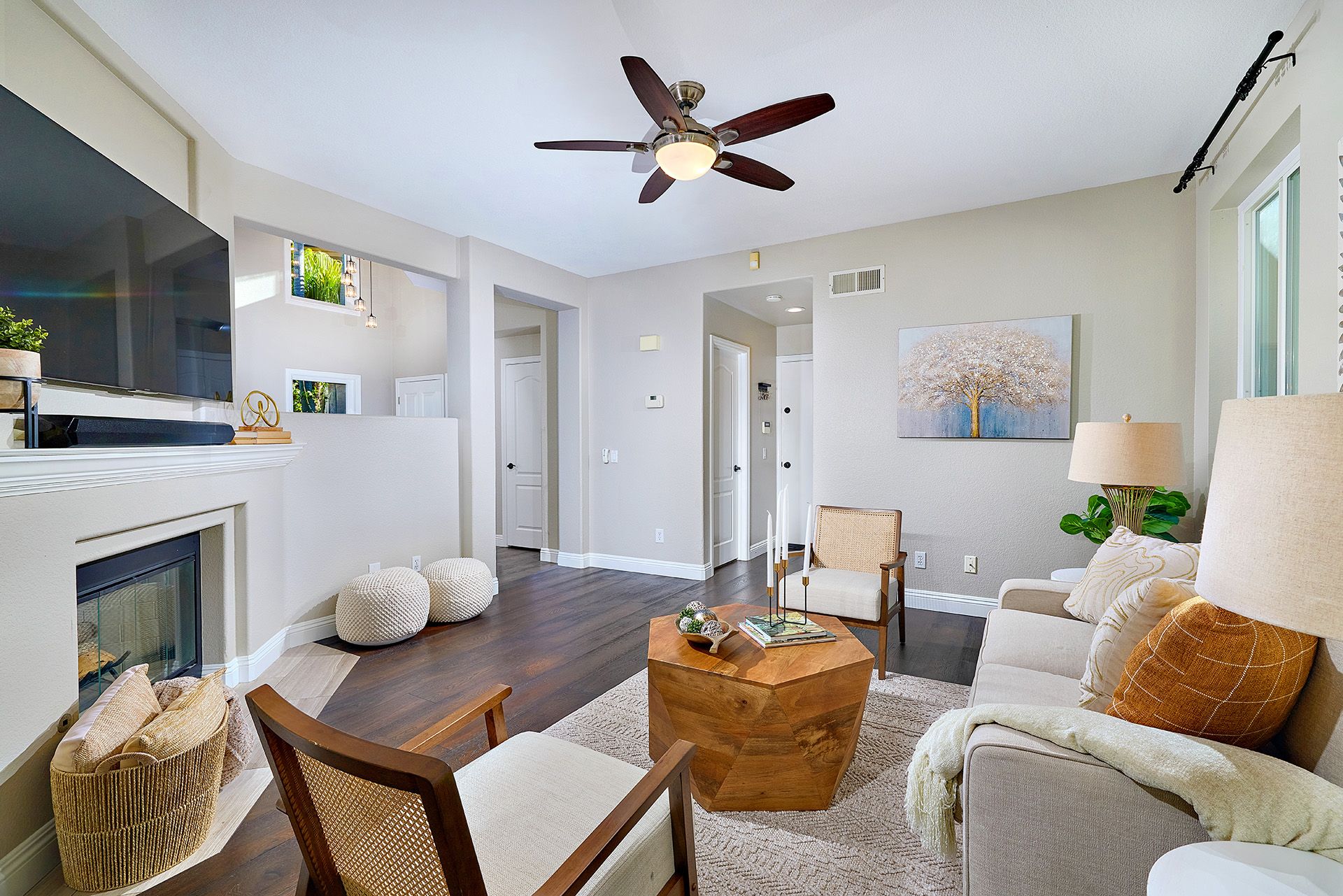 Welcome home to Del Lago on the Greens, a gated community with 24/7 video monitoring located in South West Escondido. This 4-bedroom home has numerous features that will make you fall in love: Lots of windows providing natural light throughout the house, a private backyard with a built-in BBQ, natural flagstone, a large playset, and a retractable movie screen for evening entertainment, fresh interior paint, a remodeled kitchen with quartz countertops, new cabinets with soft close hinges, and Cafe appliances. All bathrooms have been remodeled with Quartz and new faucets, mirrors, and vanity lighting and the new cabinets also update the laundry room and linen cabinetry. Flooring is engineered wood, and the staircase has been updated with iron balusters. All windows and patio doors have been replaced in the last 5 years, as has the water heater (2024). The 3-car garage features extensive storage cabinets.