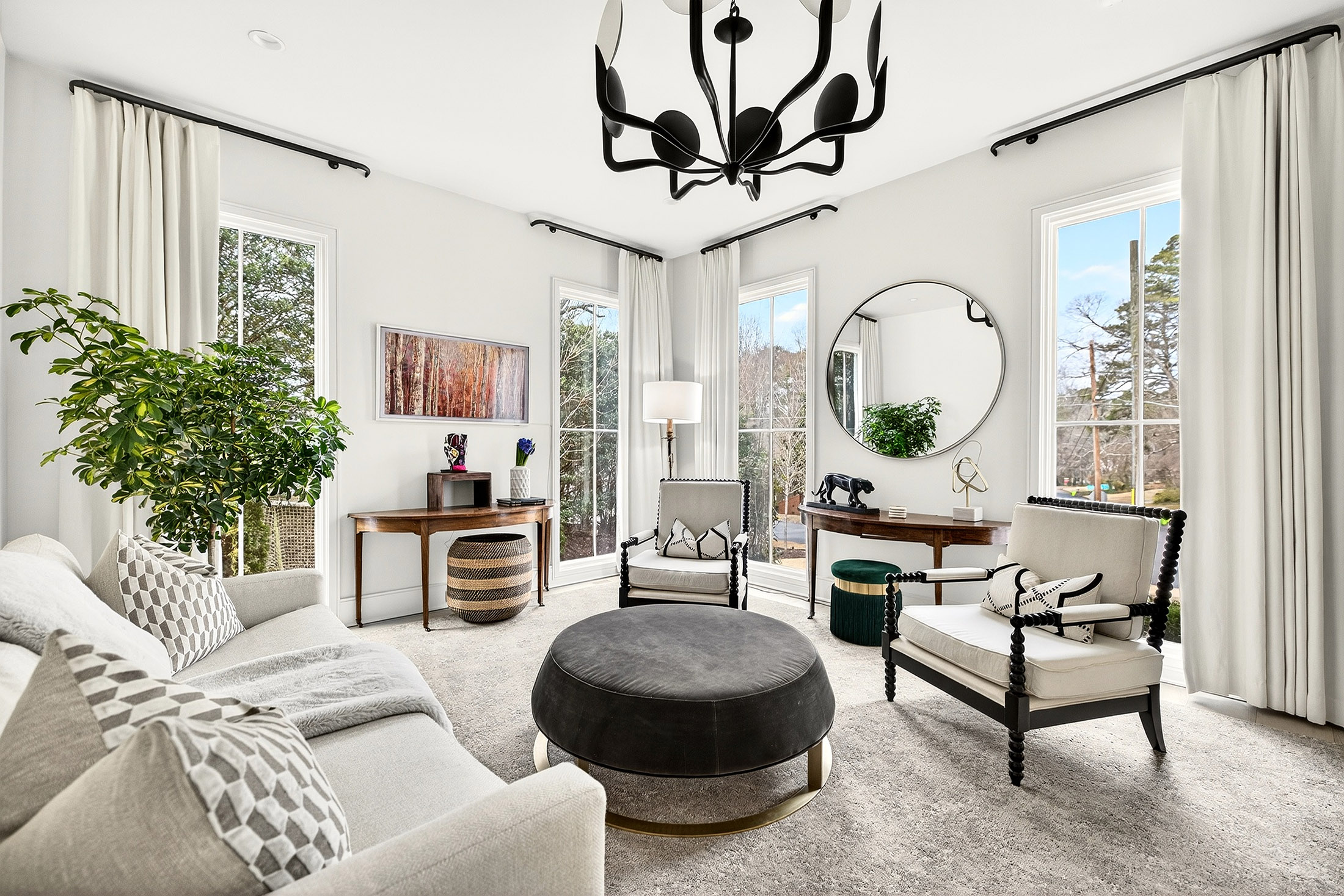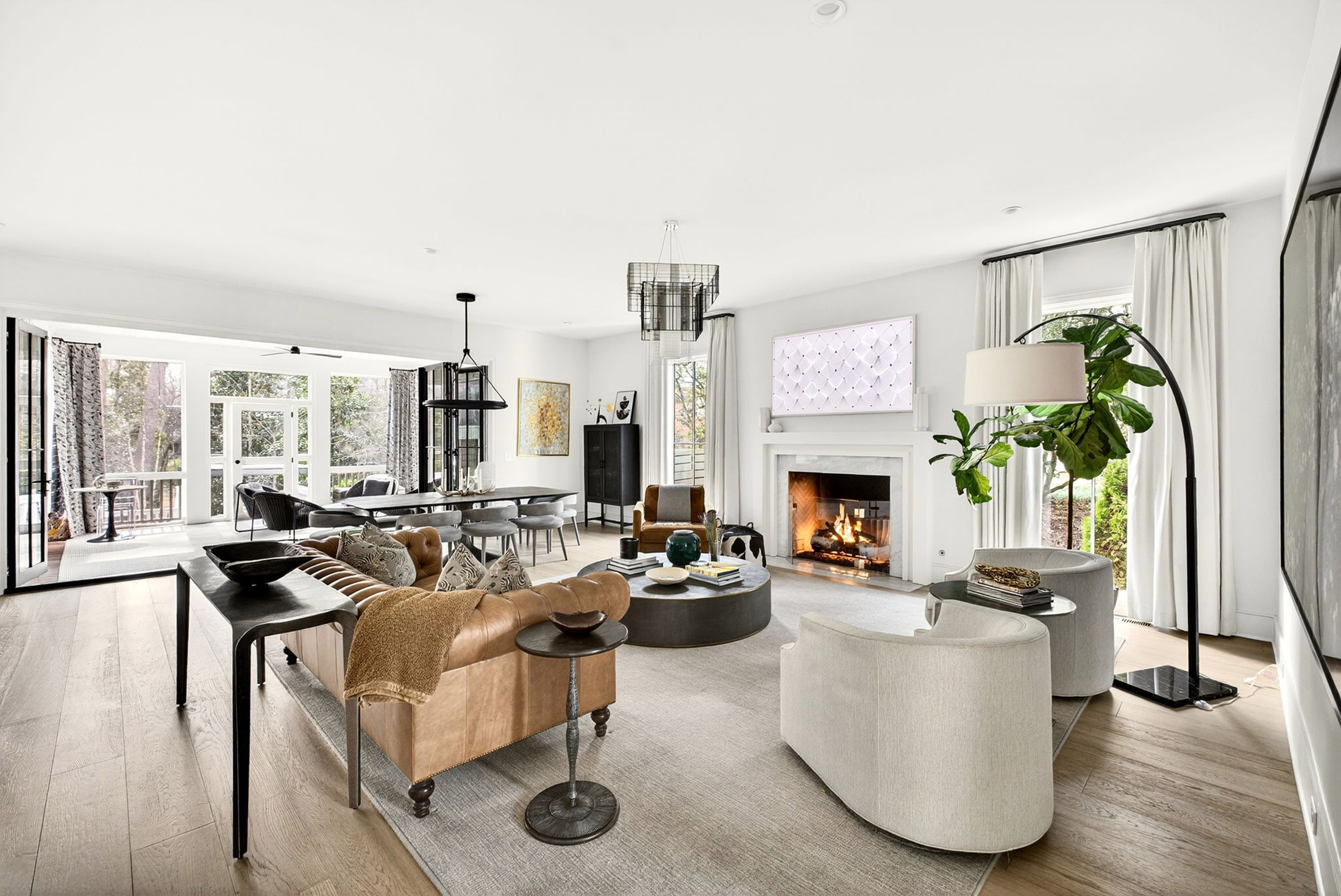 Welcome to 715 Amberidge Trail, a beautifully designed six bedroom, six and one half bathroom home tucked within one of the most desirable pockets of Sandy Springs. Built in 2021, the home was designed by renowned architect Linda MacArthur and constructed by EverCraft Custom Builders, showcasing exceptional craftsmanship and thoughtful attention to detail throughout. The main level features light-filled living spaces, soaring ceilings, and wide-plank white oak floors, with a layout designed for both everyday living and entertaining. The chef’s kitchen anchors the home with custom cabinetry by Bell Kitchen and Designs, Sub-Zero and Wolf appliances, and an oversized island that opens seamlessly to the main living areas. One of the home’s most striking features is the exceptional indoor-outdoor connection, highlighted by a dramatic 15-foot accordion glass door that opens to beautifully designed outdoor living spaces. The owner’s suite on the main level offers a private retreat, complete with a spa-inspired bath featuring a soaking tub, frameless shower, expansive double vanities, and dual custom walk-in closets. Two half baths, a mudroom, and a laundry area complete the main level. Upstairs are four bedrooms and three full bathrooms, along with an additional flexible living space that can be used as a playroom or workspace. A second laundry room is also located on this level for added convenience. The newly finished terrace level provides an impressive extension of the home’s living and entertaining space. Designed for both relaxation and recreation, it includes a bedroom or office, one full bath and one half bath, private gym with sauna and cold plunge, a full kitchen, and an entertaining lounge with a built-in television, fireplace, and golf simulator. The backyard was thoughtfully designed for entertaining and everyday enjoyment, featuring a heated saltwater PebbleTec pool with Hartstone coping, fully turfed yard, gazebo, custom grilling station, landscape lighting, and a private putting green. Rich Ipe outdoor flooring and a striking 42-inch gas fireplace further elevate the outdoor living experience. Ideally located in the highly sought-after Heards Ferry Elementary district and just minutes from Atlanta Country Club, Mount Vernon, and many of the area’s top public and private schools, this exceptional property offers the perfect balance of privacy, convenience, and elevated living in the heart of Sandy Springs.