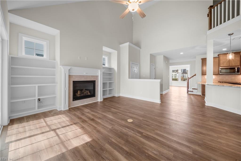 Move-in ready end-unit Nansemond floorplan with first-floor primary suite and 2-car garage in The Retreat at Western Branch, a 55+ community. Priced to sell. Open-concept kitchen with bar seating overlooking the living area with built-in shelves flanking the gas fireplace. Roomy walk-in pantry to keep everything organized and within reach. Enjoy outdoor living on the covered rear porch with extended patio. Upstairs features two additional bedrooms, a loft, guest bath, and walk-in attic. End-unit location provides additional natural light and a spacious feel. Community amenities include a clubhouse, fitness center, billiards room, outdoor kitchen, dog park, and community garden. Only 15 homes remain, schedule your tour today.