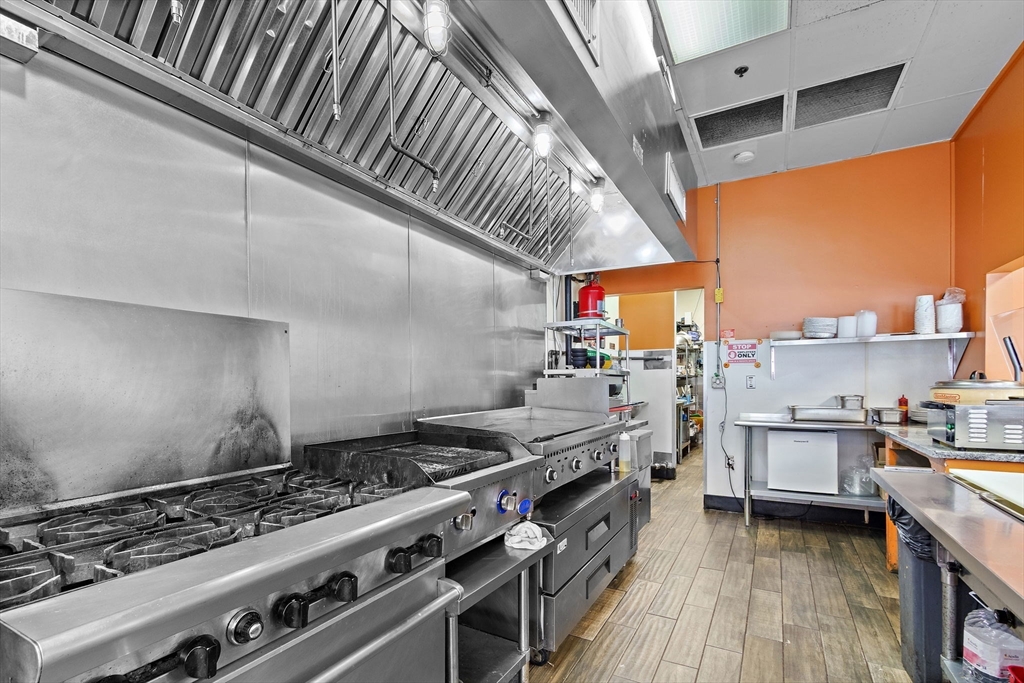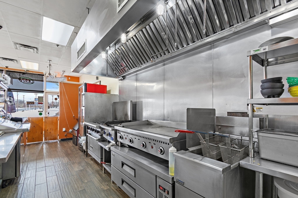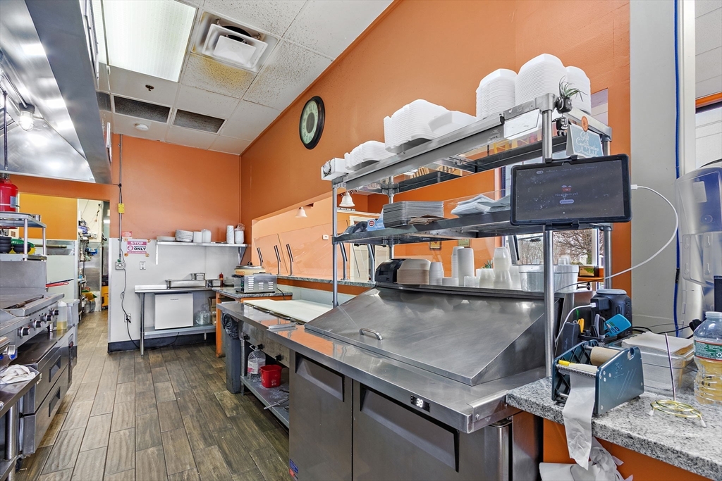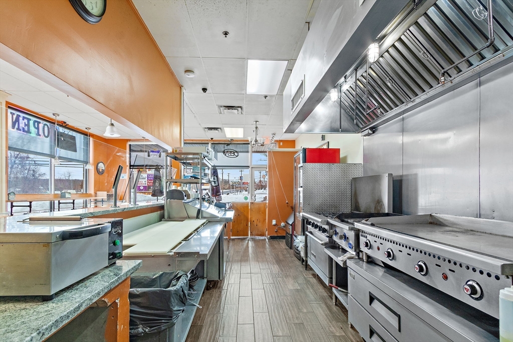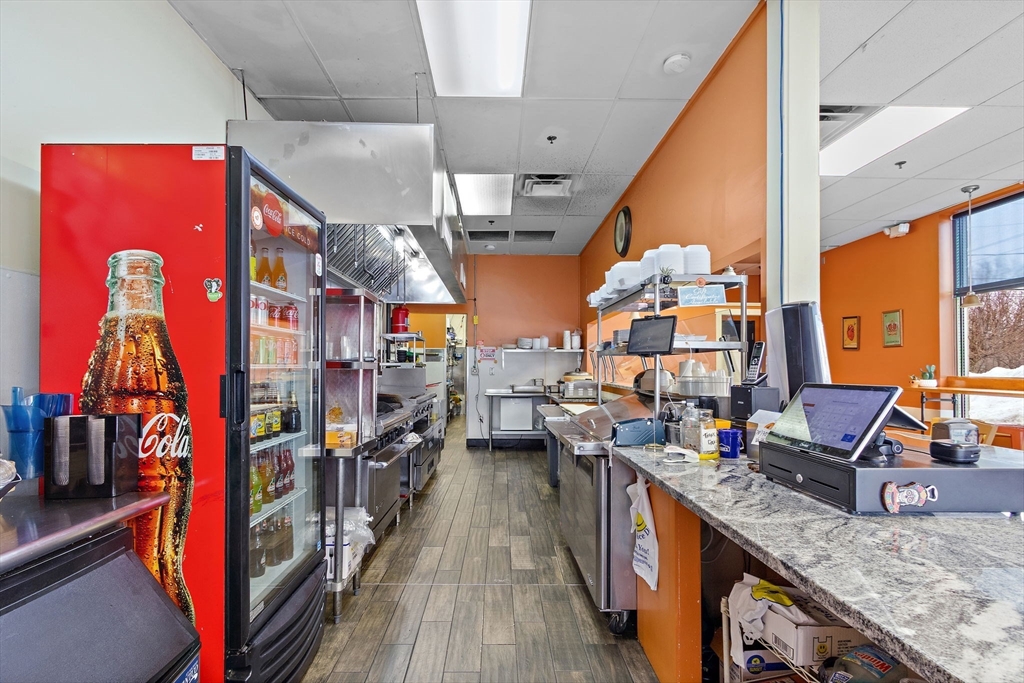 1,250 SF Restaurant Space - Busy Route 16 PlazaRestaurant space available in a busy plaza on Route 16 in Milford with strong daily traffic counts and excellent visibility. The 1,250 SF space features a bright dining area with large front facing windows, seating area, service counter, and a fully equipped commercial kitchen.The kitchen includes a commercial hood system, cooking line, prep areas, refrigeration, dishwashing station, and dedicated storage areas. The layout supports efficient food service operations and is suitable for dine in, takeout, or fast casual concepts.The unit includes modern finishes, excellent natural light, convenient parking for customers and staff, and access to ADA accessible restrooms. Located in a well established plaza with steady traffic and easy access to major routes. NNN lease (triple net).
