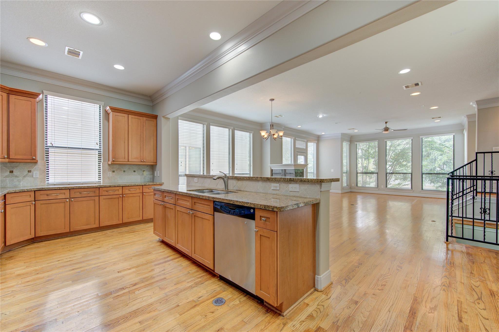 Amazing Townhome in a terrific location!! LARGE open living, dining and kitchen feature hardwood floors - great for entertaining. Kitchen includes large pantry, breakfast bar, tons of cabinets and plenty of countertop space. The spacious primary bedroom includes 2 large walk in closets featuring built in dressers, linen closet, jetted tub, double vanity and high ceilings. The laundry is conveniently located next to the primary suite on the 3rd floor. This corner unit home boasts large windows for plenty of natural light! Easy access to I-10, 610, I 45. Minutes from Memorial Park, Washington Avenue, Heights, the Galleria and downtown-Schedule your tour TODAY!