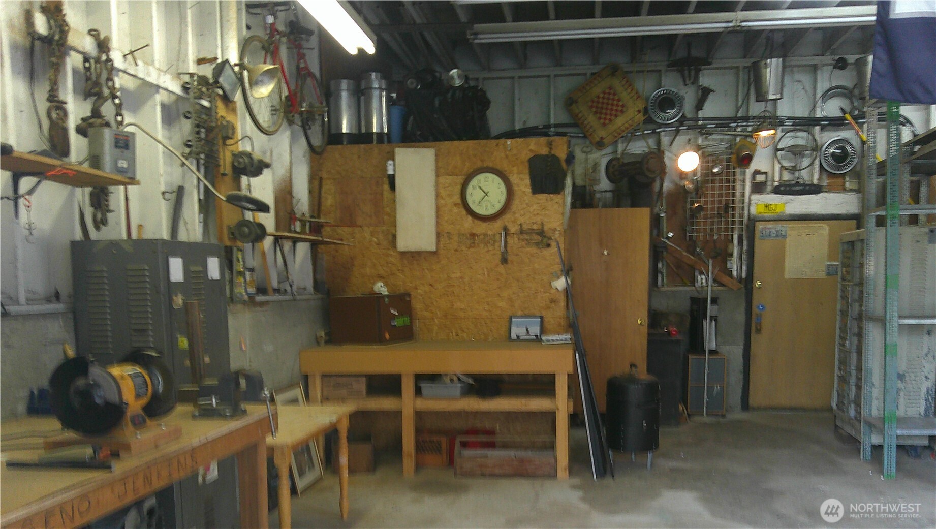 Very nice bungalow rambler. New paint, newer heating and all appliances included. 2 bedrooms and bath all updated. Completely fenced yard with secured out building, dog run and 3-4 vehicle parking. 930 square foot, first class shop; terrific auto mechanic or trades work. 3/4 bath in shop. Overhead steel beam , workbench and much storage. 16' + ceilings and oversized steel shop door. Covered patio between house and shop. Separate laundry room off patio. Alley access for shop with parking.