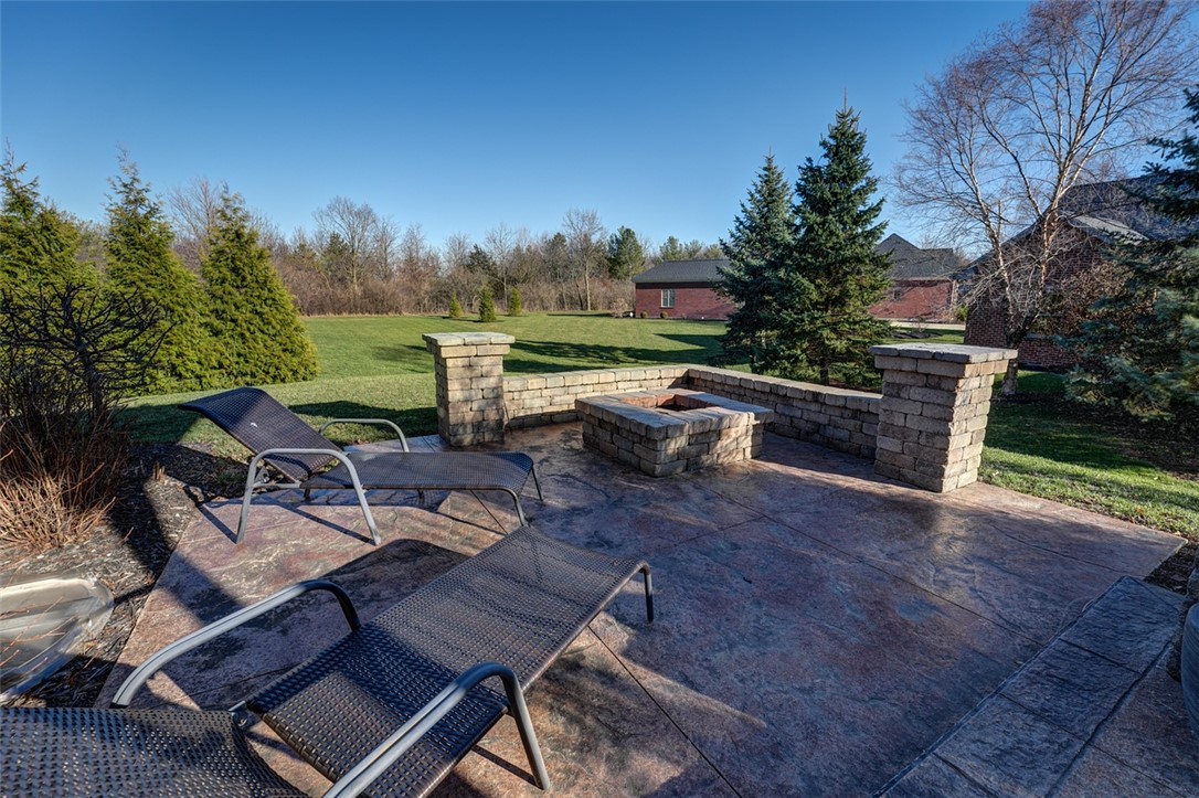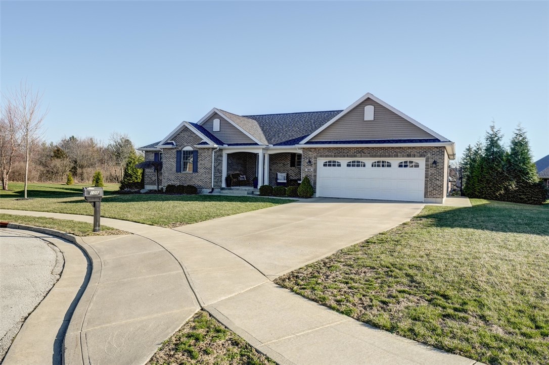 Welcome to your private retreat home. Located conveniently to school and shopping. This beautiful, custom designed, full brick home provides a total of 3136 square feet with 4 bedrooms, 3 full baths, a 2.5 car garage and finished basement. Enjoy the very private outside patio areas featuring custom decorative concrete, Pergola and firepit. A peaceful place to watch the deer and birds. New school is nearby. Discover an unparalleled opportunity to craft your dream residence on a generous 0.32-acre parcel nestled in a tranquil cul-de-sac. This expansive lot offers ample space for both luxurious living and outdoor enjoyment. Envision a serene lifestyle in a community that promises both peace and convenience, allowing for a harmonious balance between privacy and accessibility. The potential for a beautifully landscaped yard, an outdoor entertaining area, or even a personal garden oasis awaits, offering endless possibilities for creating your ideal domestic sanctuary. This unique offering represents a prime chance to invest in a location where you can truly build the life you've always envisioned. Entertain family and friends in the Open Design Great Room, Dining Area and Gourmet Kitchen with Island, quartz countertops and custom design cabinets and range hood. Plus, there is a spacious and convenient Pantry. Primary Bedroom features and a spacious walk-in closet, bathroom with walk-in shower and twin bowl vanity. A large linen closet is located in the central hallway. The finished basement includes a Rec Room, Bedroom with egress window, bonus room and unfinished storage area. There is a sump pump with battery backup. At the garage entry is the Mud Room and full sized Laundry Room with deep sink and storage cabinets. The home provides comfort with hi-efficiency natural gas heat and central air conditioning, Pella windows and insulated garage door. There is no HOA. ENJOY THIS BEAUTIFUL, CUSTOM BUILT, CONVENIENT AND PRIVATE RETREAT!!!