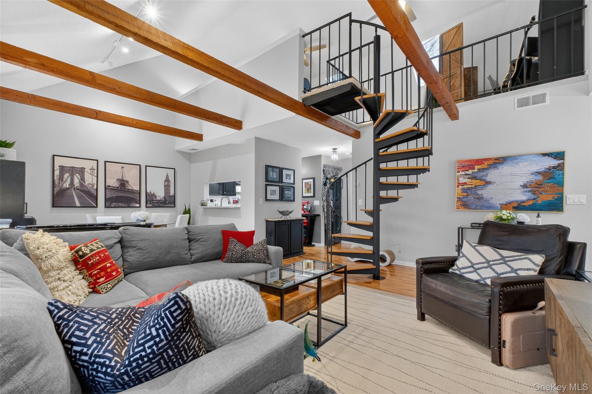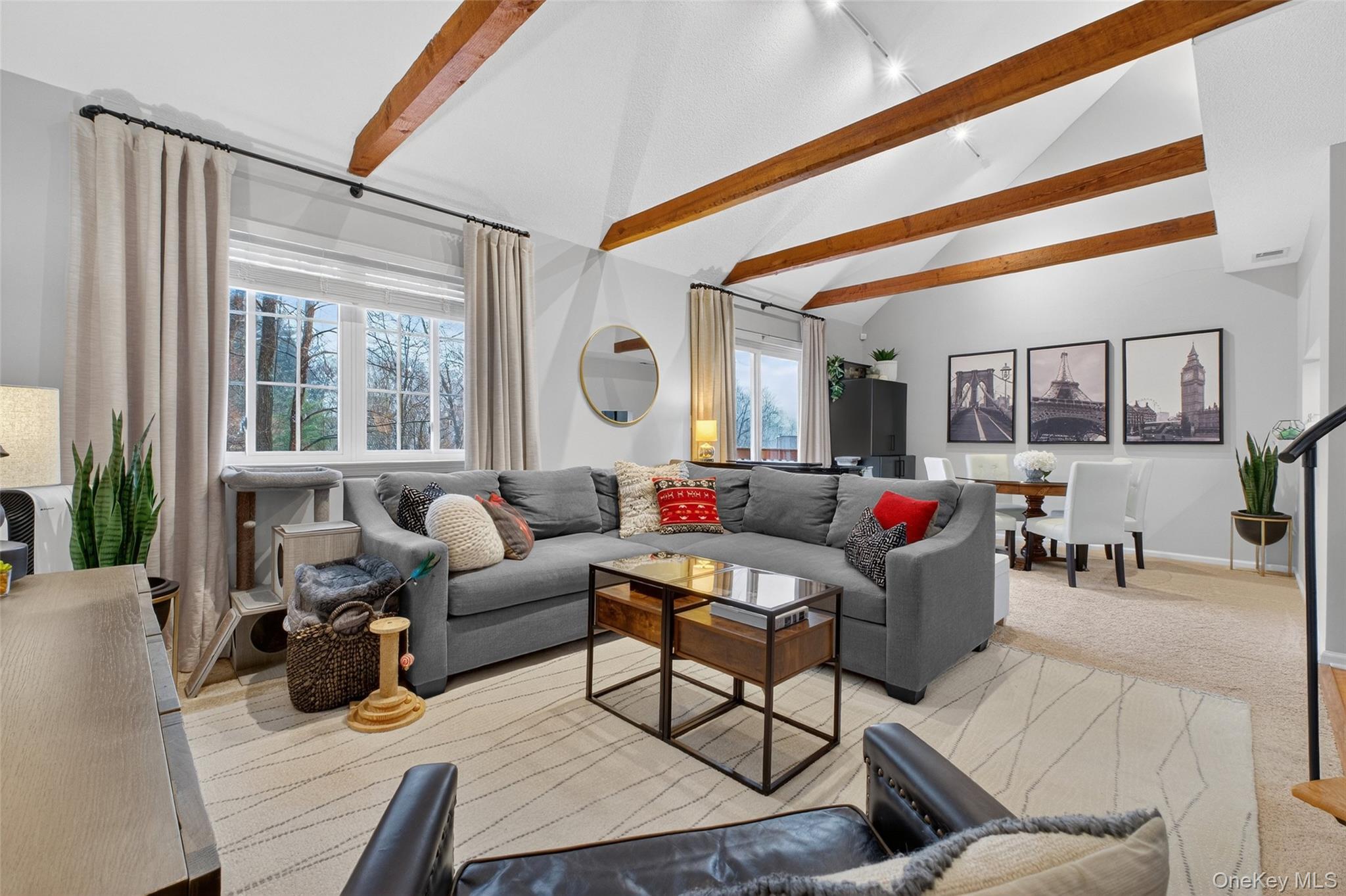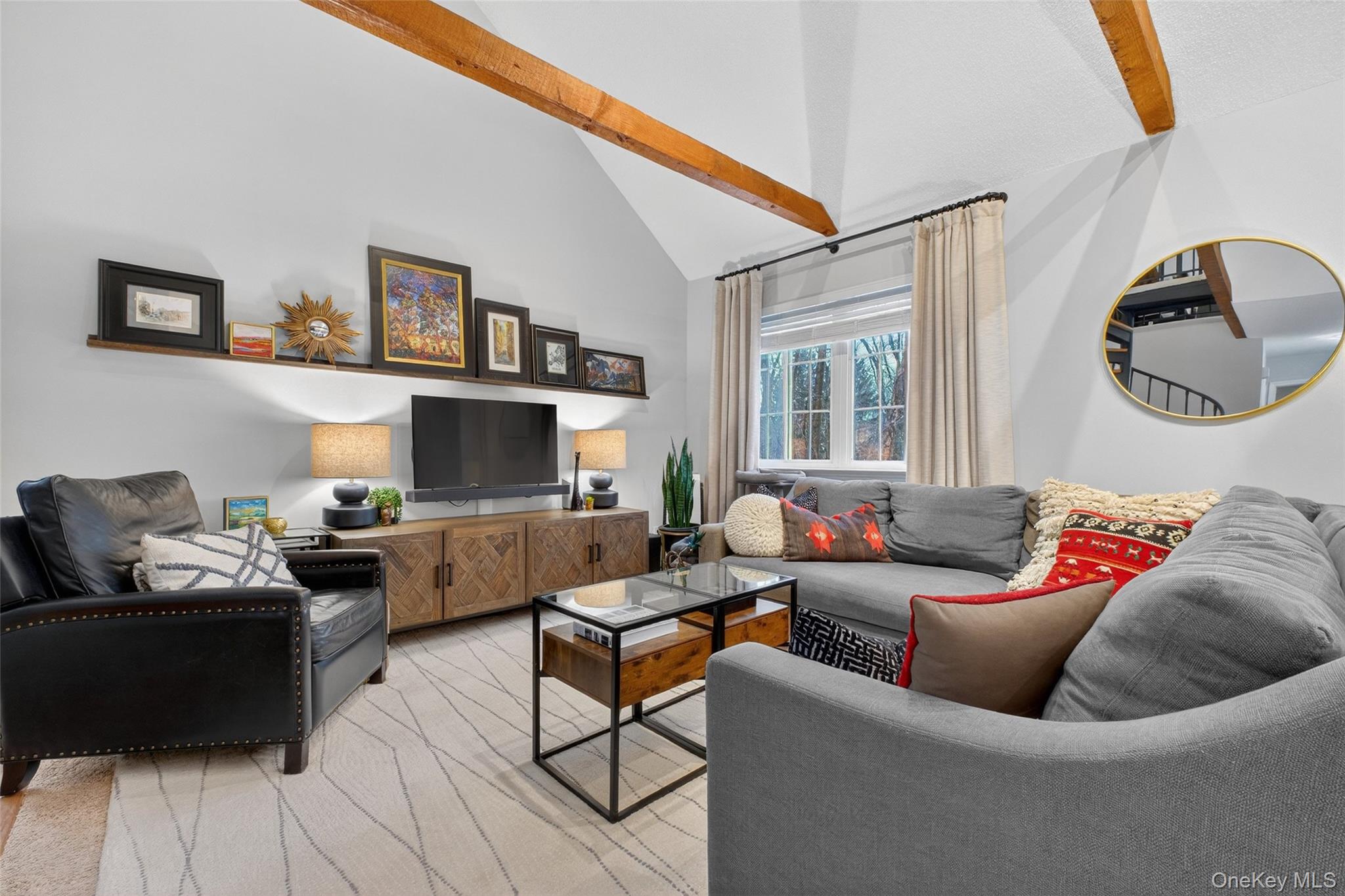 Welcome to this beautifully updated, move in ready home in Reed Farm. The open concept presents high ceilings and wood beams with light filled rooms. A large loft offers a possible 2nd bedroom, office or playroom. Pride of ownership shines in the endless list of updates, including the kitchen with stainless steel appliances, bathroom, lighting, skylights, large hot water heater, spray foam insulation, painting and whole house water filter. The huge unfinished basement allows for endless storage. Relax on the nice sized deck with a view of the woods. Privately nestled in the woods, yet conveniently located, just minutes from shopping, major highways and restaurants. Enjoy all the amenities of Reed Farm, including the pool, tennis courts, basketball courts, and clubhouse.