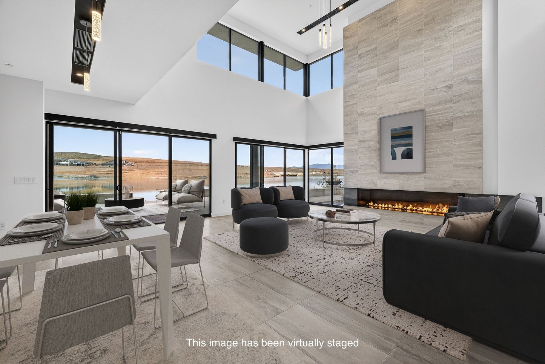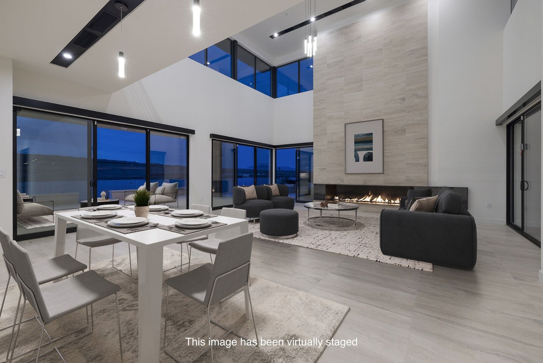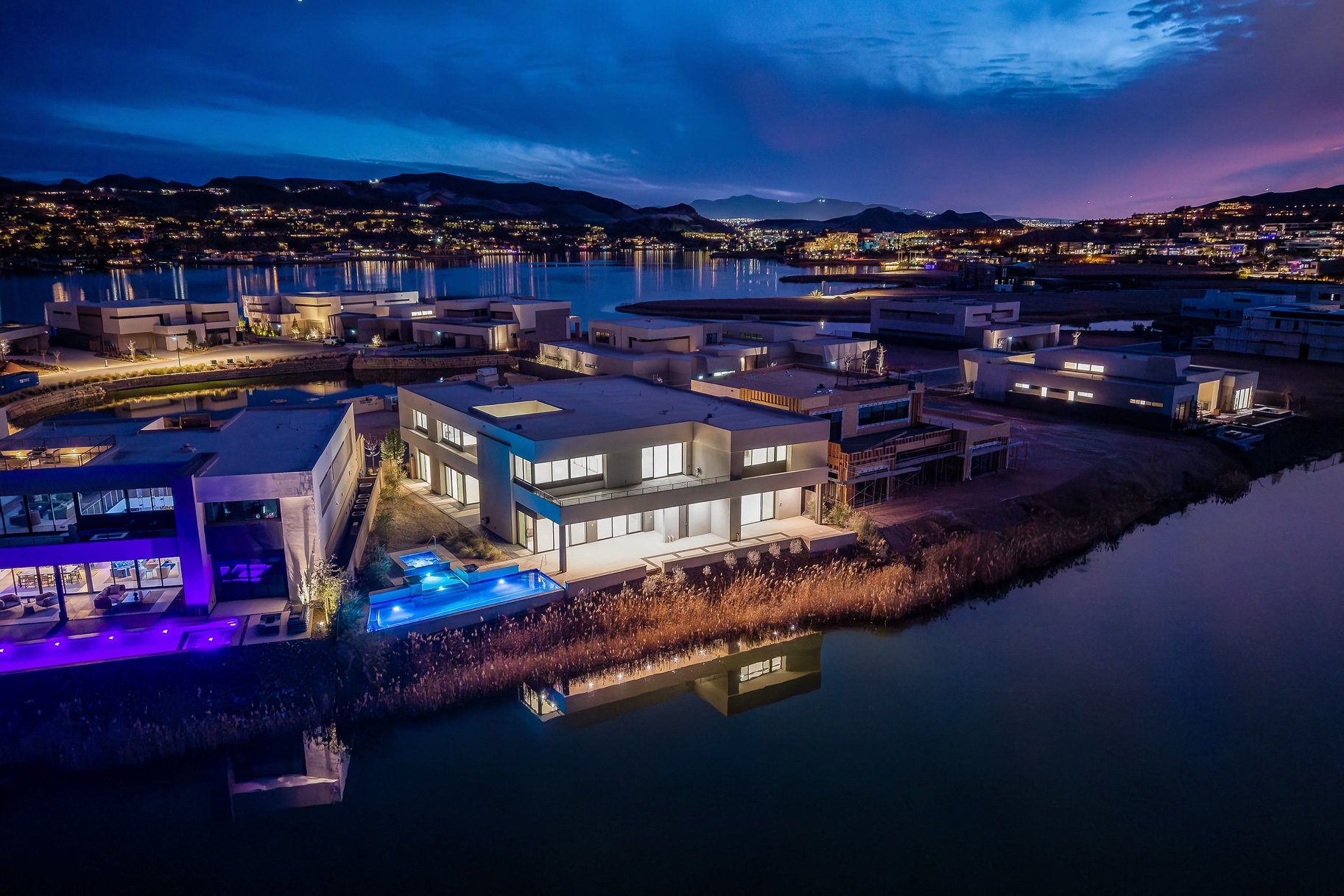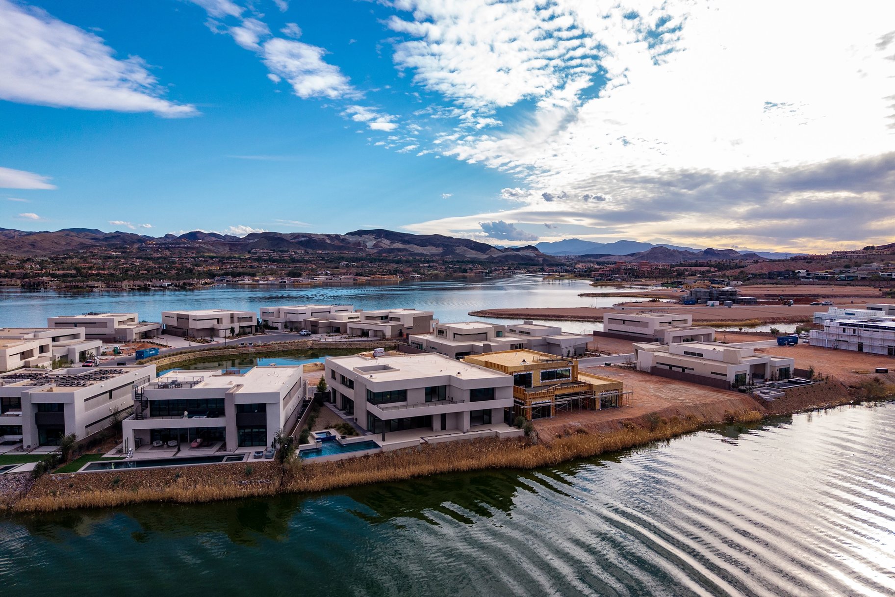 Experience refined waterfront living on The Island at Lake Las Vegas, a new guard-gated waterfront community by Raintree Development. This modern two-story residence is uniquely positioned on of the largest waterfront lots in the neighborhood with an expanded side yard, offering enhanced privacy and additional space for outdoor entertaining. The backyard enjoys direct lake frontage and mountain views and showcases a grand pool and spa with elegant water bowl features, creating a striking resort-style setting. The home also includes approval for a private dock, providing effortless access to boating and water sports. The Vegas Modern upgrade package and custom closets by Classy Closets blend clean architectural design with everyday functionality. Residents enjoy 320 acres of water recreation, Reflection Bay Golf Club, scenic walking and running trails, and The Village’s charming lakeside dining, shopping, & entertainment. Sports Club membership valued at $25,000 included with purchase.