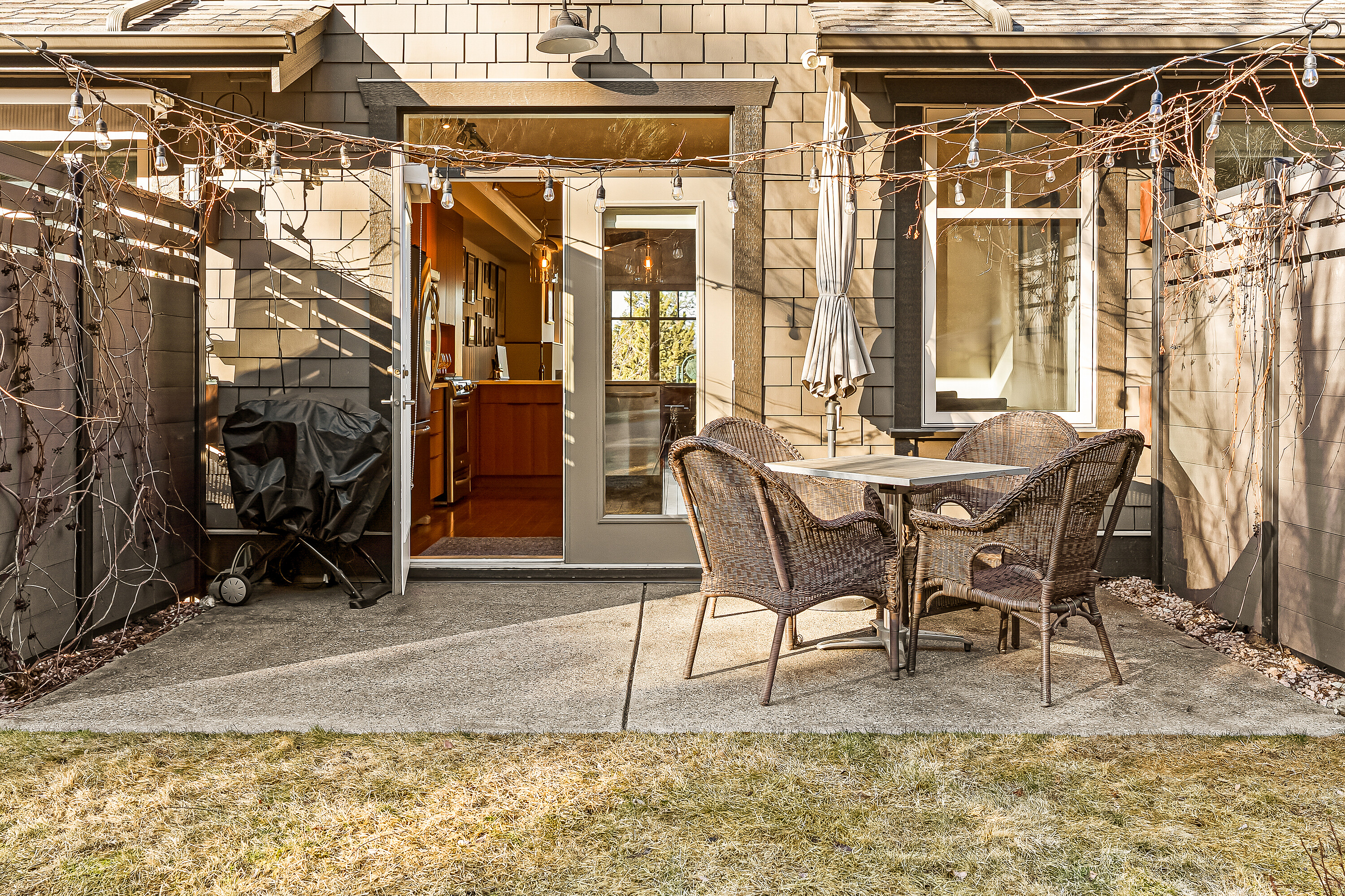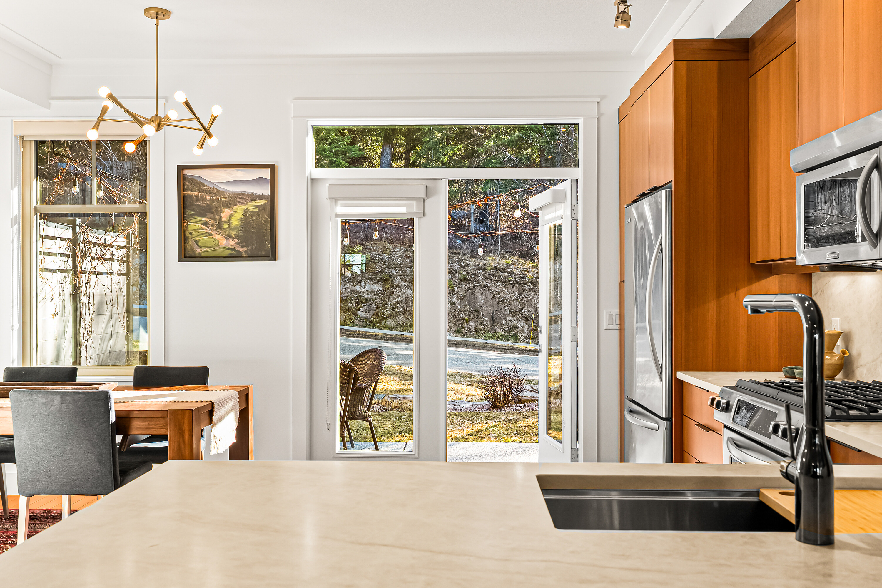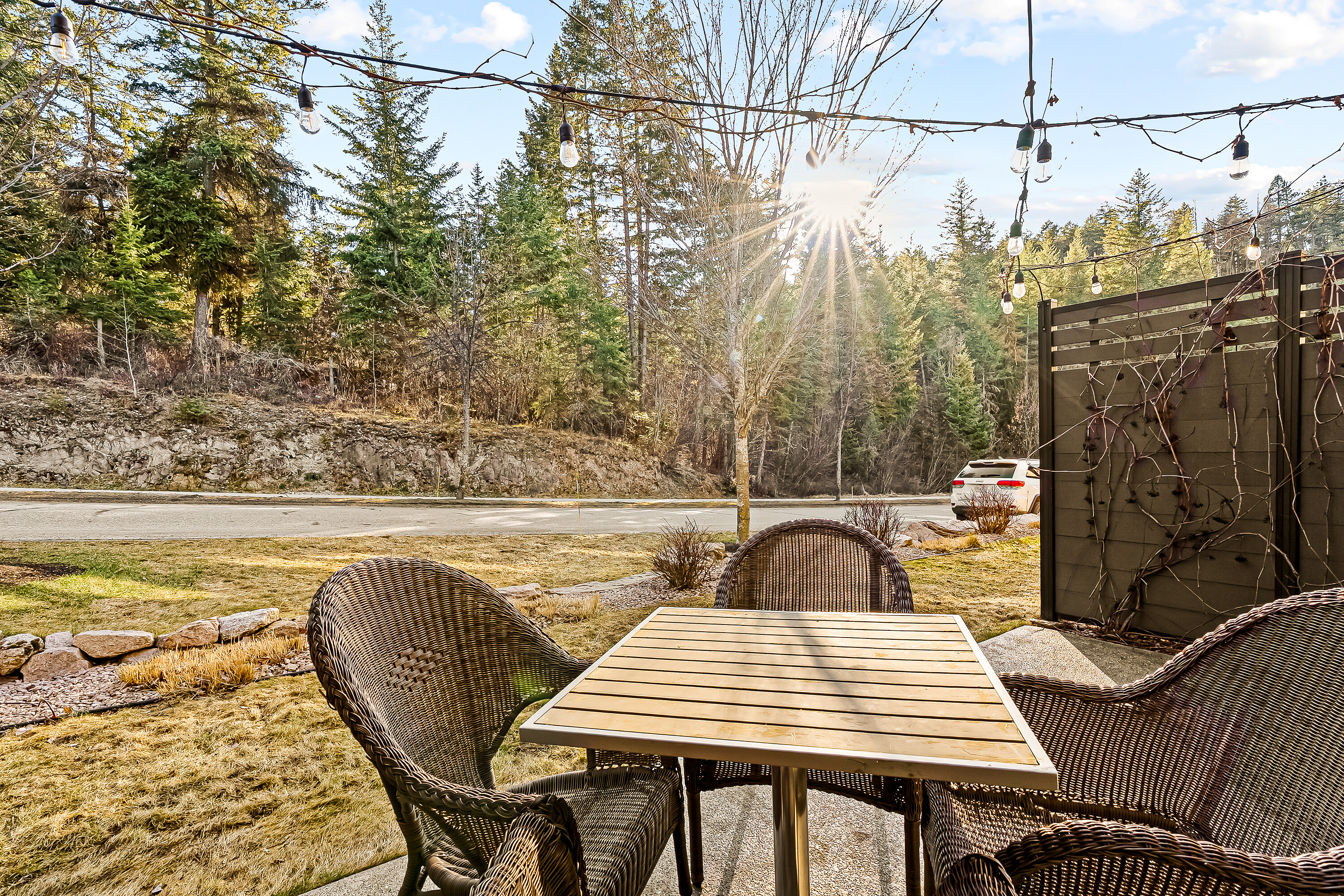 Modern Mid-Century Soul Retreat, minutes from adventure in Predator Ridge. Elevate your lifestyle in this architecturally crafted three storey townhome, designed for those who value both aesthetic precision and effortless living. The open-concept main floor features custom teak millwork and honed quartz surfaces, the ultimate backdrop for hosting. The main floor is a bright, airy sanctuary where a spacious kitchen and dining area flow through French doors to a south-facing aggregate patio, perfect for al-fresco evenings under patio lights with nature just steps away. Relax in the living room, anchored by a new modern gas fireplace surround and a stylish shiplap feature wall. Upstairs, the generous primary suite offers peek-a-boo tree-top views and a spa-like ensuite with teak cabinetry and quartz finishes. A second bedroom with an updated ensuite and a discreetly hidden laundry area complete this level. After a day of remote work or commuting, hit the nearby trail network for a mountain bike session. With a tandem double garage for all your gear and a strong strata council handling the heavy lifting, you’re free to enjoy resort-style perks including a selection of restaurants, a fitness centre, racquet club and two golf courses. Work-life balance, high-end aesthetics for entertaining. This home offers a seamless transition as a complete "turnkey" property. It comes fully furnished, allowing you to settle in immediately. Predator Ridge is exempt from the B.C. Speculation and Vacancy Tax.