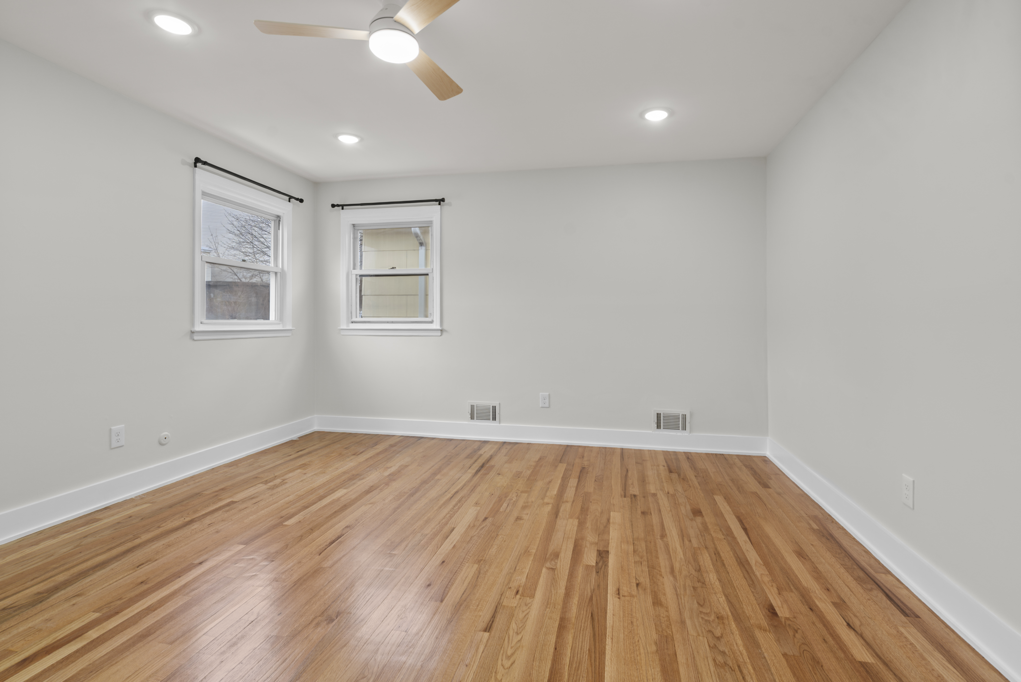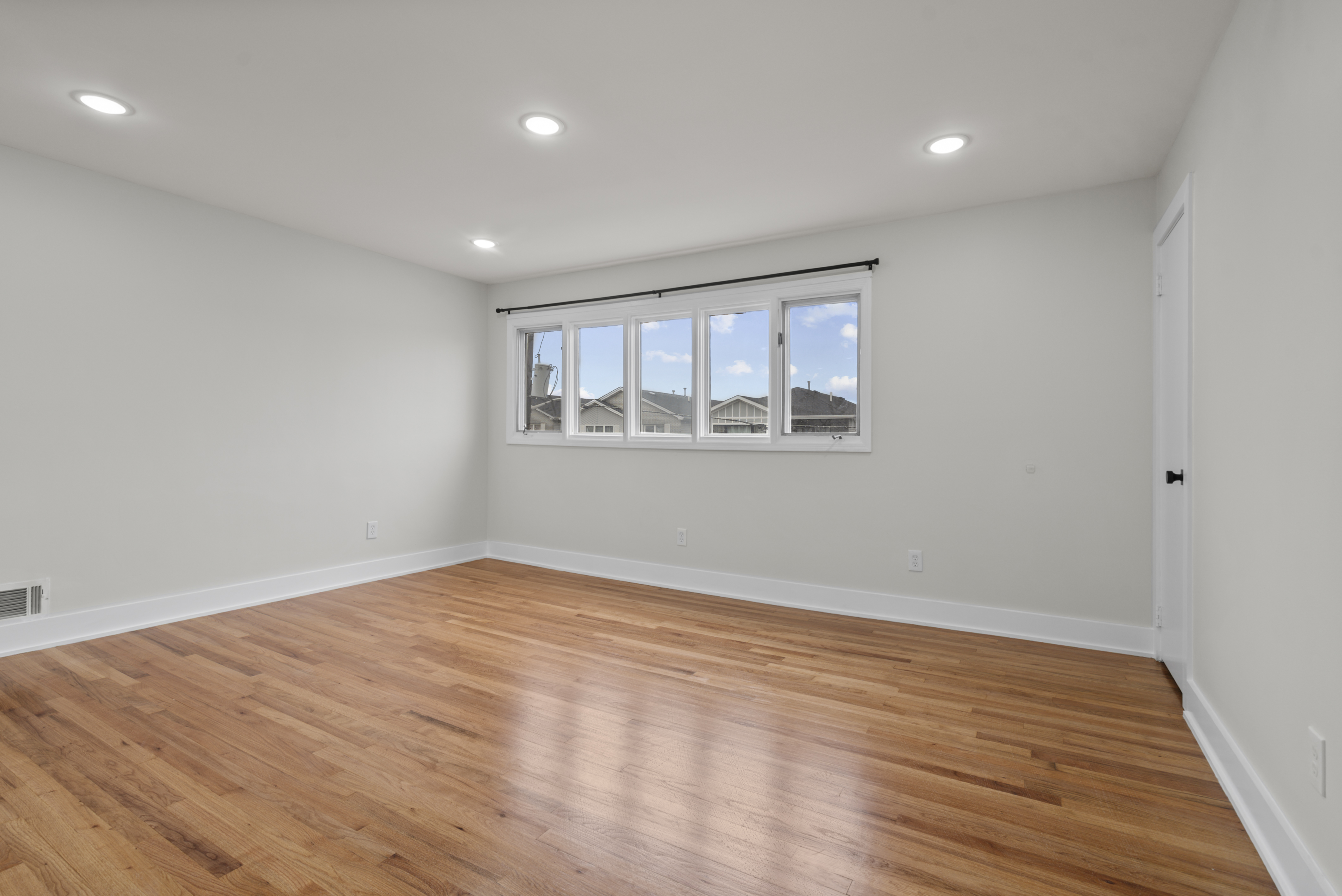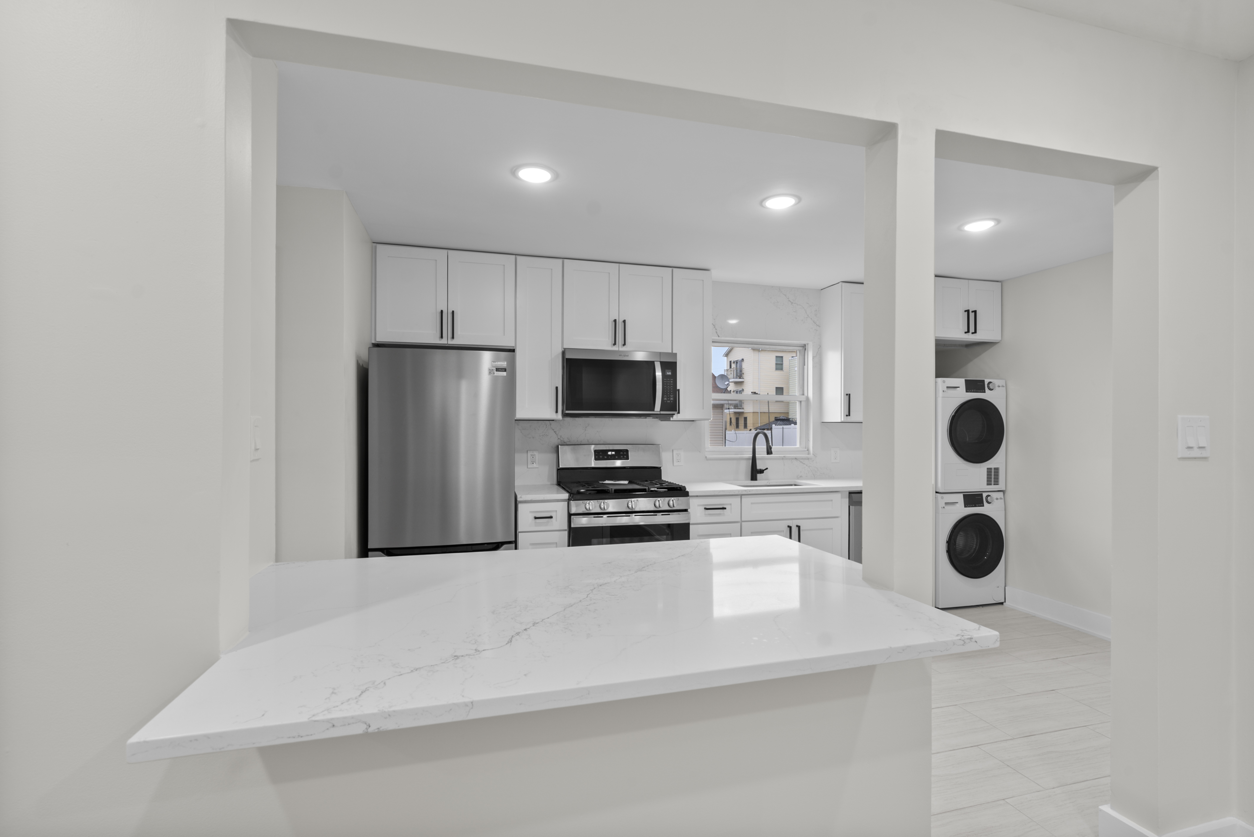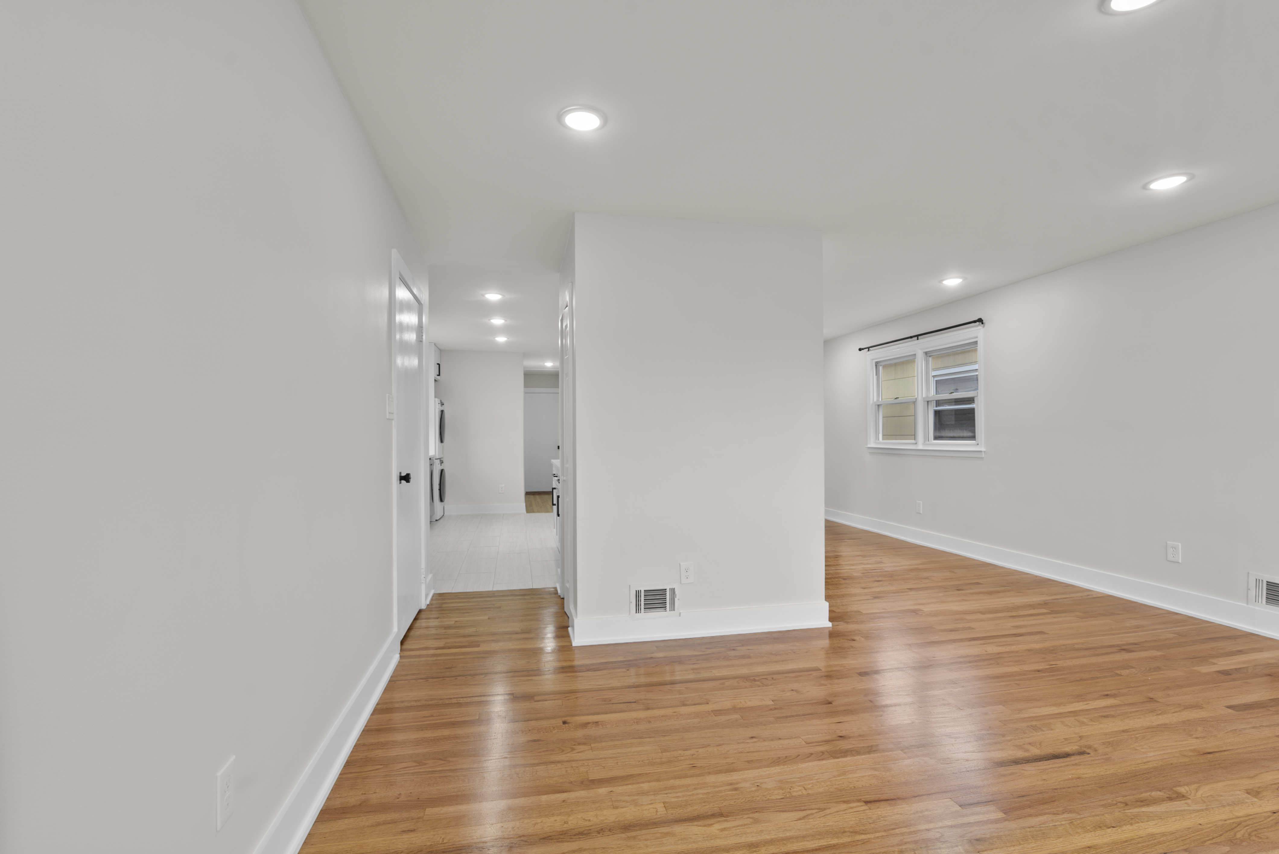 Spacious and beautifully renovated 2-bedroom, 1-bath apartment featuring hardwood floors throughout and abundant natural light. The fully updated kitchen offers modern appliances, sleek finishes, and plenty of cabinet space. Enjoy the comfort of recessed lighting, generously sized bedrooms, and the convenience of an in-unit washer and dryer. One dedicated parking space is included. A perfect blend of style, space, and functionality.