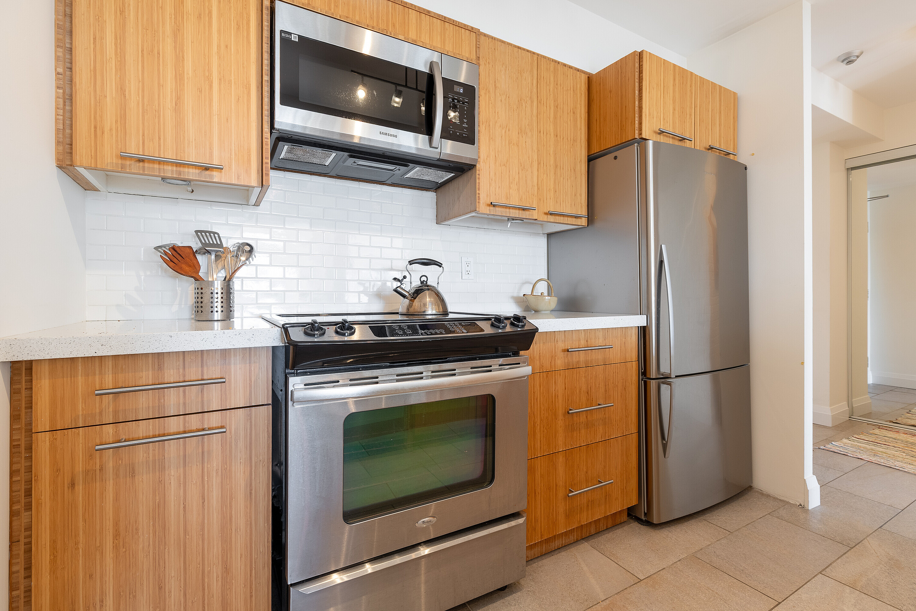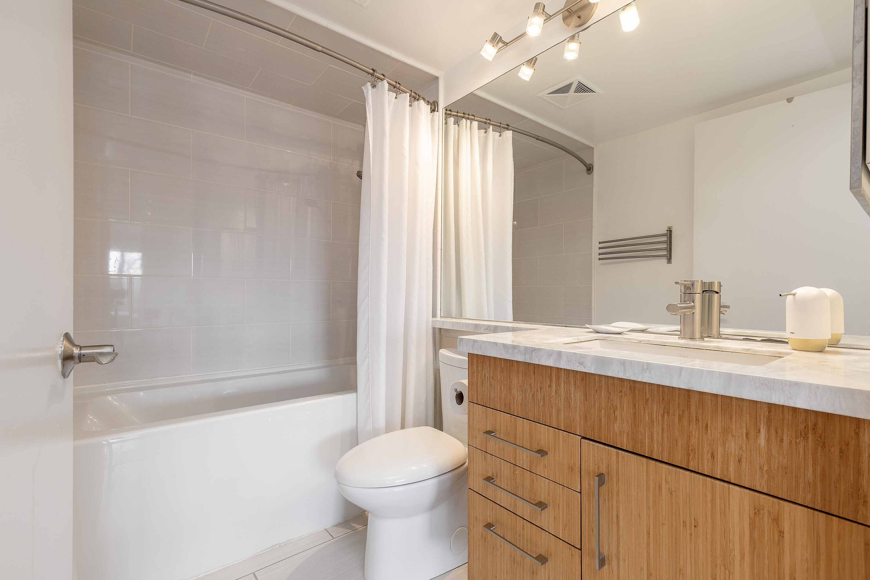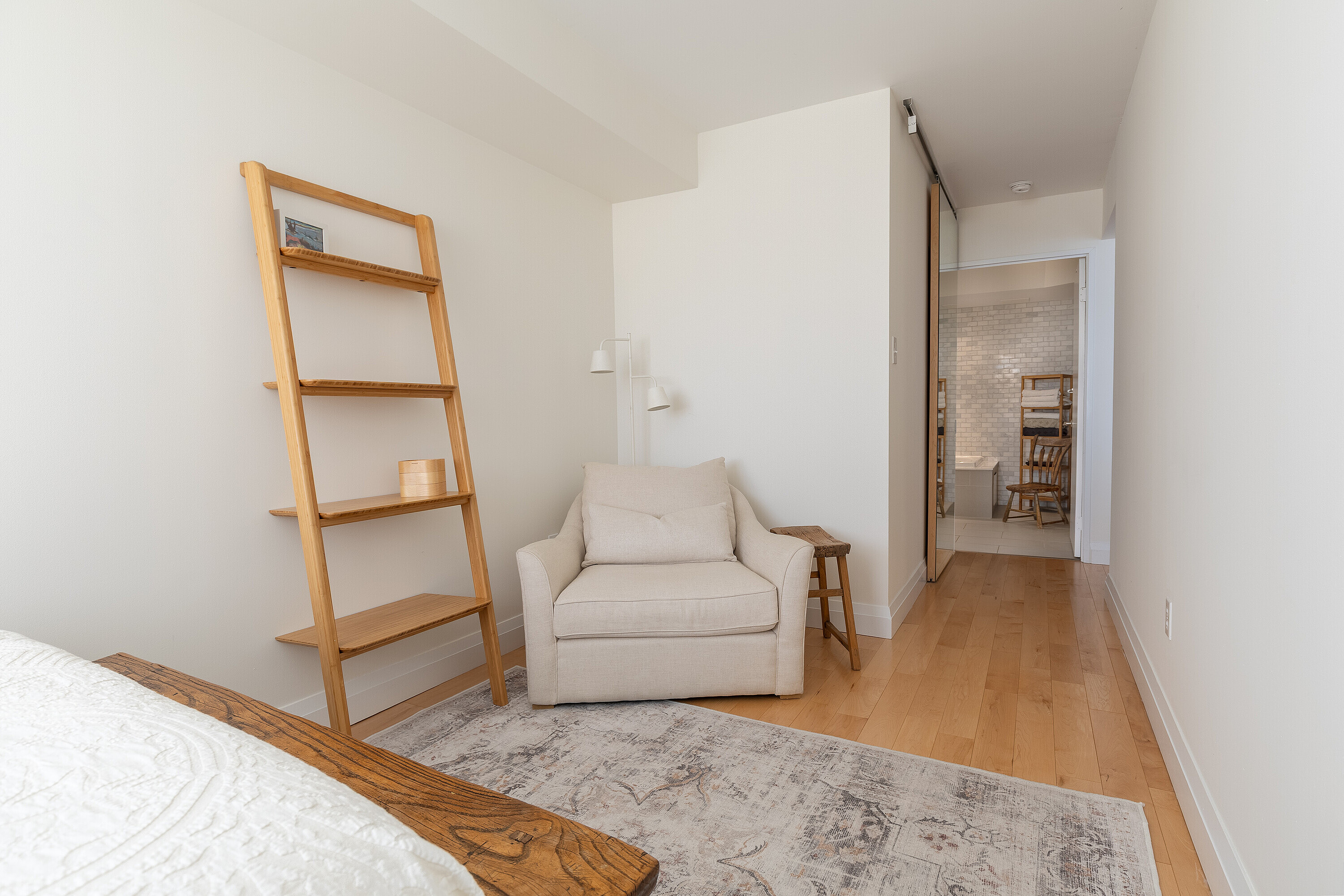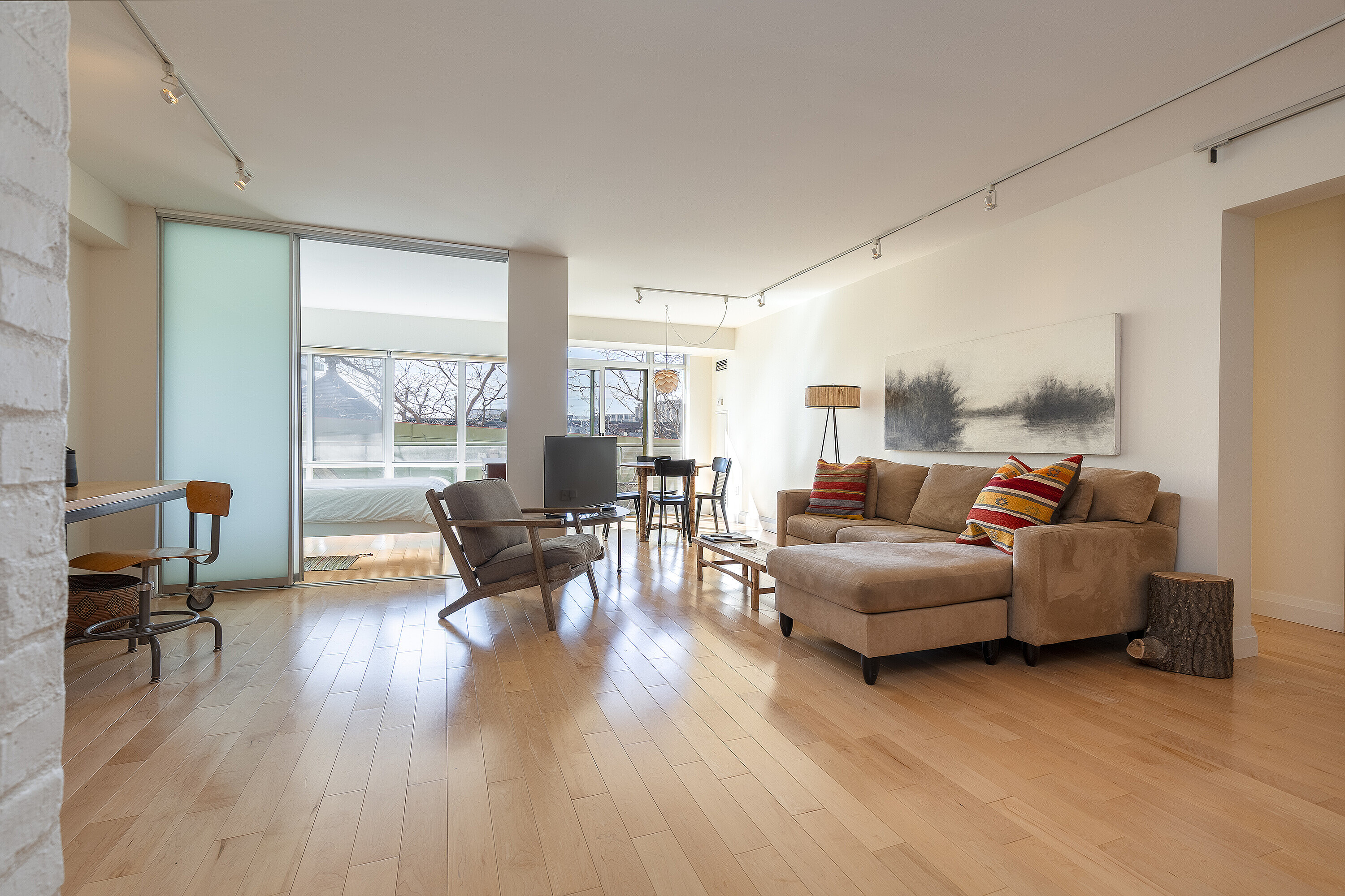 Offering a composed expression of city living within the historic Distillery District, this fully furnished two bedroom, two bathroom suite is thoughtfully arranged as a turnkey short term residence, designed for ease, comfort and flexibility. Hardwood floors and integrated millwork create a cohesive interior, while the updated kitchen anchors the living space with a centre island, bamboo cabinetry, stainless steel appliances, and generous preparation space. Natural light moves easily through the combined living and dining areas, framed by floor to ceiling south facing windows and a walkout to a large private balcony. The suite's split bedroom plan provides both privacy and adaptability. The primary bedroom features a walk-in closet, a well proportioned ensuite bathroom, and a quiet south facing outlook. The second bedroom offers versatility as a guest room, office, or extended living space, also benefiting from southern exposure. Warm materials, refined finishes, and an intuitive layout establish a calm contemporary atmosphere. Offered fully furnished and configured for short term occupancy, the suite is ideally suited for executives, relocations, and professionals seeking a refined, turnkey residence in the city. Positioned within one of Toronto's most distinctive neighbourhoods, the Distillery District's cobblestone streets, galleries, cafés, and restaurants unfold just outside the door. Convenient access to the Financial District, St. Lawrence Market, King East, transit, and major routes further enhances its ease of living. Parking and a bicycle are included.