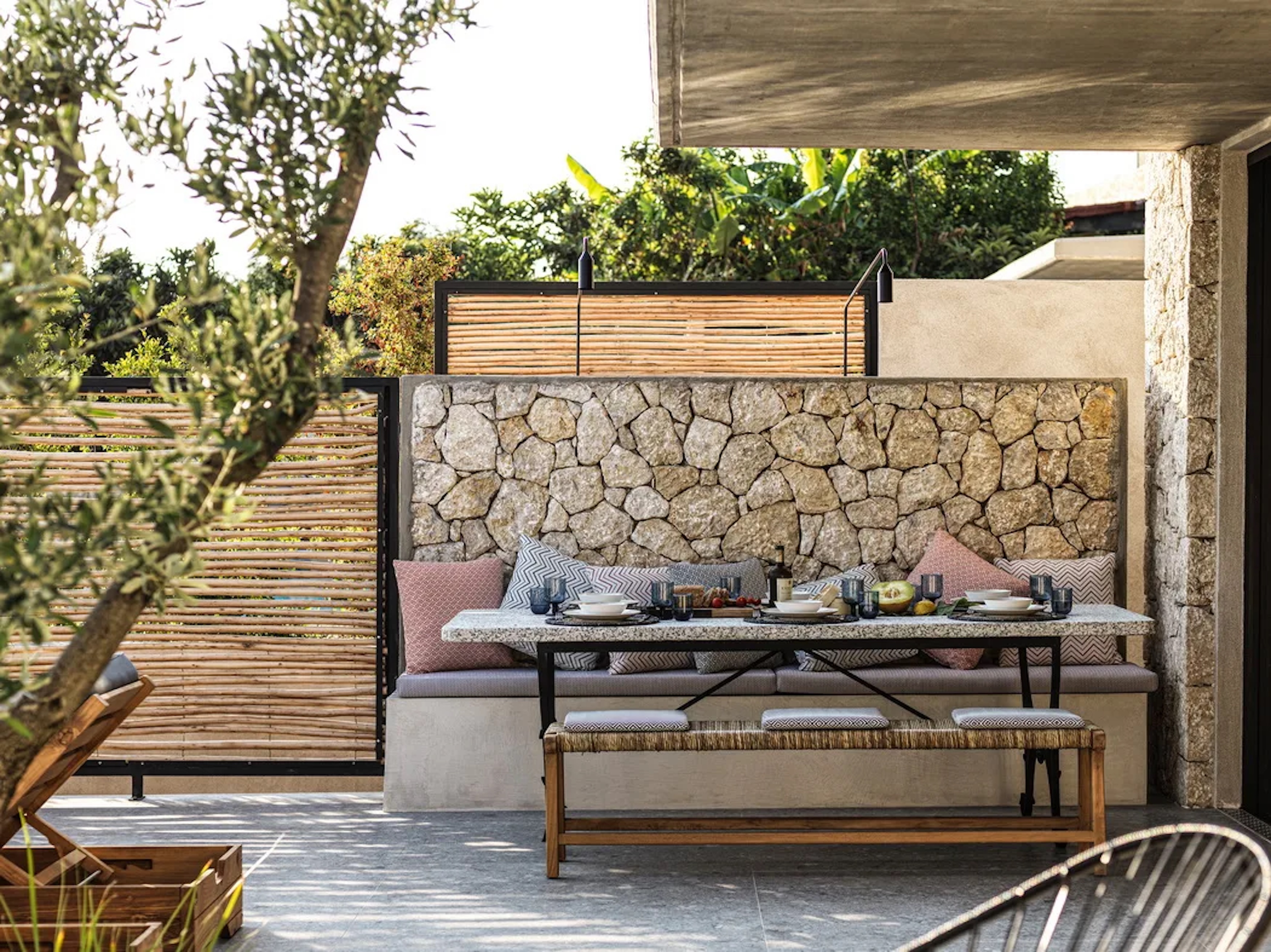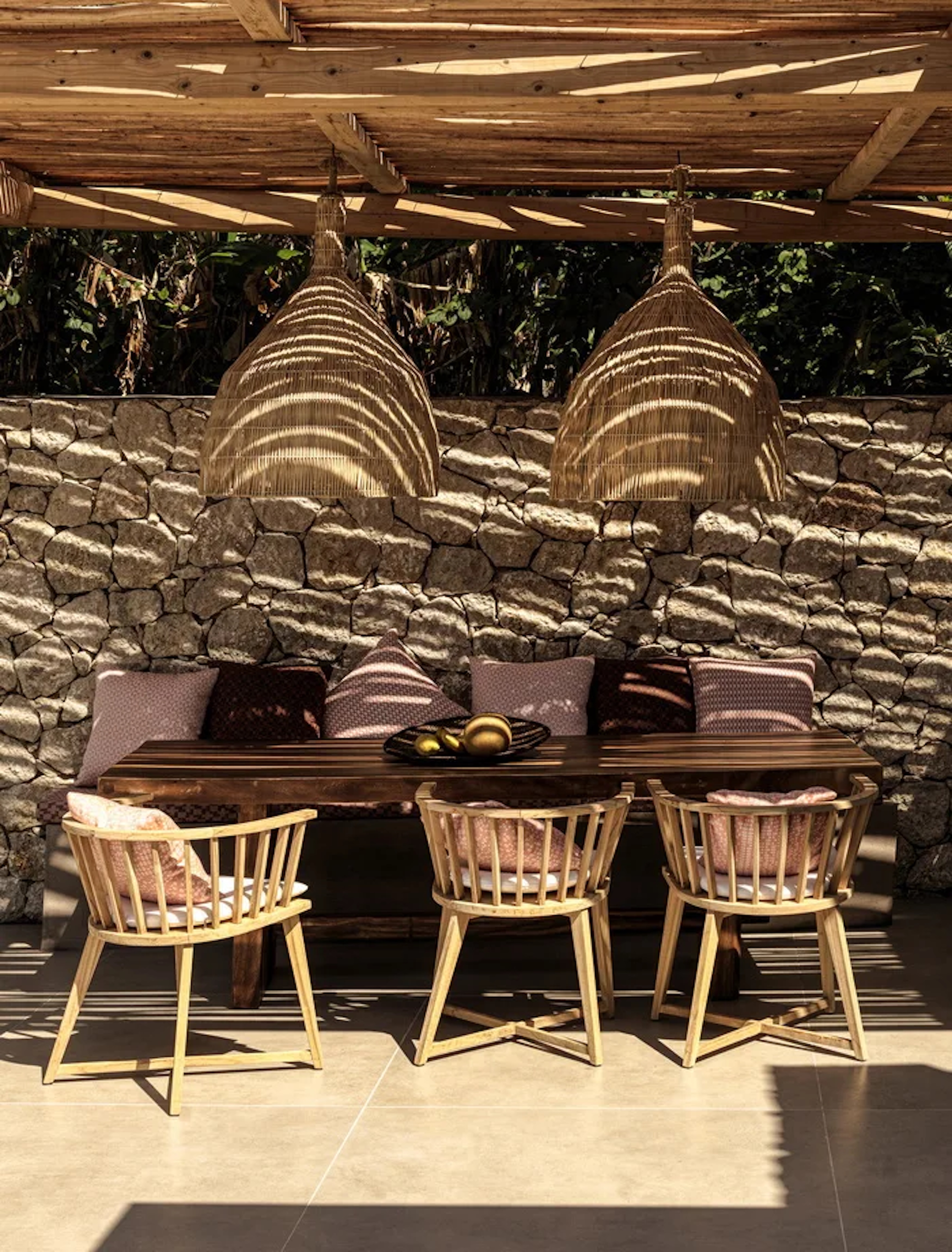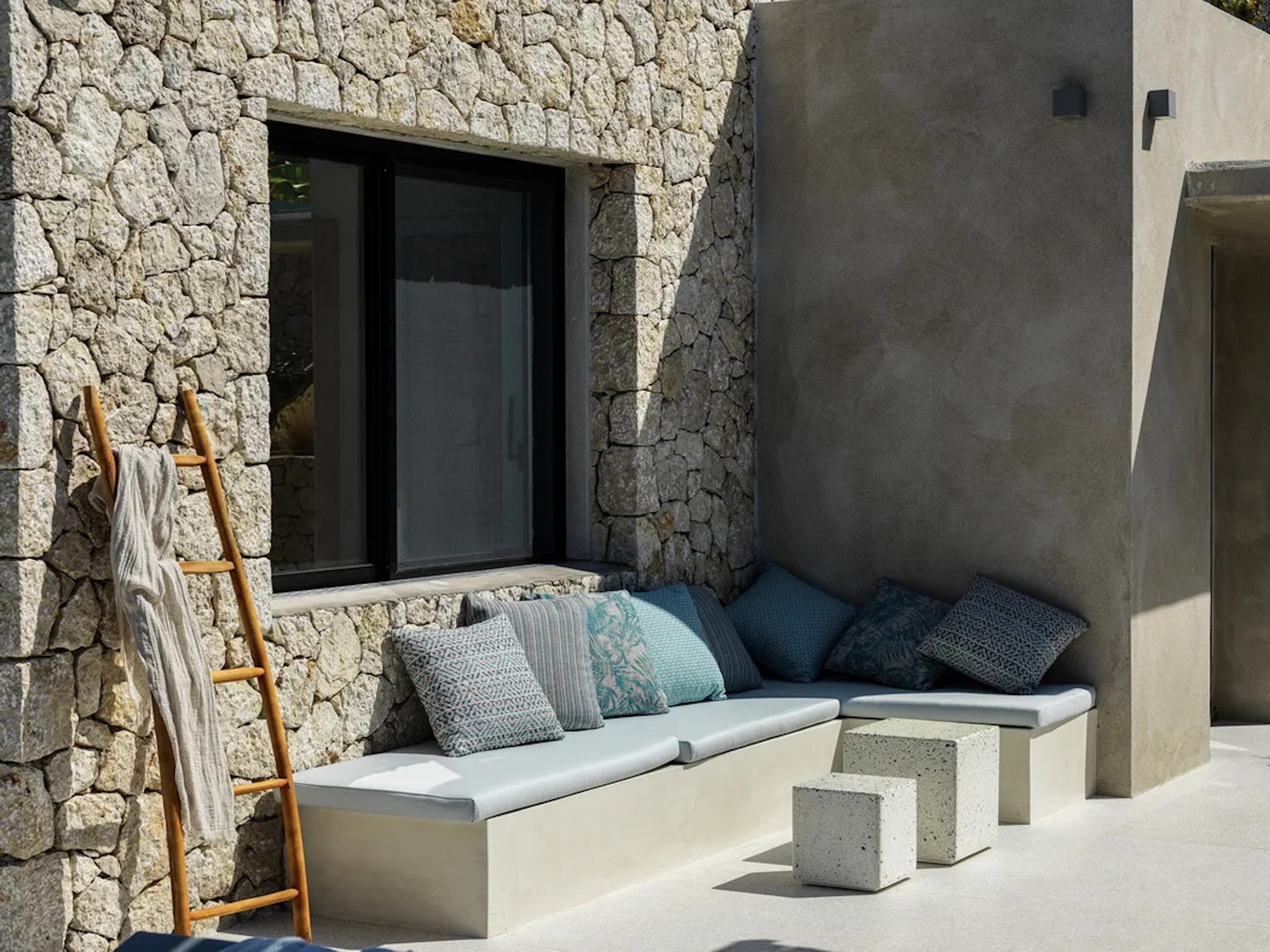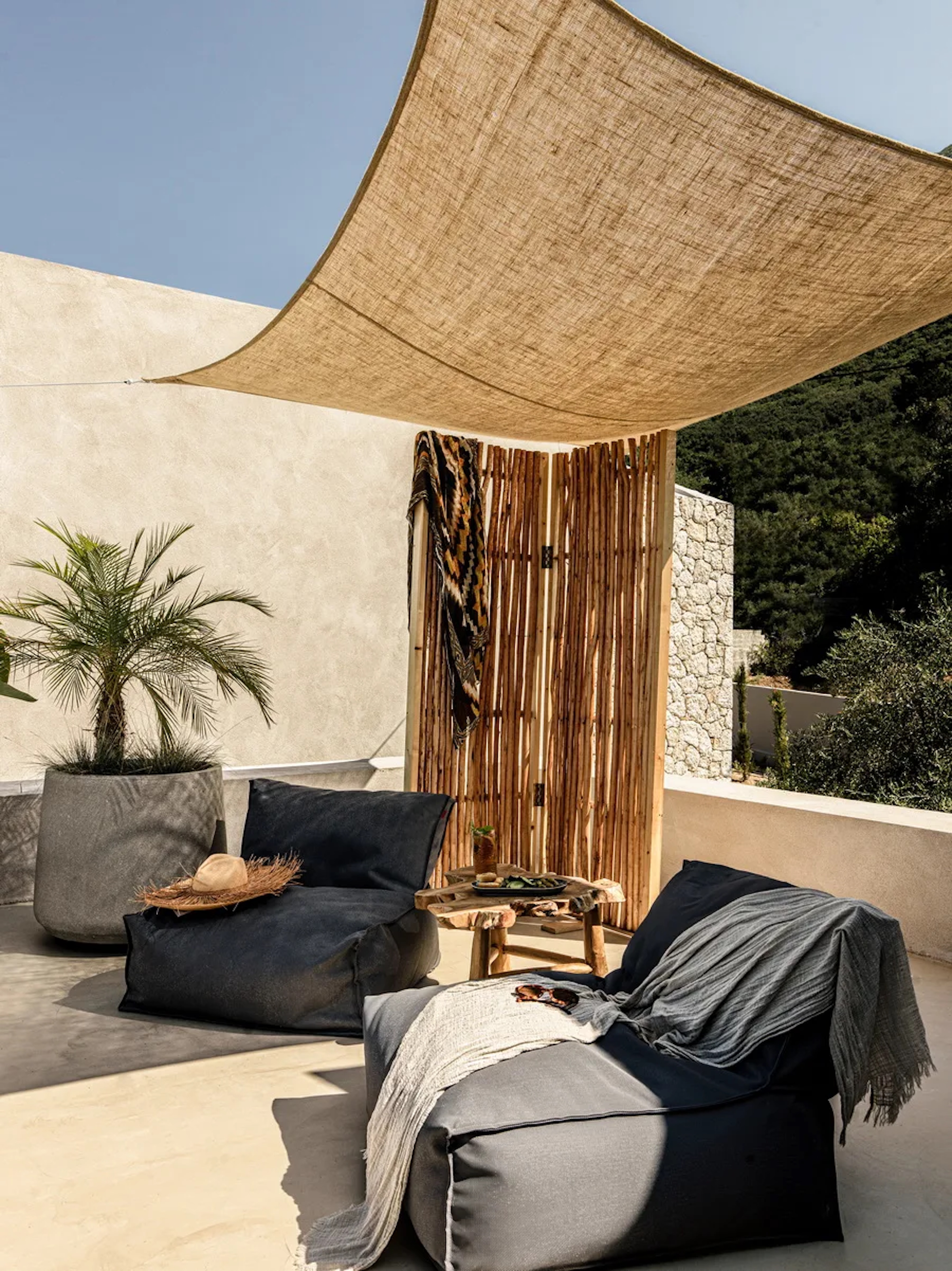 Villa 3, uniquely positioned in front of the other two villas, features two bedrooms, an open-plan living room, and a private infinity pool.