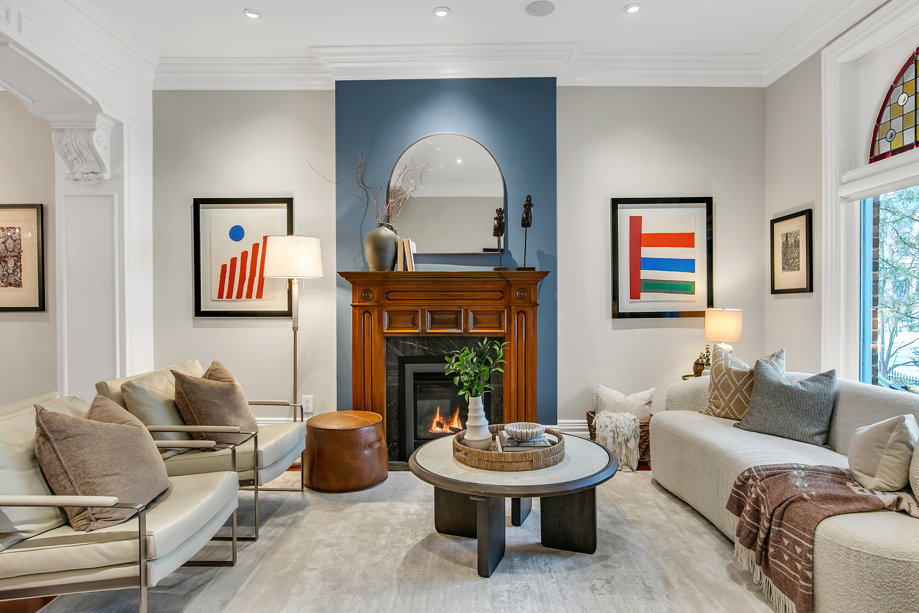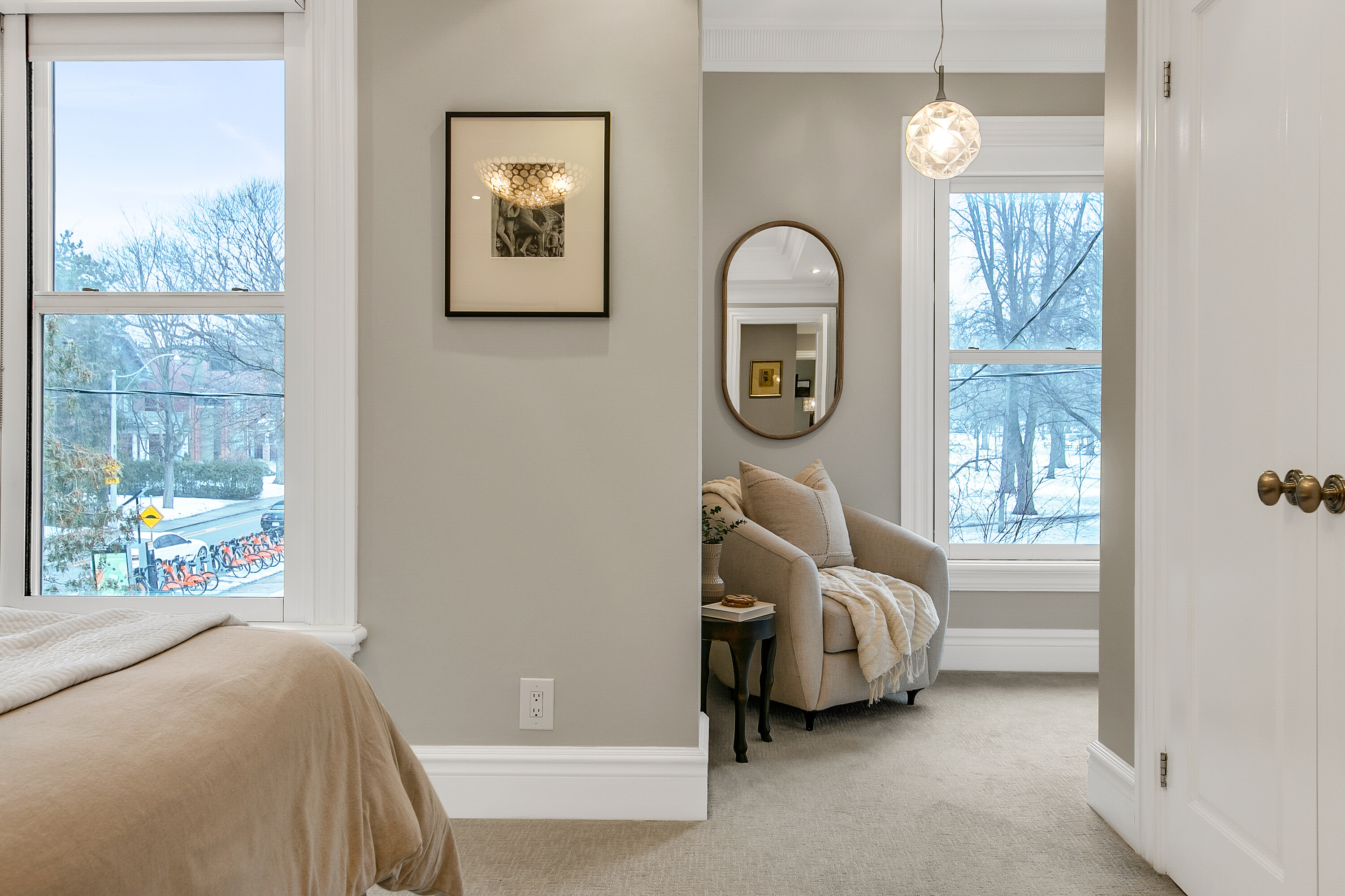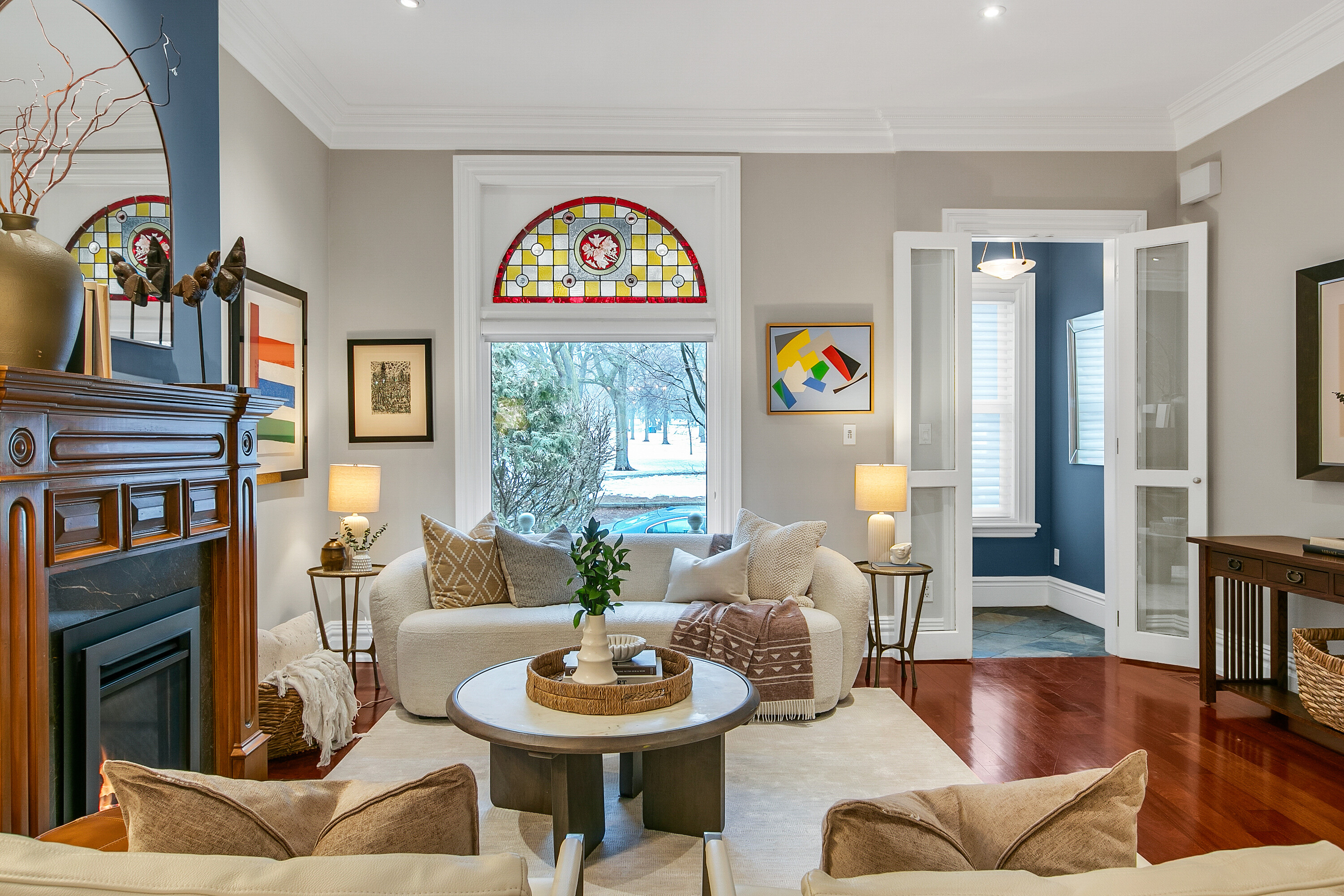Welcome to genteel living on the park. Located mid-block on a charming cobblestone stretch of Carlton Street overlooking Riverdale Park, this handsome solid brick Victorian has been beautifully renovated while preserving the timeless character expected of a classic Cabbagetown home. Imagine warm summer mornings on the gracious front porch, coffee in hand as birdsong drifts across the park, or relaxing at day's end with a glass of wine and a gentle breeze wafting through the trees. Living on this coveted block is the quintessential Cabbagetown dream. Gracious by design, a separate front foyer with slate tile and French doors opens to the elegant main floor where period charm meets modern comfort. The open concept living room has a gas fireplace, hardwood floors, and a large picture window framing leafy park views. Architectural details include crown mouldings, deep baseboards, stained glass, decorative brackets, and a panelled archway creating a warm and sophisticated ambiance. The main floor also includes a powder room and closet. A spacious skylit dining room is ideal for entertaining and hosting large gatherings. The eat-in kitchen features a striking coffered ceiling, marble countertops, stainless steel appliances, and a walkout to a deck with gas barbecue hookup, perfect for summertime grilling. Upstairs, a beautifully renovated study with custom millwork is the perfect work-from-home space and could easily be converted back to a third bedroom. A tranquil primary suite enjoys treetop and park views, a cozy sitting room, two double closets with organizers, a coffered ceiling, and luxurious broadloom. The oversized bathroom has classic black and white tile, heated floors, a rain head shower, heated towel rack, and skylight. A bright second bedroom overlooks the garden and features a double closet. The full basement includes laundry, ample storage, and access to the backyard. The fenced backyard has been professionally re-landscaped with stone hardscaping, new fencing with a laneway gate, exterior lighting, and a dedicated pet area. Beautifully renovated, meticulously maintained, and one hundred percent turnkey, this exceptional home offers elegant living just steps to the fabled Riverdale Farm.