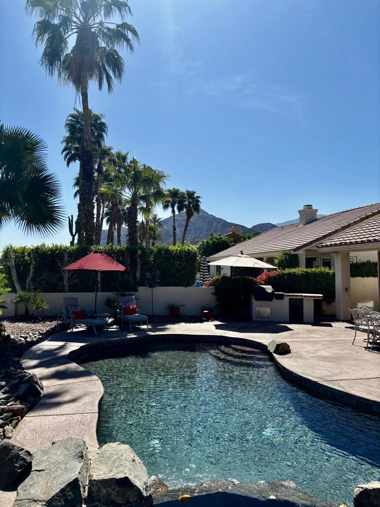 Professional photos coming soon.Experience the ultimate desert lifestyle in this premium residence located within The Fairways, one of La Quinta's most sought-after guard-gated communities. Situated on an oversized elevated lot, this property offers rare privacy and breathtaking views of the Dunes Golf Course, and vibrant sunrises.The interior boasts a bright, open floor plan with high ceilings and a sophisticated neutral palette. Designed for versatility and comfort, the layout includes 2 spacious bedrooms, a bonus den (perfect for a home office or media room), and a private guest casita with a separate entrance. Outside, the deep, elevated lot serves as your private sanctuary to soak in the scenery with multiple lounging areas as bilt in BBQ. Best of all, enjoy low HOA dues while being minutes away from world-class amenities: Old Town, La Quinta Resort & Spa, Golf, Pickleball, Hiking & Biking.