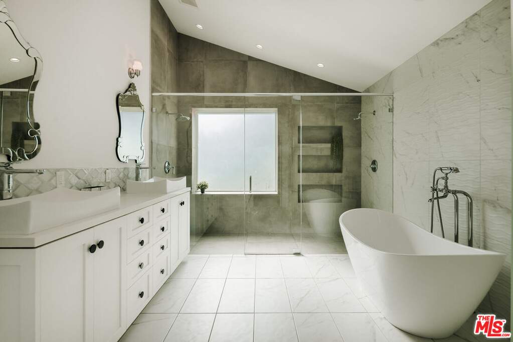 Tucked away at the end of a quiet cul-de-sac within the coveted Sea Reef enclave of Pacific Palisades, this reimagined coastal residence offers privacy, scale, and sweeping ocean views extending across Santa Monica Bay toward Catalina Island. Set on an expansive 17,227 square foot lot, the property delivers rare usable outdoor space in a hillside setting, creating an exceptional opportunity for both immediate enjoyment and future enhancement. Spanning approximately 2,799 square feet, the four-bedroom, four-bathroom home is thoughtfully designed around open, light-filled living spaces. Vaulted ceilings and skylights introduce natural light throughout, while wide plank flooring and refined contemporary finishes create a clean, cohesive aesthetic. The main living and dining areas flow seamlessly into the chef's kitchen, where custom cabinetry, stone surfaces, stainless appliances, and a generous center island anchor the heart of the home. Expansive sliding glass doors open to the flat grassy yard, encouraging effortless indoor-outdoor living and entertaining.The primary suite serves as a tranquil retreat with direct access to the grounds and a spa-inspired bath featuring a freestanding soaking tub, glass-enclosed shower, and dual vanities. Secondary bedrooms are well-proportioned and flexible, suitable for guests, office, or fitness use. An elevated deck captures serene ocean vistas framed by mature greenery, offering a private setting for sunset views and outdoor gatherings. The depth and width of the lot provide space for recreation, lounging, or potential future amenities, including pool expansion subject to buyer verification. Additional features include a two-car garage and generous driveway parking, a rare advantage within this desirable coastal pocket. Located moments from Palisades Village, beaches, scenic hiking trails, and highly regarded public and private schools, this property presents a compelling opportunity to secure a turnkey coastal residence on a substantial parcel in one of the Westside's most sought-after neighborhoods.