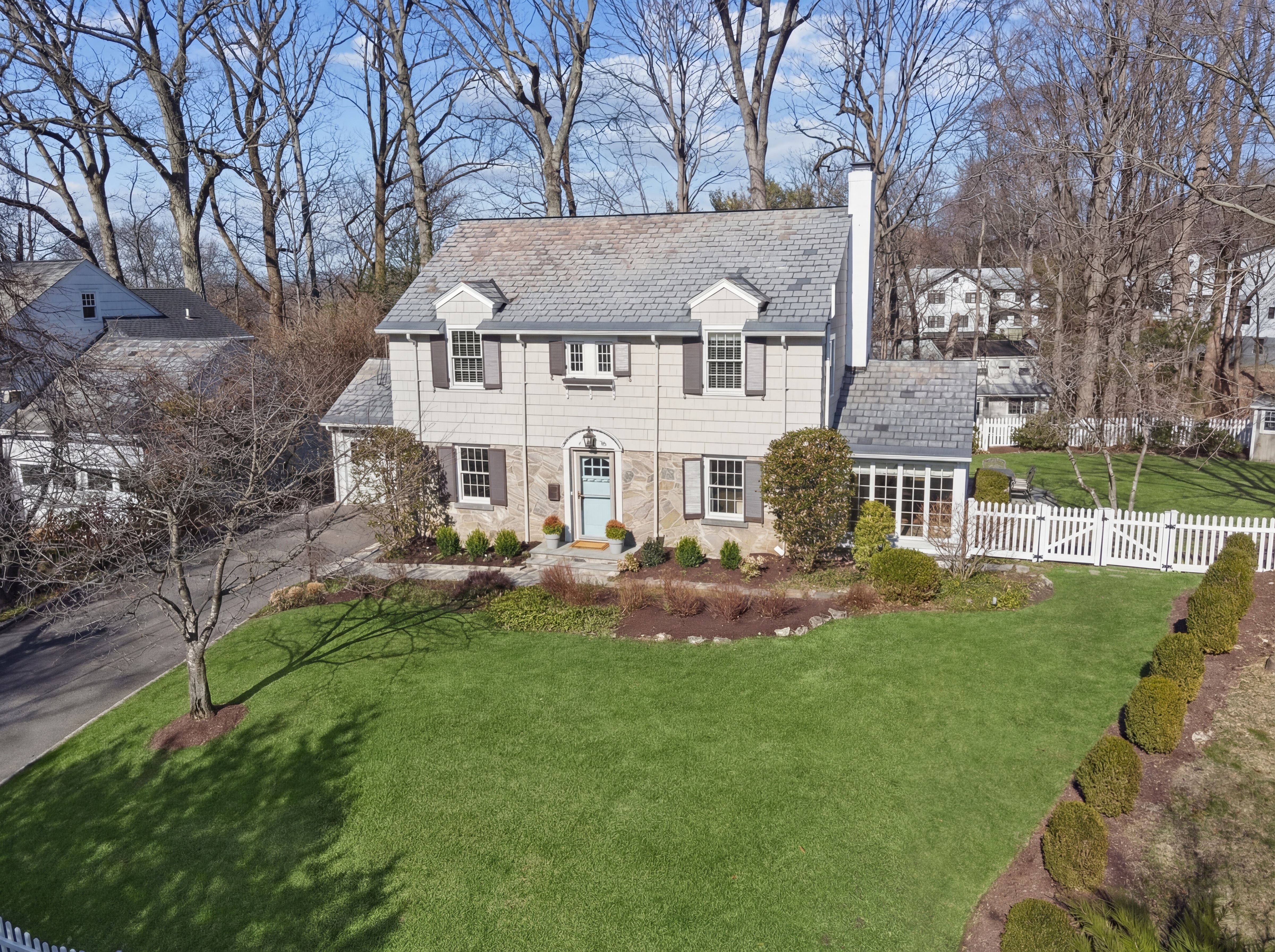 Tucked within a private enclave, this beautifully updated center hall Colonial offers the perfect balance of privacy, comfort, and everyday convenience. A welcoming foyer opens to sunlit living and dining rooms, while a bright sunroom creates an ideal work-from-home retreat. Anchoring the home is an expansive kitchen with high-end appliances, a substantial center island, breakfast area, and family room. French doors open to the fully-fenced private backyard with a bluestone patio, creating seamless indoor-outdoor flow for outdoor dining, celebrations, and everyday play. A mudroom keeps daily life organized, complemented by a first-floor powder room. Upstairs are four bedrooms and two recently renovated full baths (2022). The primary suite features soaring ceilings and a charming Juliet balcony perfect for enjoying fresh morning air with a cup of coffee.The fully renovated lower level (2016) offers a bright recreation room with a home theater, 100-inch projector screen, digital projector, and in-wall surround speakers, along with a full bath and generous storage. Recent improvements and features include a new steam boiler (2025), Bosch dishwasher (2025), water heater (2019), smart thermostats, natural gas grill hookup, Ring security system, & whole-house generator for added peace of mind. Zoned for Hartshorn Elementary and Millburn's top-rated schools. Convenient to major highways, The Mall at Short Hills, Newark Liberty International Airport, and Midtown Direct trains to NYC.
