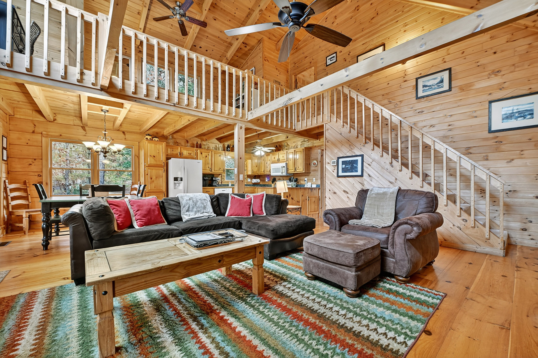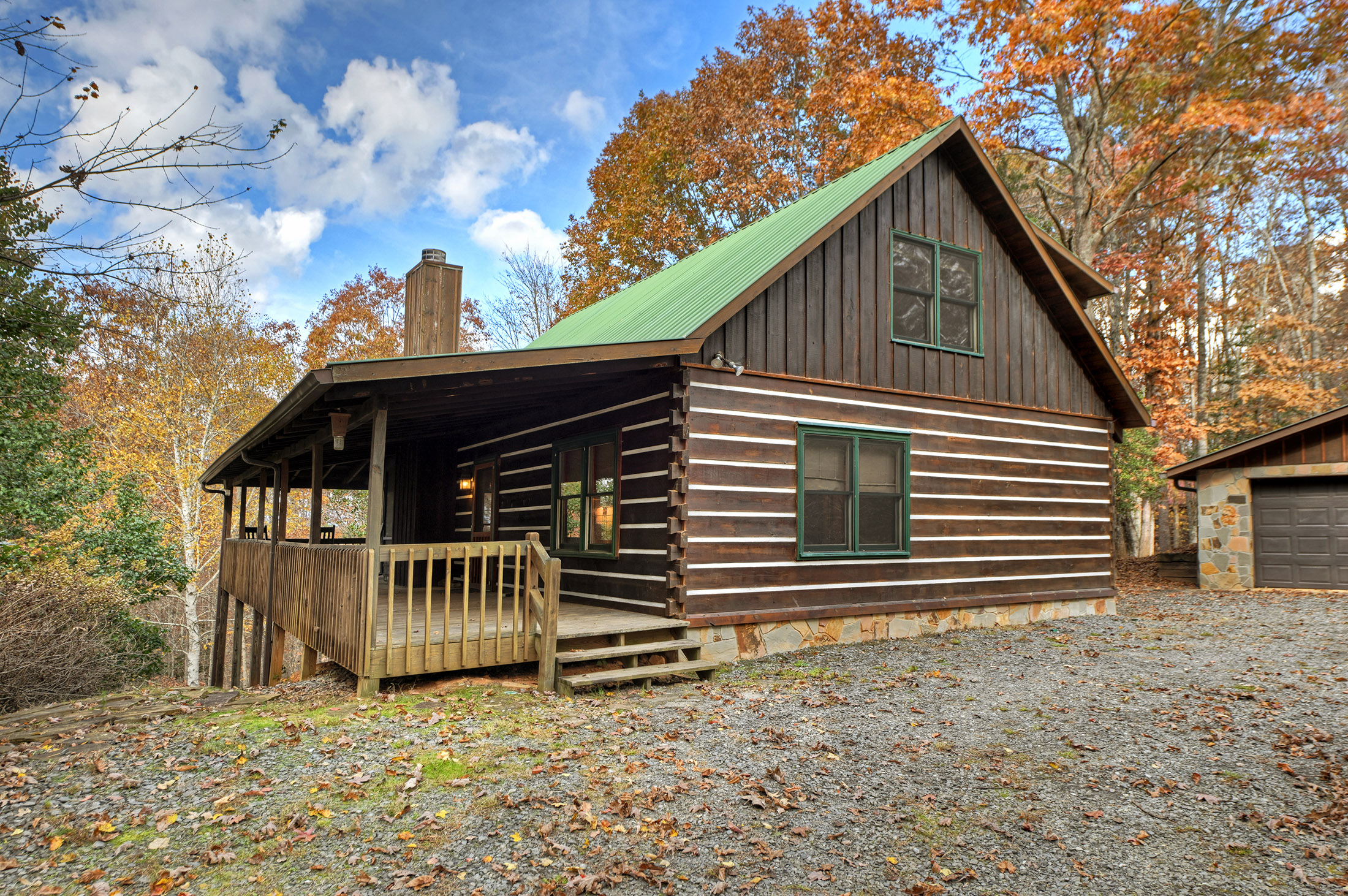 Charming rustic cabin tucked in the heart of the North Georgia mountains! Showcasing classic dovetail log construction, a soaring wall of glass, and a grand stacked-stone fireplace, this home perfectly balances timeless mountain character with modern comfort. The open-concept layout offers four bedrooms, a cozy loft, and two inviting living spaces-an airy great room on the main level and a terrace-level den that opens to a fenced backyard. Enjoy the outdoors from the expansive wraparound deck while taking in the year-round mountain view. Complete with a detached two-car garage and all-paved access, 100 Arrow Way is ideal as a full-time residence, second home charmer, or a lucrative short-term rental opportunity.