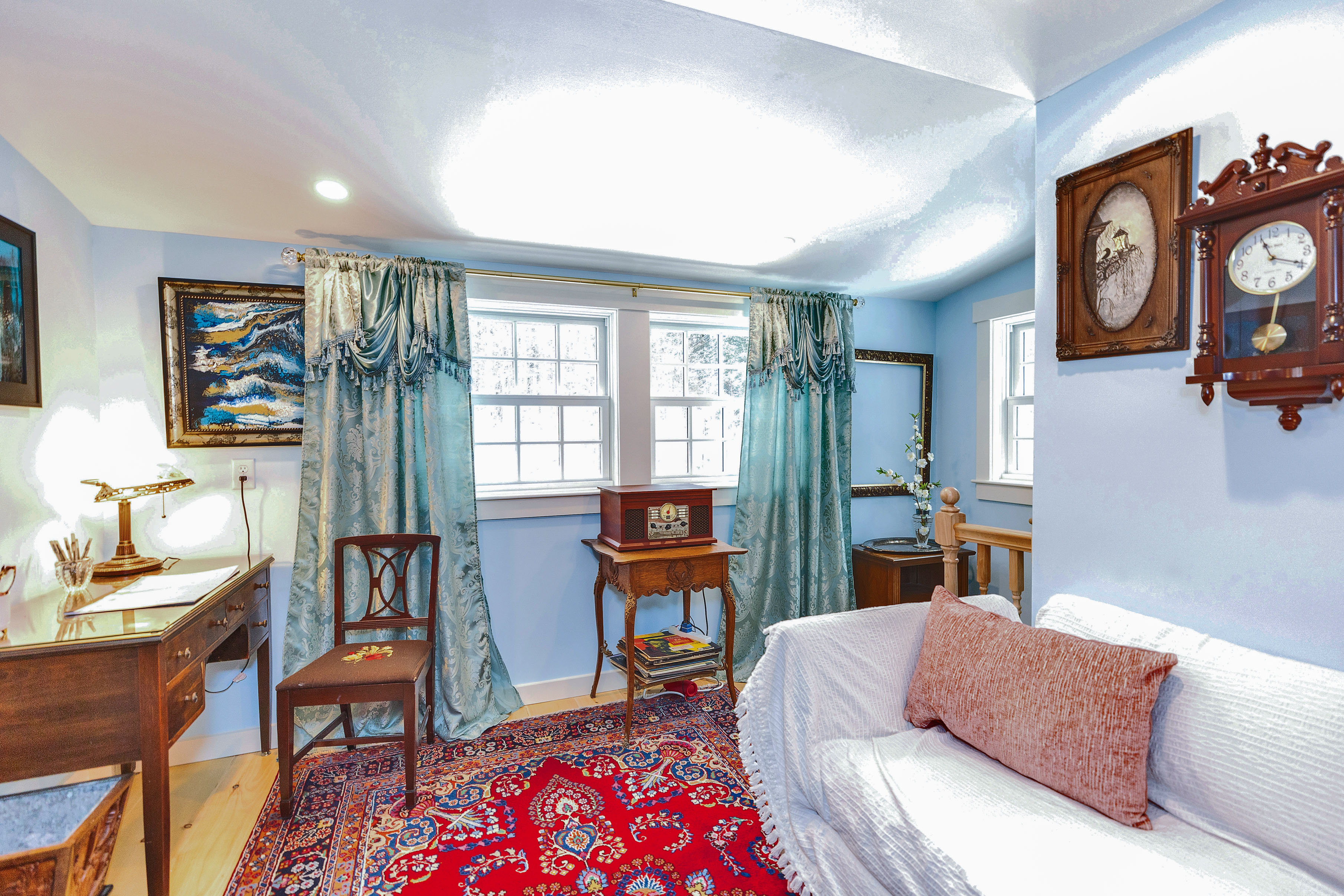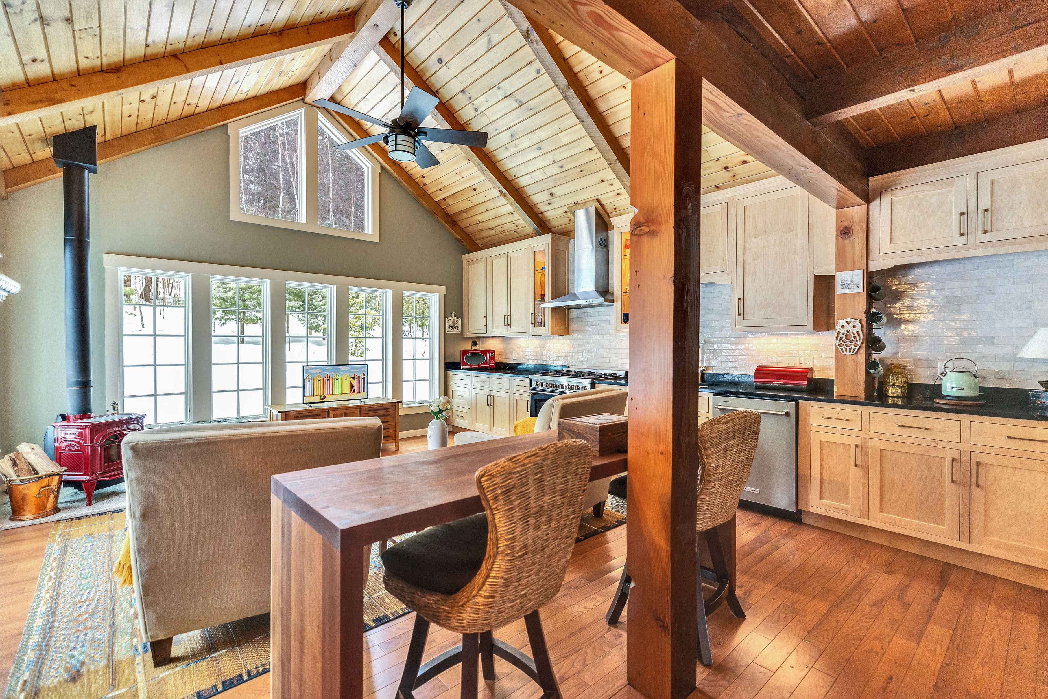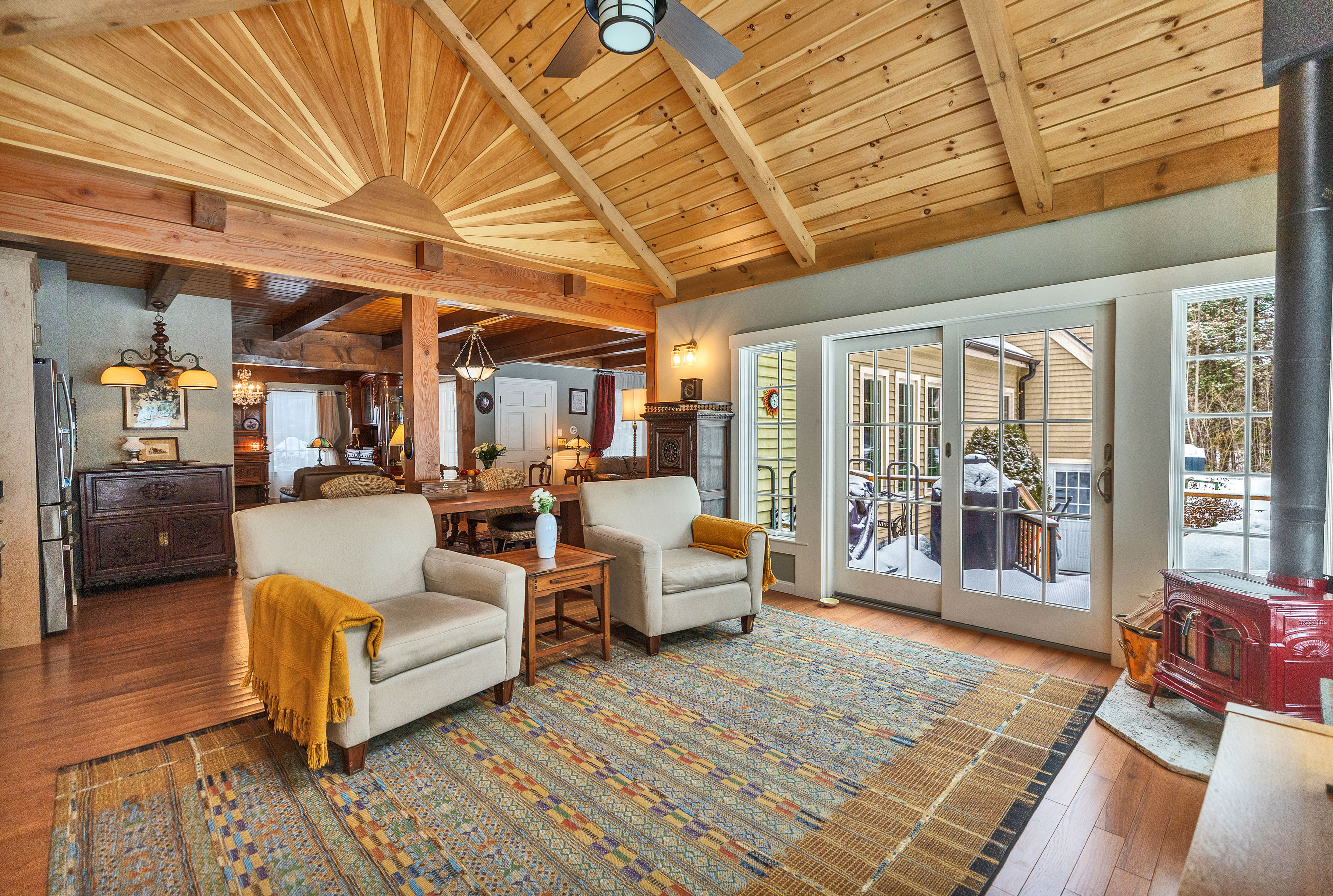 This custom Bow Cape residence blends classic New England character with thoughtful renovations. Exposed beams and beautiful hardwood floors run throughout, creating warmth and architectural interest. The formal living room is anchored by a Rumford wood-burning fireplace and large windows overlooking the private backyard. A spacious dining room connects to the bright kitchen, recently expanded to include maple cabinetry, new GE appliances, and a prestige Verona five burner double gas range. The handcrafted sunburst gable decorative detail is delightful. The home has a sought-after first-floor primary bedroom with vaulted ceilings and a walk-in closet. A two-level addition adds a large dressing room and laundry area. Upstairs are two bedrooms with wide pine floors, generous closets, and a shared full bath, along with a fourth bedroom featuring its own private bath ideal for guests or multi-generational living. Additional spaces include a home office and studio space. A Vermont Castings wood stove, dual water filtration system, and portable generator add comfort and practicality. The grounds have been thoughtfully cultivated with raised beds, a vegetable garden, a strawberry patch, grapes, and fruit trees, including nectarine, apple, plum, cherry, and apricot. A greenhouse, flagstone patio, and deck provide inviting outdoor spaces. The tranquil pond has a custom Japanese bridge and a torii gate leads to a meditative garden. There is also an outdoor shower. The three-car heated garage offers excellent storage, shelving, workshop space, and a 20x12 ShelterLogic shed. The owners have invested over $275,000 in the property since 2022. Located across from Crotched Mountain Golf Club and minutes from Crotched Mountain Resort for skiing, Scobie Pond for swimming, and Dinsmore Brook Conservation Area for hiking and recreation. Manchester, Concord, and Nashua are within about 40 minutes, with Boston approximately 90 minutes away. A must see!