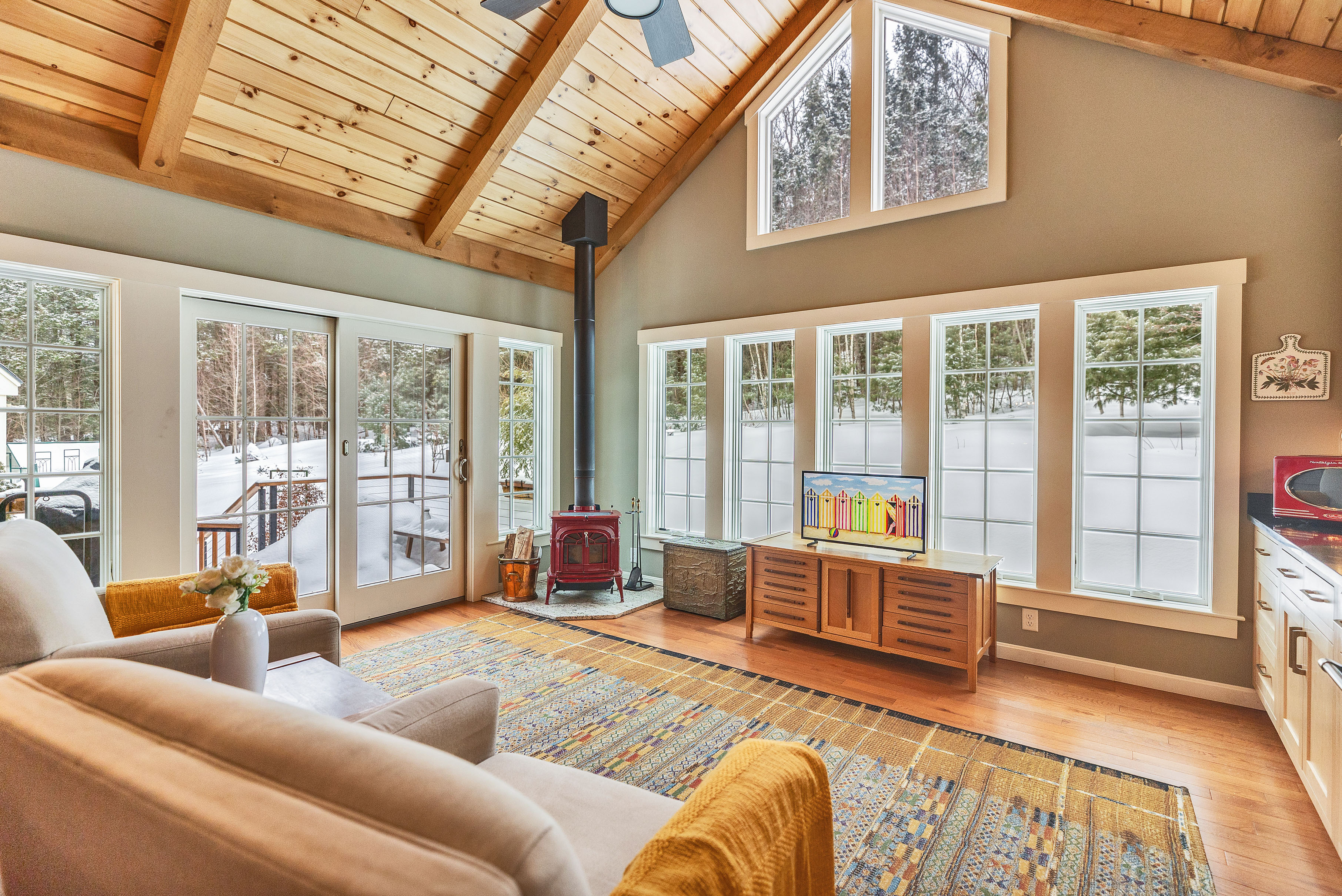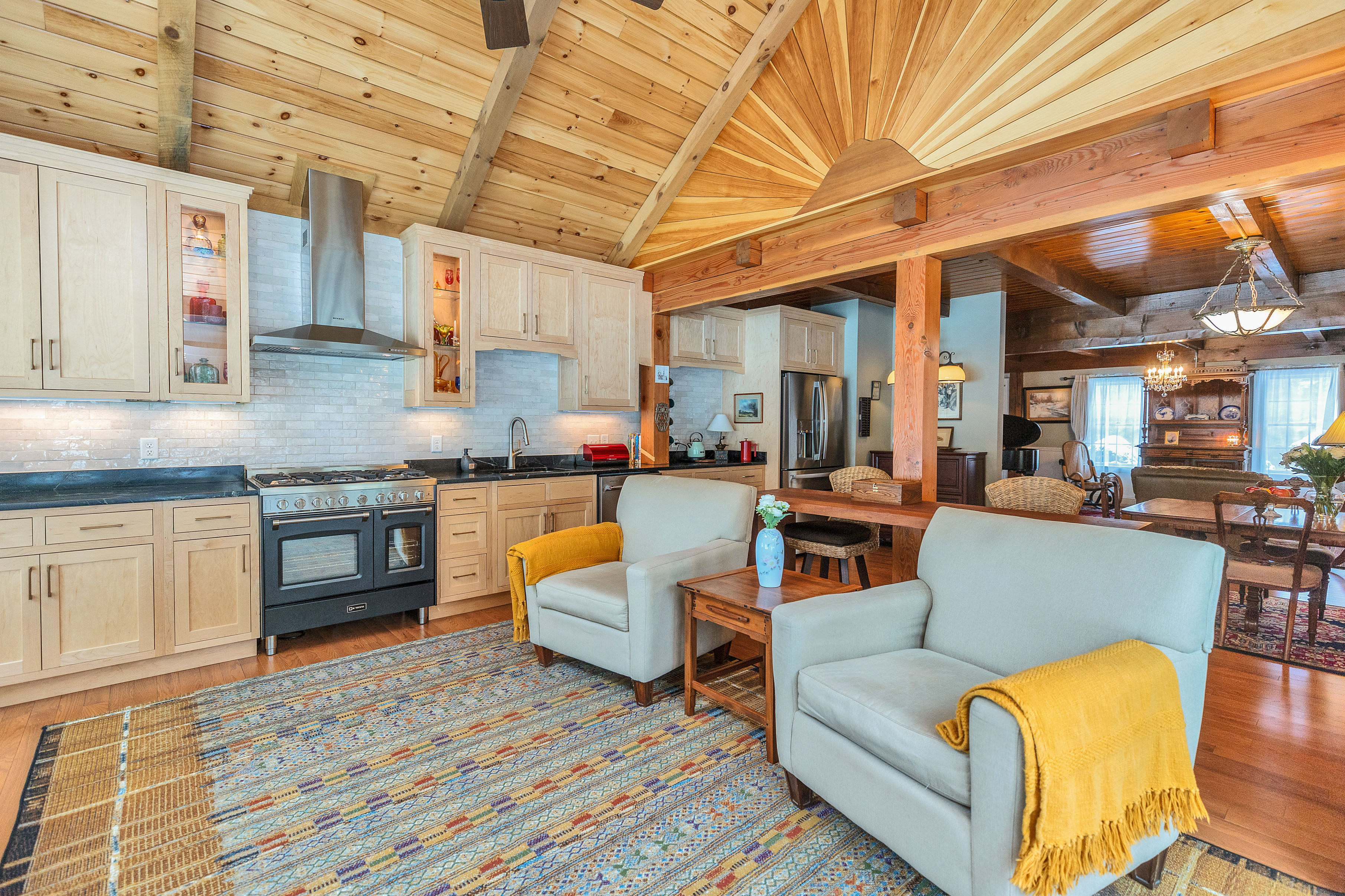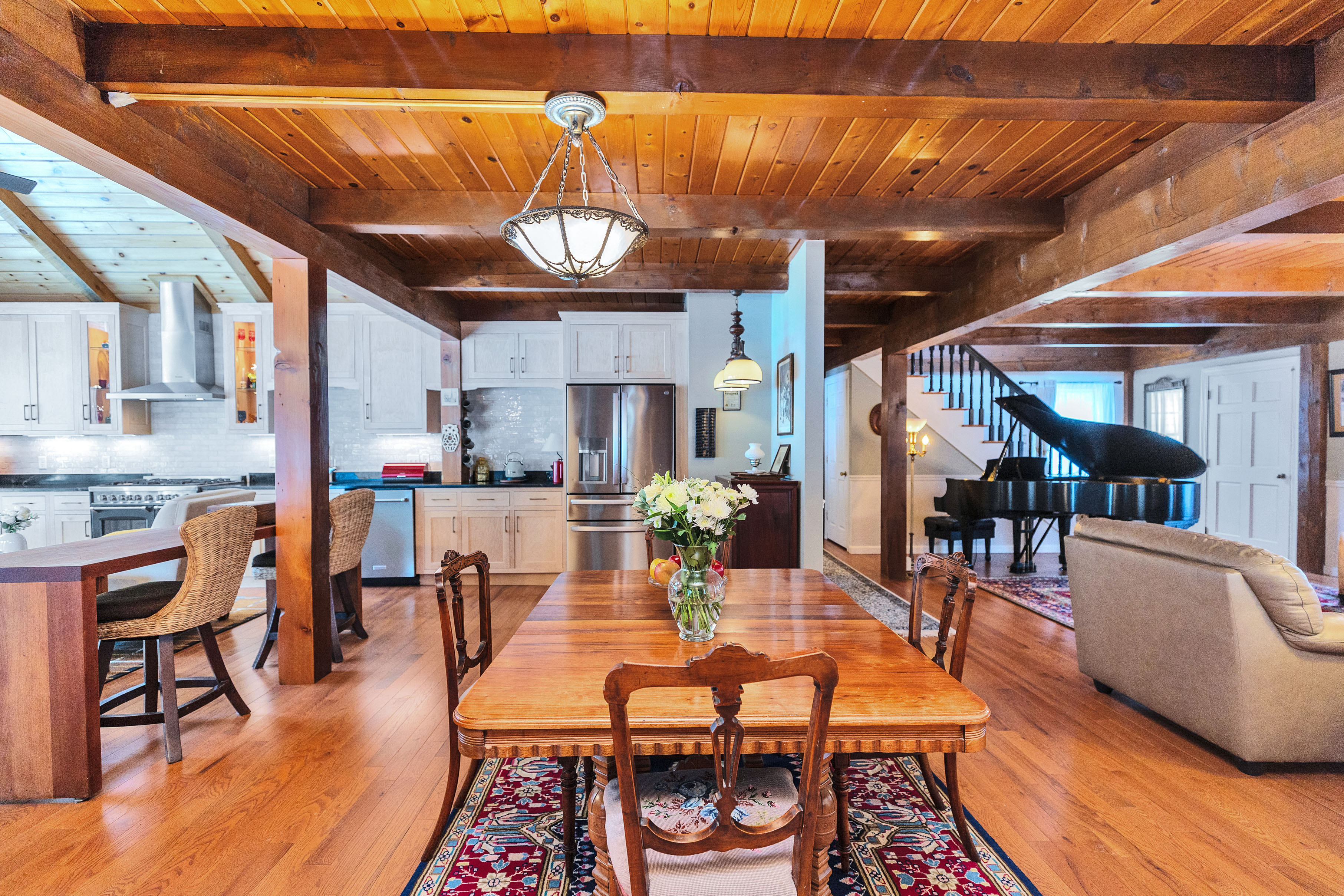 This custom Bow Cape residence blends classic New England character with thoughtful renovations. Exposed beams and beautiful hardwood floors run throughout, creating warmth and architectural interest. The formal living room is anchored by a Rumford wood-burning fireplace and large windows overlooking the private backyard. A spacious dining room connects to the bright kitchen, recently expanded to include maple cabinetry, new GE appliances, and a prestige Verona five burner double gas range. The handcrafted sunburst gable decorative detail is delightful. The home has a sought-after first-floor primary bedroom with vaulted ceilings and a walk-in closet. A two-level addition adds a large dressing room and laundry area. Upstairs are two bedrooms with wide pine floors, generous closets, and a shared full bath, along with a fourth bedroom featuring its own private bath ideal for guests or multi-generational living. Additional spaces include a home office and studio space. A Vermont Castings wood stove, dual water filtration system, and portable generator add comfort and practicality. The grounds have been thoughtfully cultivated with raised beds, a vegetable garden, a strawberry patch, grapes, and fruit trees, including nectarine, apple, plum, cherry, and apricot. A greenhouse, flagstone patio, and deck provide inviting outdoor spaces. The tranquil pond has a custom Japanese bridge and a torii gate leads to a meditative garden. There is also an outdoor shower. The three-car heated garage offers excellent storage, shelving, workshop space, and a 20x12 ShelterLogic shed. The owners have invested over $275,000 in the property since 2022. Located across from Crotched Mountain Golf Club and minutes from Crotched Mountain Resort for skiing, Scobie Pond for swimming, and Dinsmore Brook Conservation Area for hiking and recreation. Manchester, Concord, and Nashua are within about 40 minutes, with Boston approximately 90 minutes away. A must see!