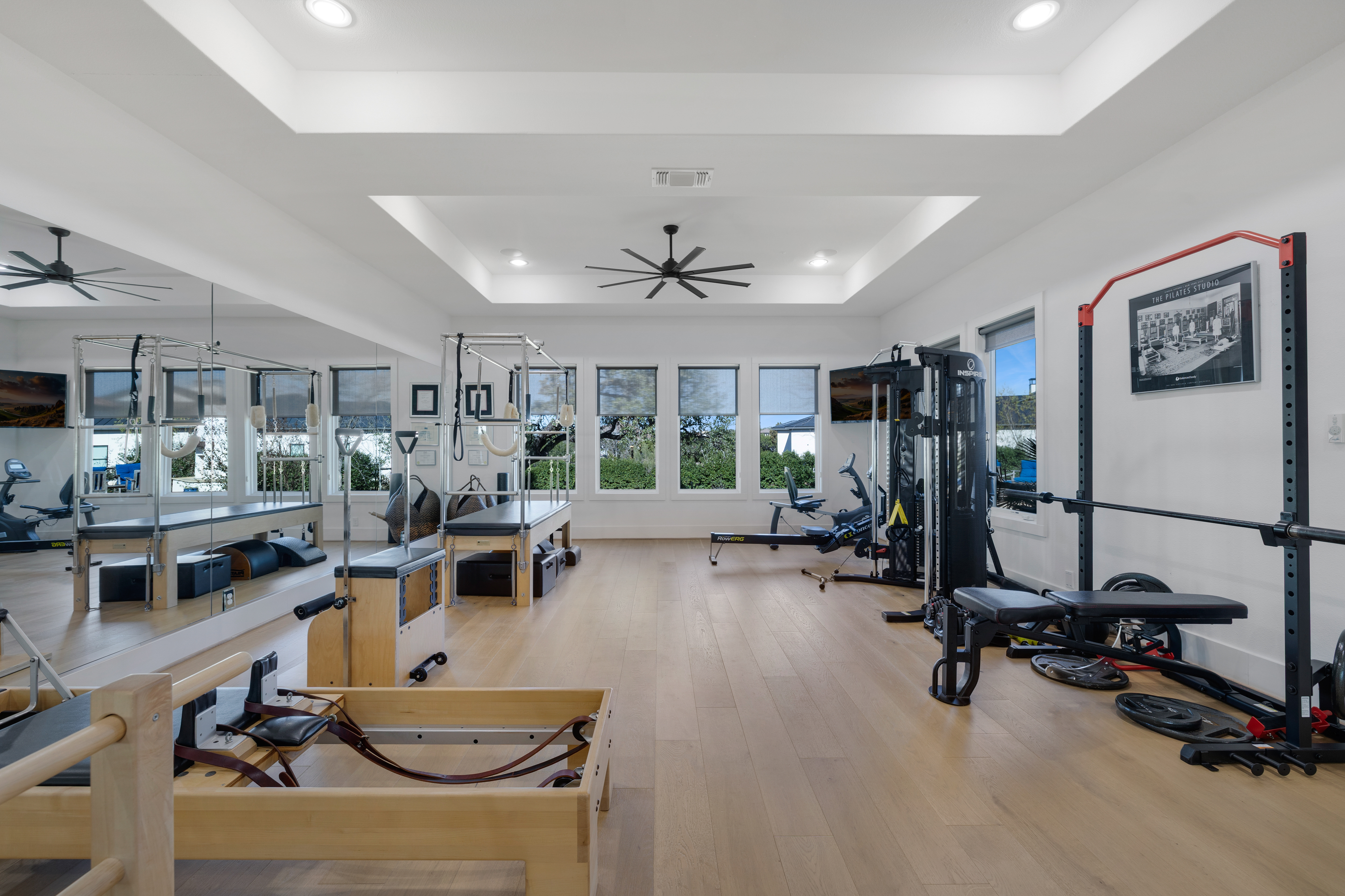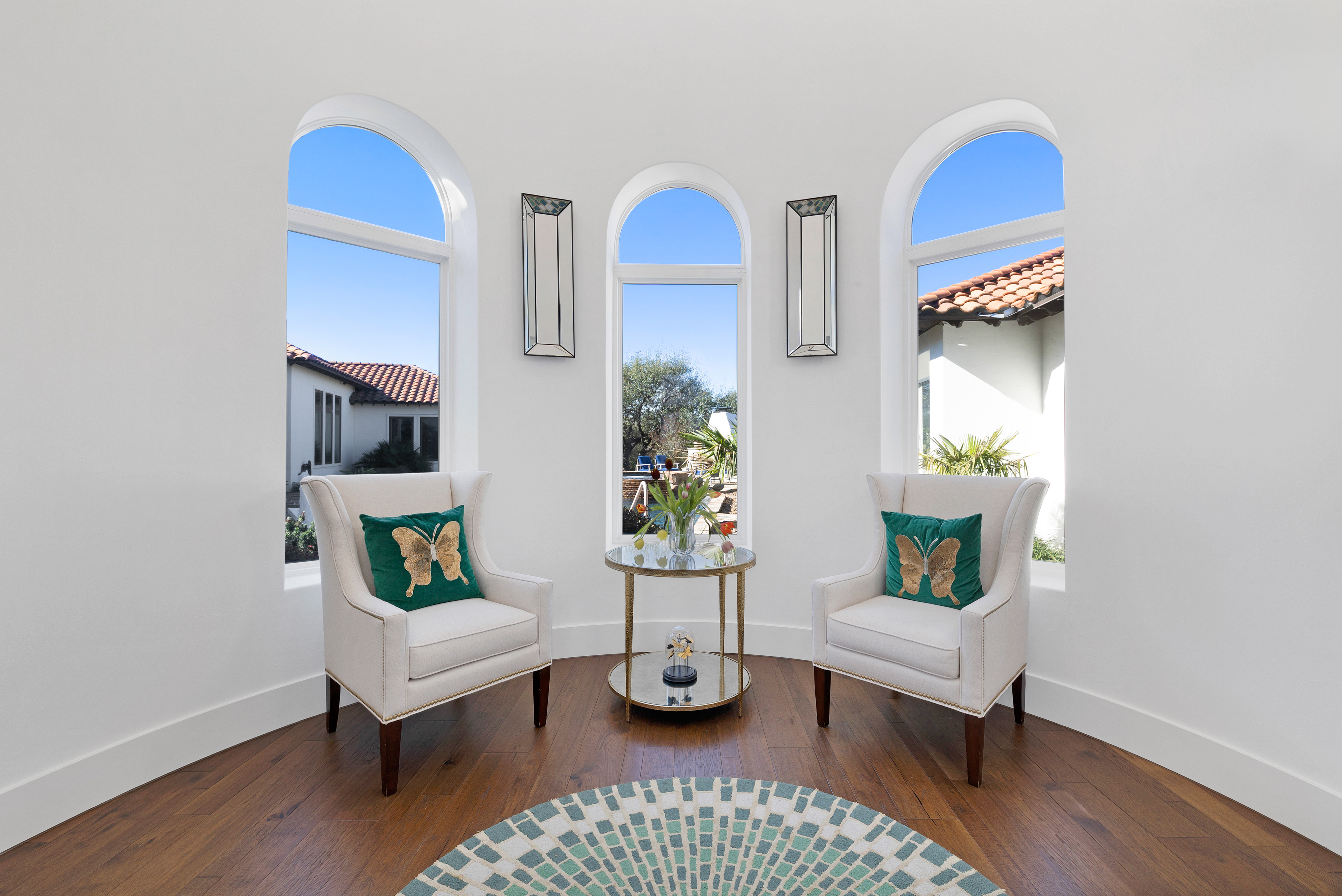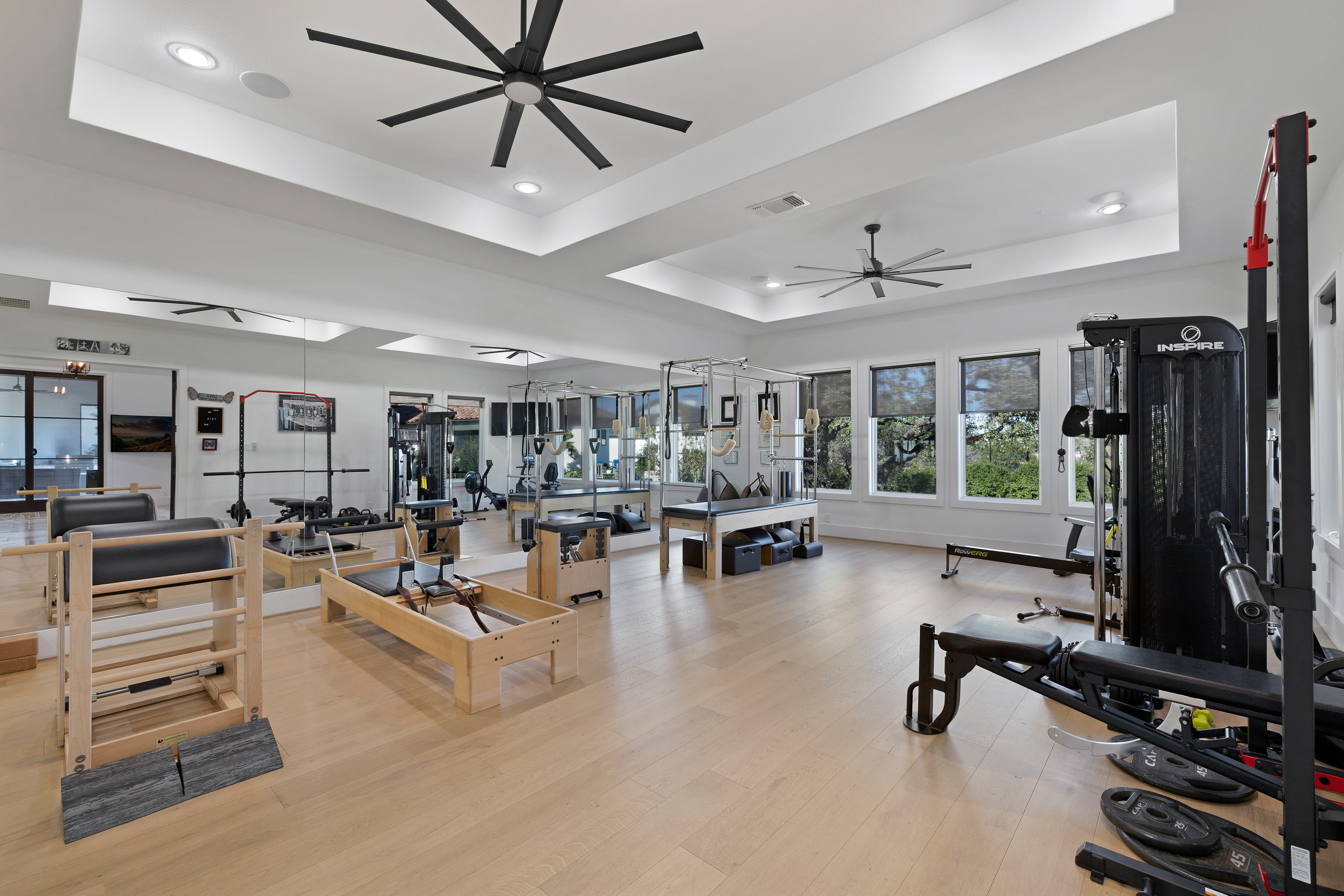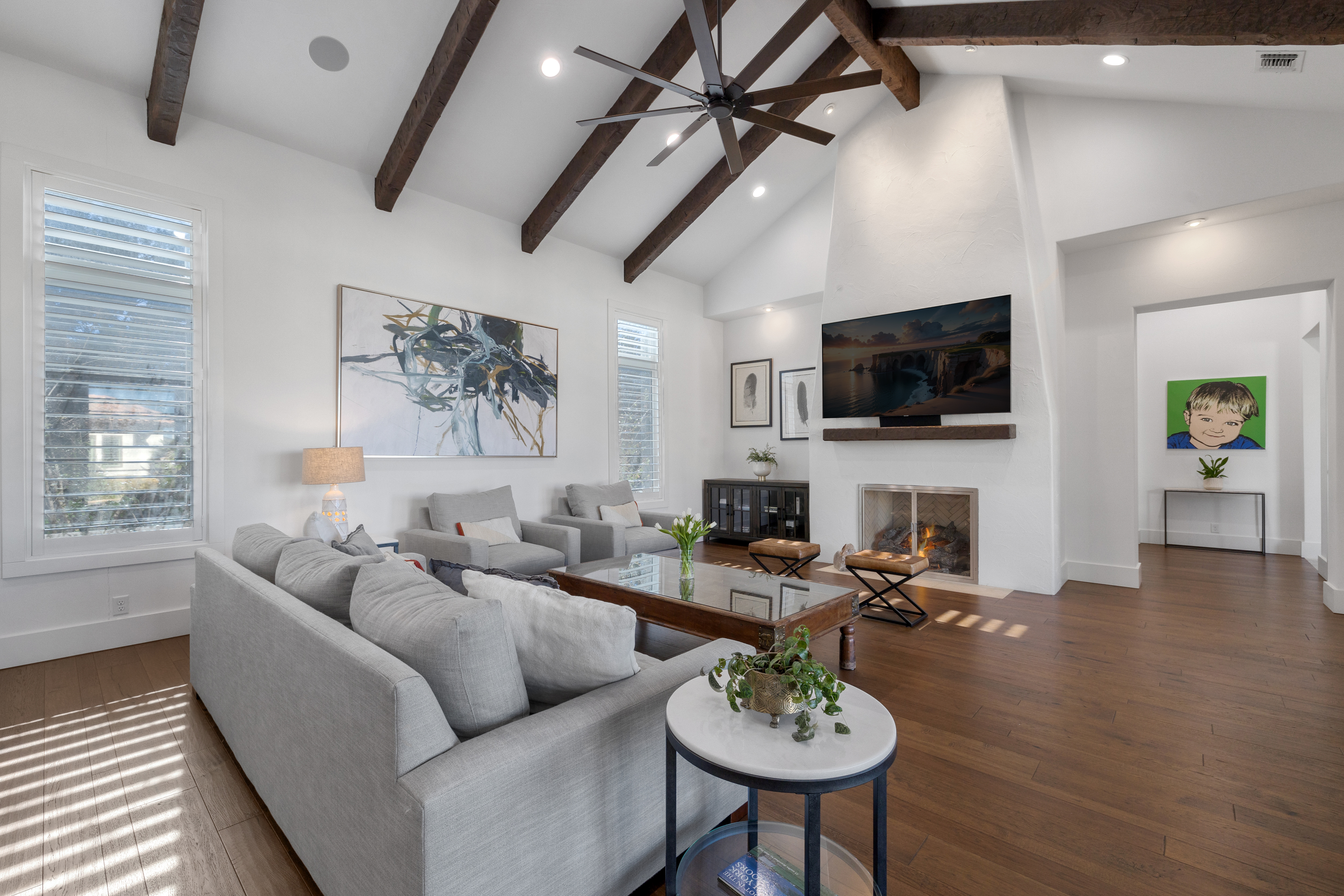 Situated within the gated enclave of The Huntington at Shavano Park, this exceptional Burdick Homes estate offers privacy, scale, and architectural refinement on 1.14 acres backing to a tranquil greenbelt setting. Thoughtfully designed for both elevated entertaining and everyday living, the residence blends timeless craftsmanship with a seamless indoor and outdoor connection. The interior is defined by generous proportions, soaring ceilings, and an effortless flow between living spaces. At the center of the home, the chef's kitchen is both striking and functional, featuring Taj Mahal quartzite countertops, professional-grade stainless steel appliances, custom cabinet-paneled refrigeration, double ovens, gas cooking, pot filler, farmhouse sink, and an oversized walk-in pantry. The kitchen opens directly to the main living area, where wood beam accents and expansive windows create warmth while framing serene views of the grounds beyond. Large sliding glass doors extend the living experience outdoors, revealing a resort-style setting anchored by a Keith Zars pool and spa. A covered patio, full summer kitchen, and outdoor fireplace create an ideal environment for both intimate gatherings and larger scale entertaining, all overlooking the natural greenbelt backdrop. The primary suite is positioned as a private retreat, offering a spa-inspired bath with an oversized walk-in shower, soaking tub, dual vanities, and a custom-designed walk-in closet. A spacious secondary suite on the main level provides flexibility for guests or multigenerational living while maintaining privacy. Additional living spaces include a secondary lounge with built-in bar and Perlick wine refrigeration, along with a dedicated pilates studio and gym overlooking the backyard. Extensive storage, a private safe room, and thoughtfully executed architectural details throughout further elevate the home's functionality and long-term livability. An exceptional offering within The Huntington at Shavano Park, where privacy, design, and setting align to create a residence of enduring quality.