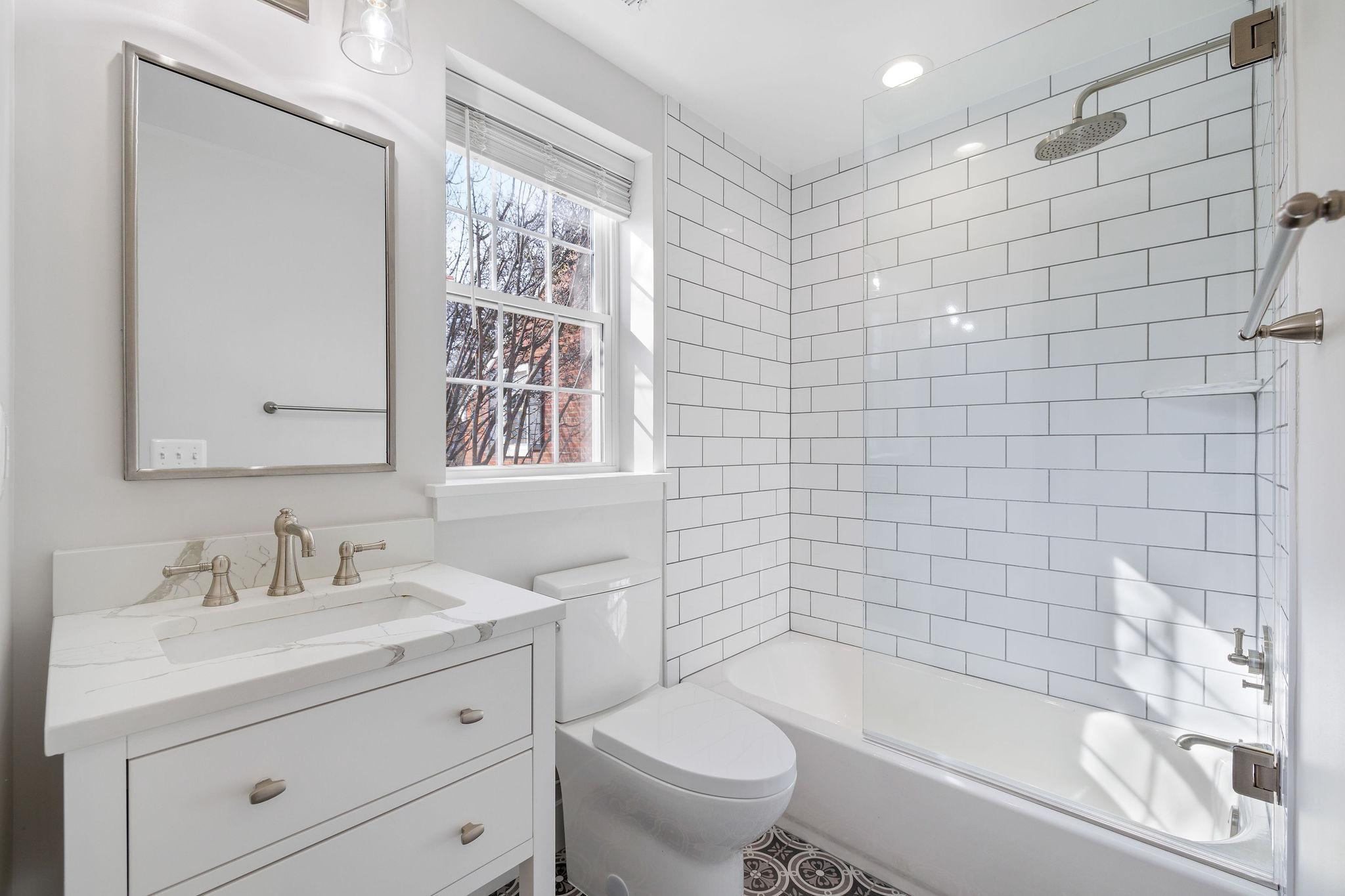 Classic Colonial meets Chic Transitional with this stylish, luxury home, tucked away in an expansive, beautifully-manicured courtyard in Fairlington Arbor. Gleaming, maple hardwood floors flow through the open-concept main levelf, under abundant natural light from the south-facing rear of the home. A modern, renovated kitchen that features white, gray-veined, quartz countertops, supported with a gray, contrasting, tile backsplash, dark wood-hued, shaker cabinets, and stainless-steel appliances. The maple floors extend to the large, lower-level bedroom, which also receives great natural light from two directions and boasts a large closet with overlapping, paneled, slider doors. Just steps away is a newly-styled bathroom with decorative, ceramic tile flooring, a stand-alone vanity with quartz countertop, and a shower tub tiled to the ceiling. A newly converted second floor features a luxury, en suite. This bedroom has two, classic dormer windows, overlooking the manicured courtyard, exposed wood beams, and a closet with organizers. No corner was cut or penny spared with the creation of the nicest bathroom in Fairlington. Deep-gray floor and wall tiles carefully contrast with the white quartz countertop, a stunning vanity, and a glass-enclosed shower with large, white tiles from floor to ceiling. A rare, third bedroom with a ceiling fan and a laundry room with a folding countertop and cabinets round out this amazing upper evel space. Amenities are plentiful in and around Fairlington Arbor with walkable pathways, scenic courtyards, a pool, sports courts, playgrounds, and the Fairlington Community Center. While this home is comfortably set in the neighborhood, it maintains all the convenience expected. Shirlington Village, the Bradlee Center, Fairlington Centre, and the new Alexandria Gateway offer fantastic restaurants, shopping, and entertainment options. For commuters, Route 7 and I-395 are immediately adjacent for travel and a neighborhood Metrobus line connects quickly with the Pentagon rail station and other parts of the DC/NoVa area. For biking, walking, and exercise options, the Fairlington Community Center and the W&OD and Four-Mile Run trails are nearby.