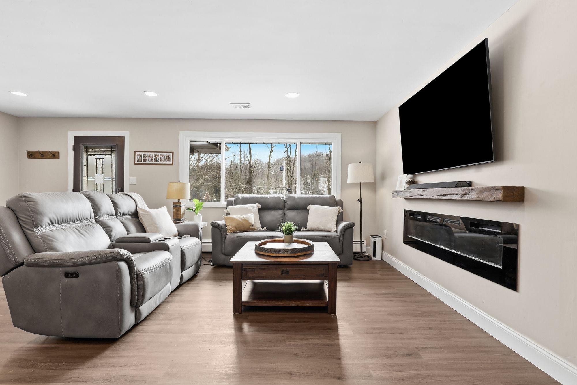 Welcome to this recently updated brick ranch on a corner lot in Wexford. This light-filled home offers modern finishes throughout. The main floor features new flooring, a bright living space, and a beautifully renovated kitchen with white cabinetry, granite countertops, stainless steel appliances, tile backsplash, and a large center island with seating that opens to the dining area. The main level includes three comfortable bedrooms and a stylishly updated full bath with a double vanity and marble tile shower. A convenient drop-zone/mudroom with built-ins and a dedicated laundry area adds everyday functionality and connects to the attached two-car garage. The finished lower level expands the living space with a large game room, a fourth bedroom, and a second full bath with a walk-in shower—ideal for guests, a home office, or flexible living arrangements. Located in the highly regarded North Allegheny School District, this home offers a prime location just minutes from Route 19, I-79, shopping, dining, and everyday conveniences. A move-in-ready opportunity in a highly desirable area.