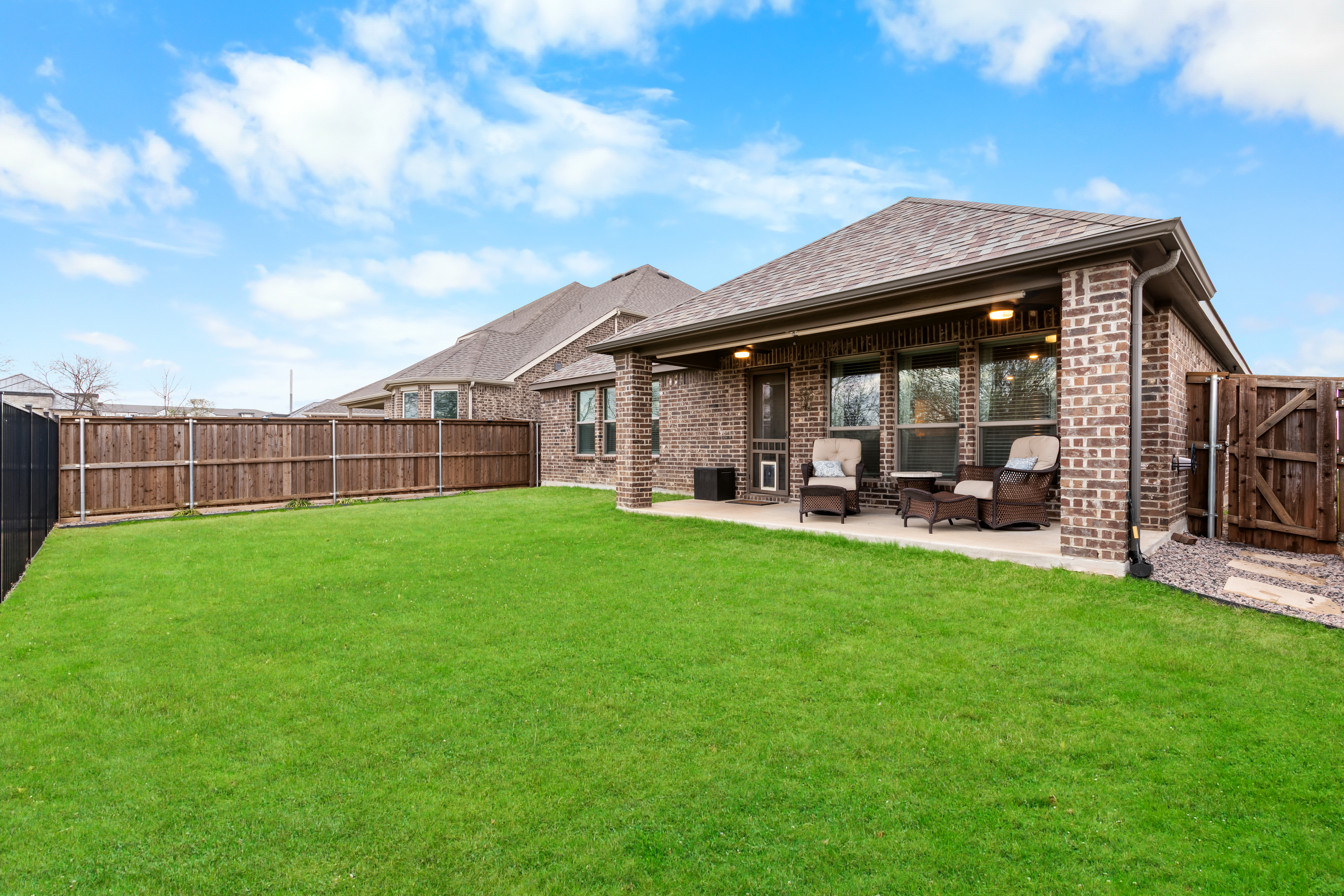 Welcome to 3820 Horseshoe Trail, a beautifully maintained single-story home built in 2020 offering the space, layout, and efficiency today’s buyers are searching for in Celina. With 4 bedrooms, 2 baths, and 2,174 square feet, the open-concept floor plan creates a natural flow between the living, dining, and kitchen areas—perfect for both everyday living and entertaining. The kitchen features gas cooking, generous counter space, and a large island that keeps everyone connected at the heart of the home.Enjoy added privacy with a greenbelt and creek backdrop, while the covered patio and fenced backyard provide the ideal setting for relaxing evenings or outdoor gatherings.Located within Celina ISD and in a community with pool, parks, and walking trails, this home combines thoughtful design with the lifestyle that makes Celina one of North Texas’ fastest-growing areas.