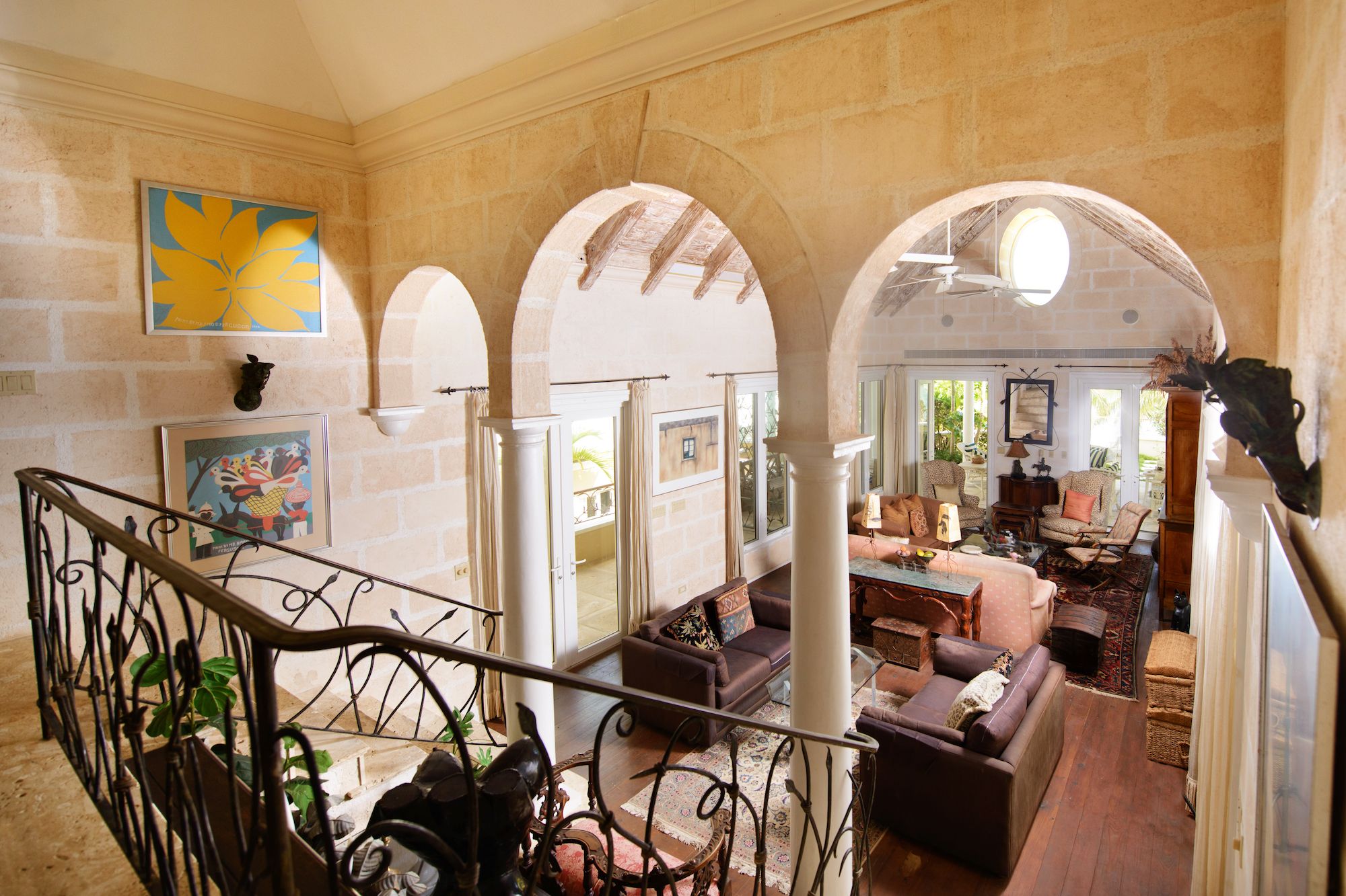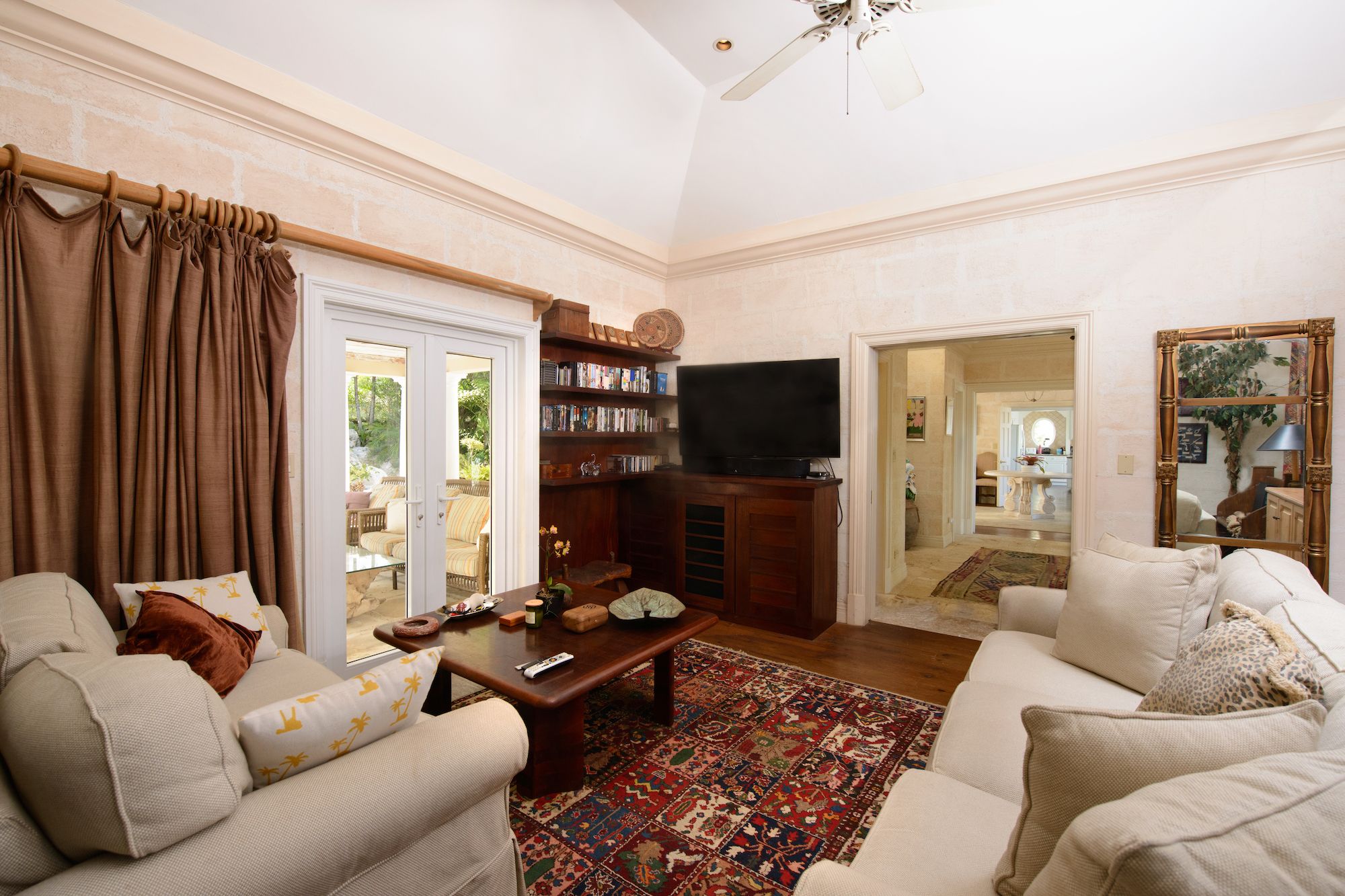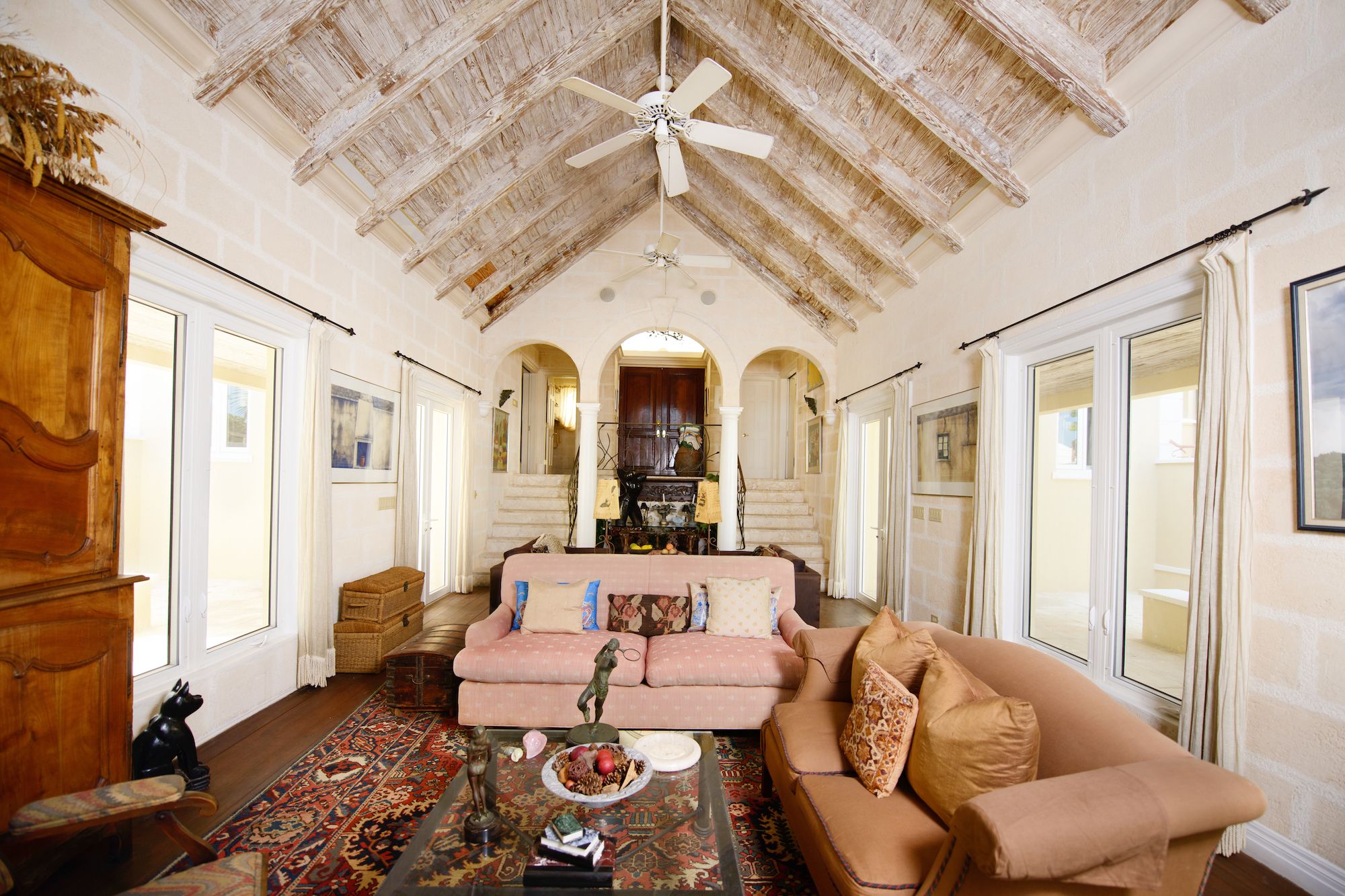 This rare beachfront rental is tucked along a private gated road in prestigious Old Fort Point, set on just under an acre of prime coastal land. Offering 5,000 square feet of refined living space, the residence features four bedrooms, five bathrooms, and expansive balcony seating areas on both sides of the home, creating an effortless connection to the surrounding sea and gardens.Spacious and inviting, the interiors are designed for relaxed island living while embracing the elegance and privacy discerning tenants expect.Signature Features
