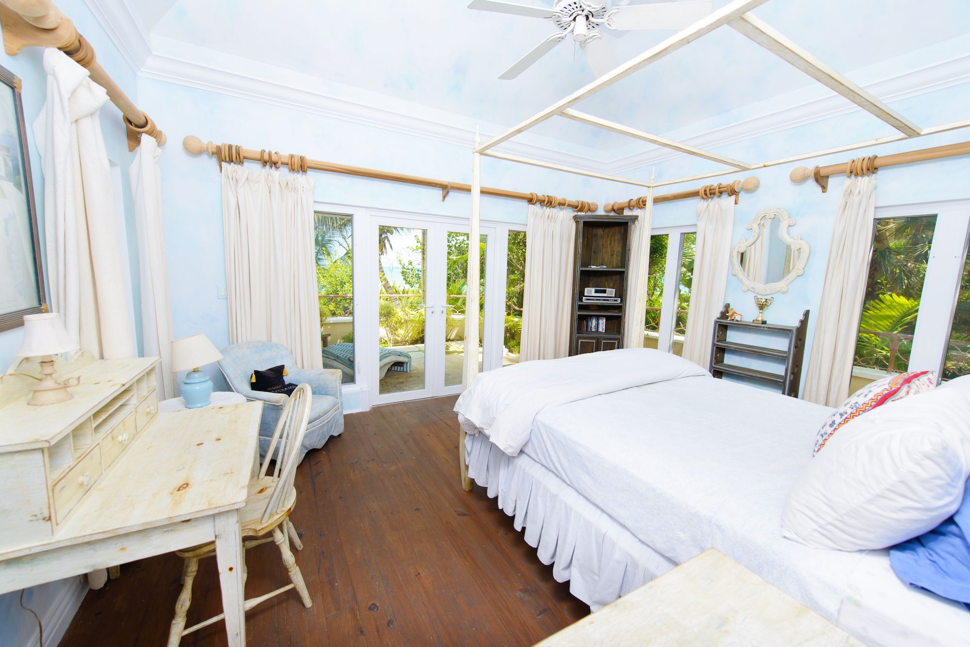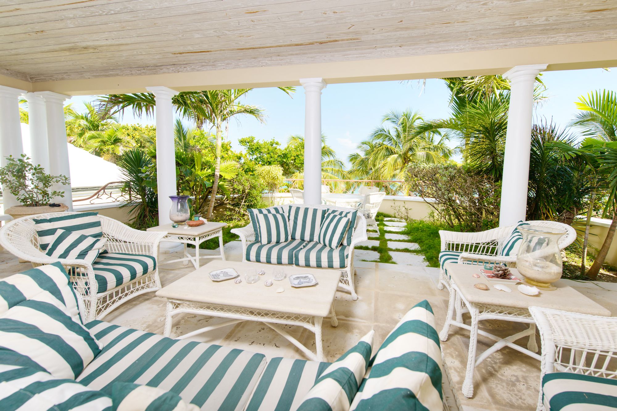 Turnkey rental ideal for families and entertainingMain Living AreasThe main floor unfolds with an impressive reception room that sets a gracious tone upon entry. Designed for both comfort and entertaining, the space flows seamlessly into the dining room and living room, creating an open and cohesive environment for gatherings of any scale.The well-equipped kitchen is thoughtfully positioned within this layout, allowing effortless interaction between culinary preparation and social engagement. Generous proportions and fluid connectivity define the heart of the home, where indoor living extends naturally toward the terraces and ocean beyond.Bedrooms & Private RetreatsAll four bedrooms are appointed with en-suite bathrooms, offering privacy and comfort for residents and guests alike. Each suite is generously scaled, creating tranquil personal retreats within the home.The master suite is a true highlight, capturing stunning ocean views and opening onto a large private balcony. A spacious walk-in closet enhances functionality, while the spa-inspired bathroom provides a serene setting for relaxation, designed to complement the coastal surroundings.Outdoor Living & Beachfront SettingGlass doors throughout the home open to expansive covered terraces that invite year-round outdoor living. These shaded spaces overlook lush, manicured gardens that gently lead to a pristine white sandy beach, offering direct access to the sea.At the front balcony, an expansive pool and hot tub create a private oasis ideal for both quiet mornings and sunset gatherings. Elevated to maximize views and breezes, this outdoor setting enhances the home’s effortless blend of comfort and coastal sophistication.Perfectly suited as a turnkey rental, this Old Fort Point beachfront residence offers privacy, scale, and direct beach access in one of Nassau’s most desirable enclaves. Designed for family living and refined entertaining alike, it presents a rare opportunity to enjoy gracious island living in an exceptional oceanfront setting. Available for rent in US$.