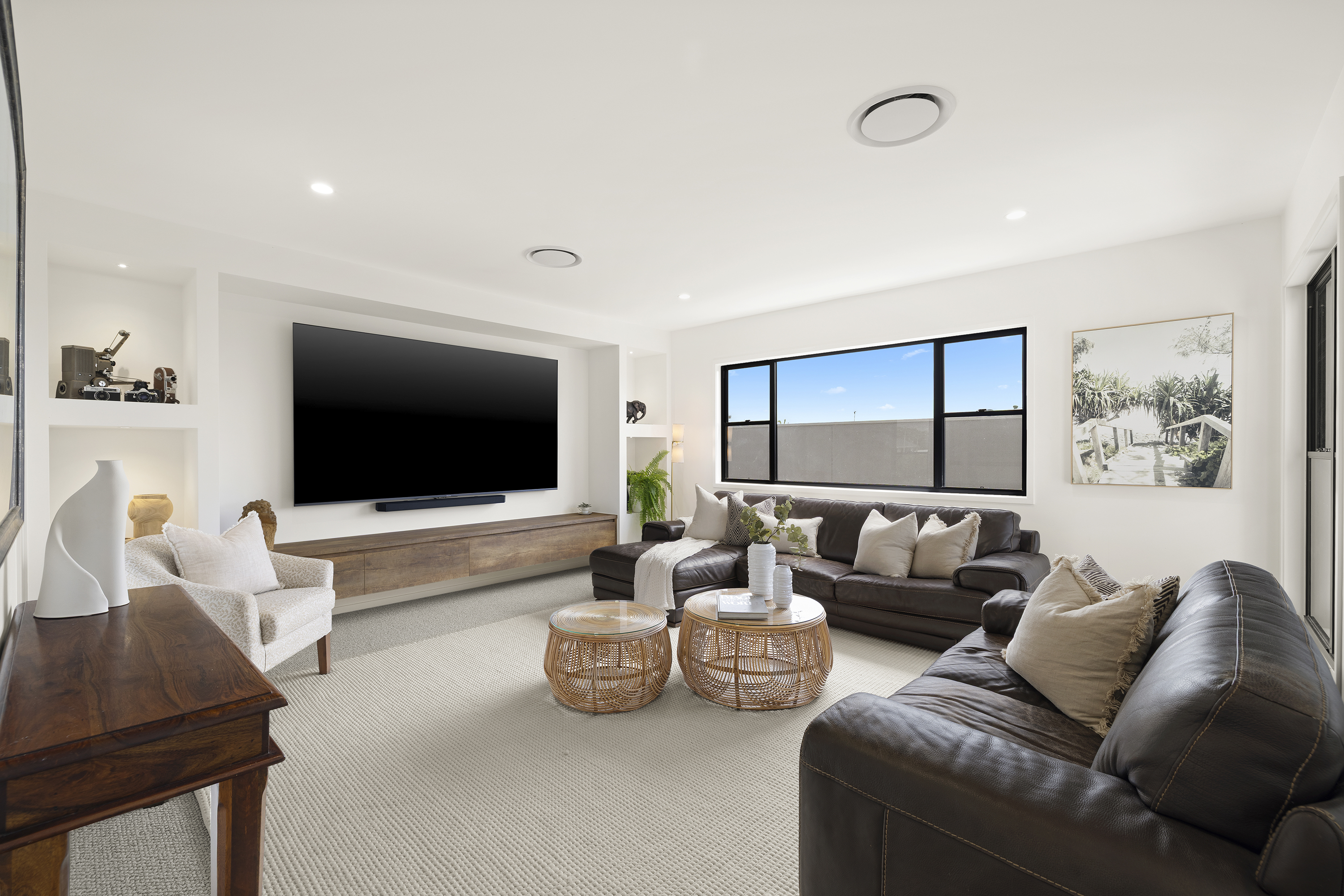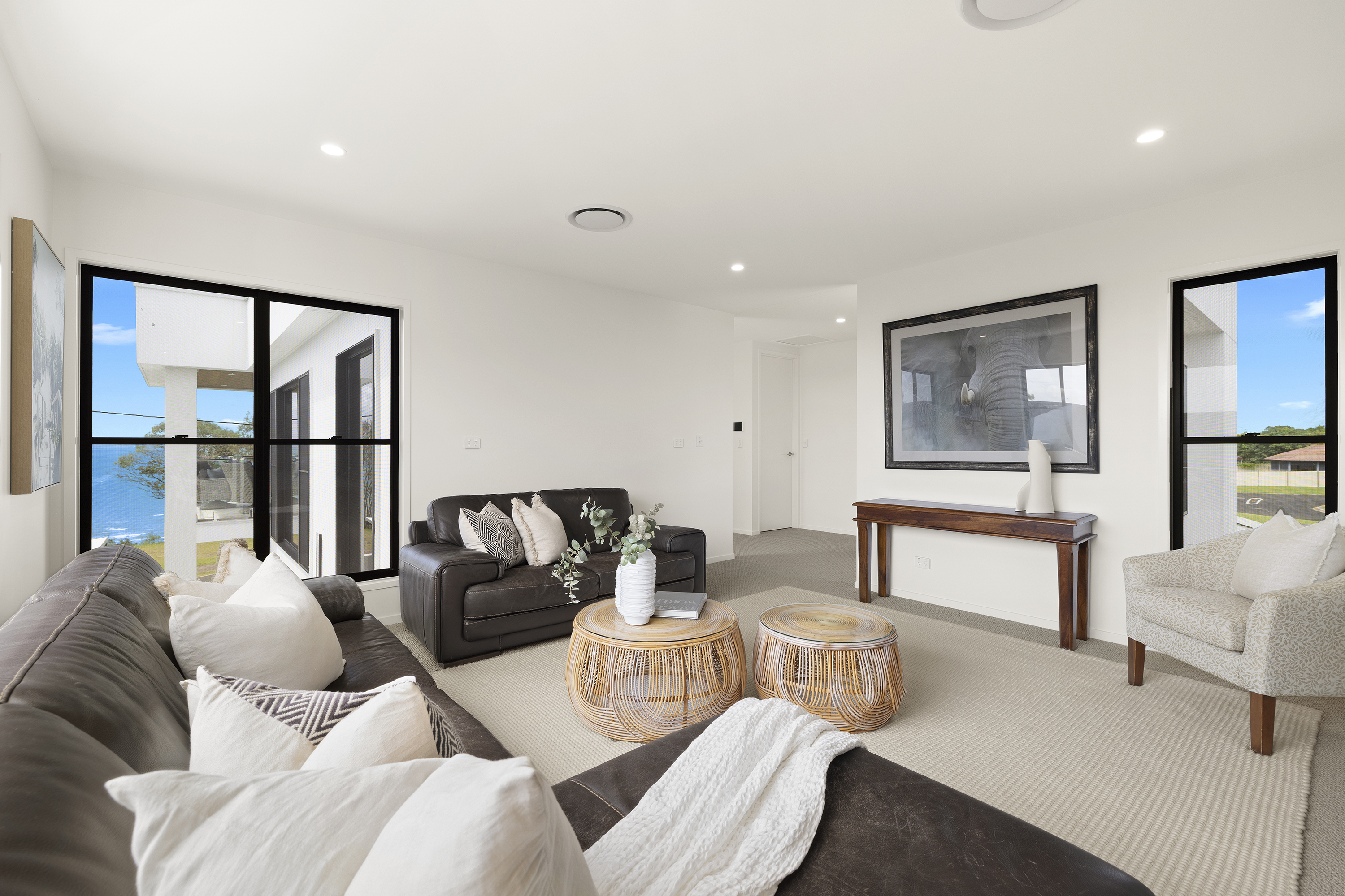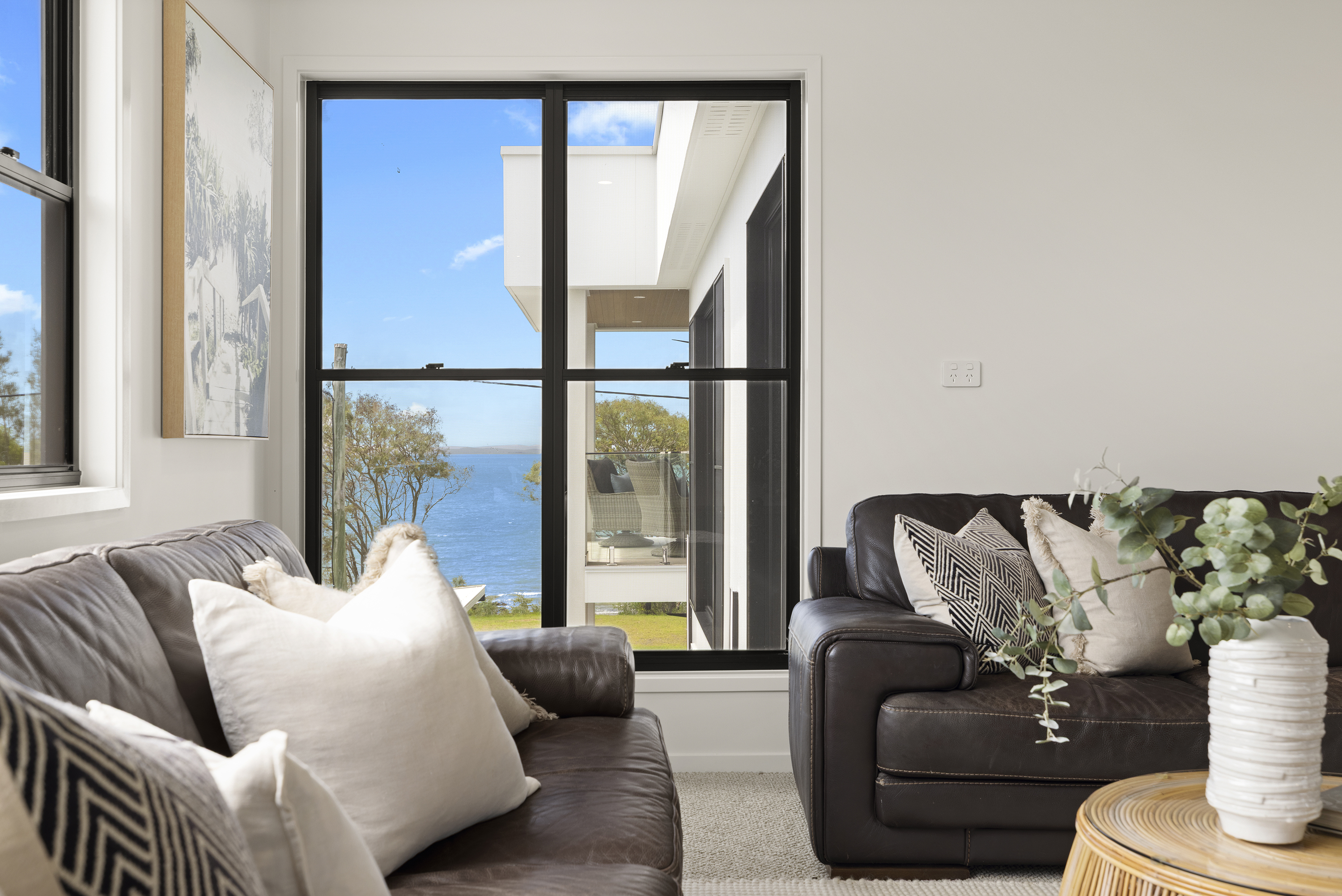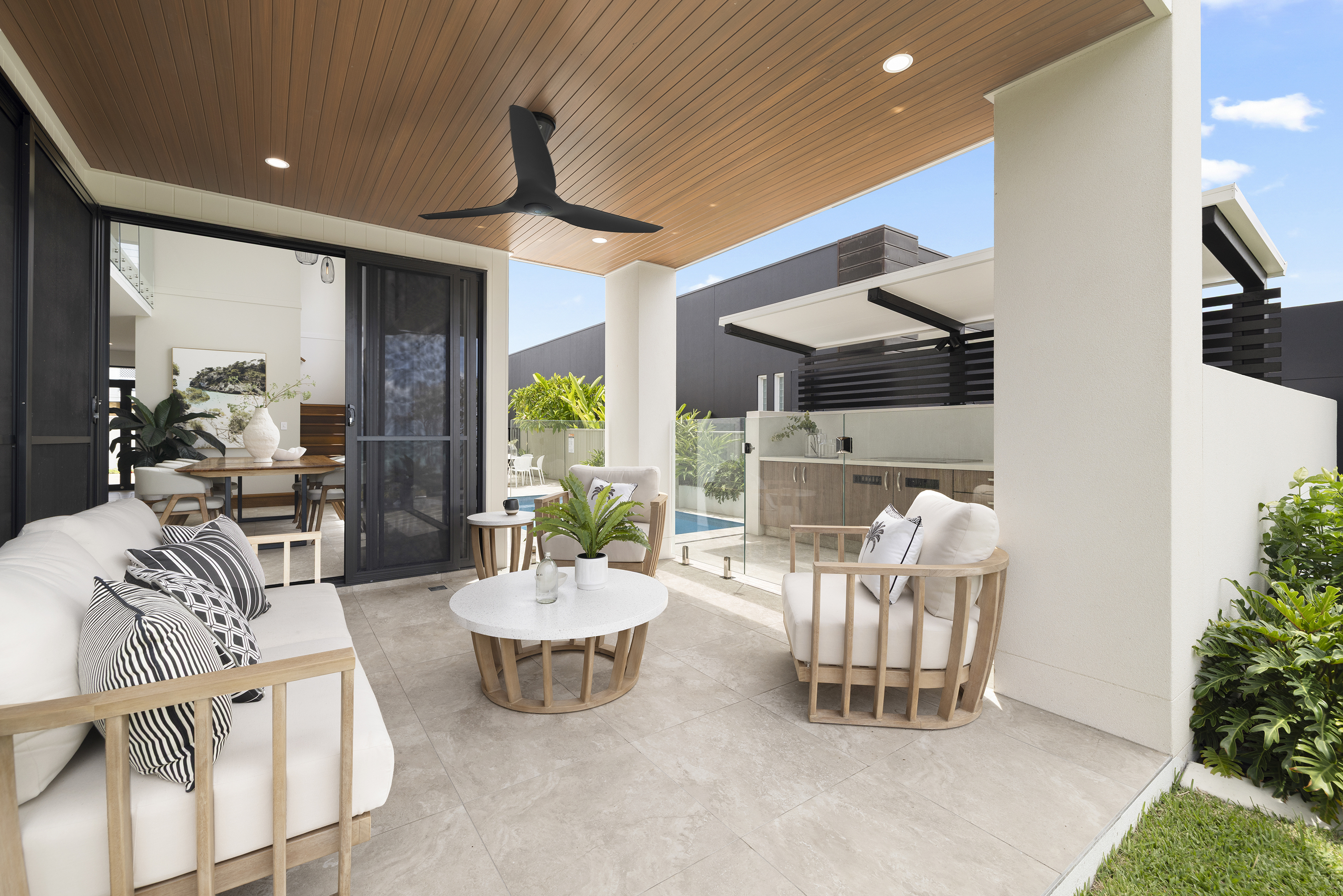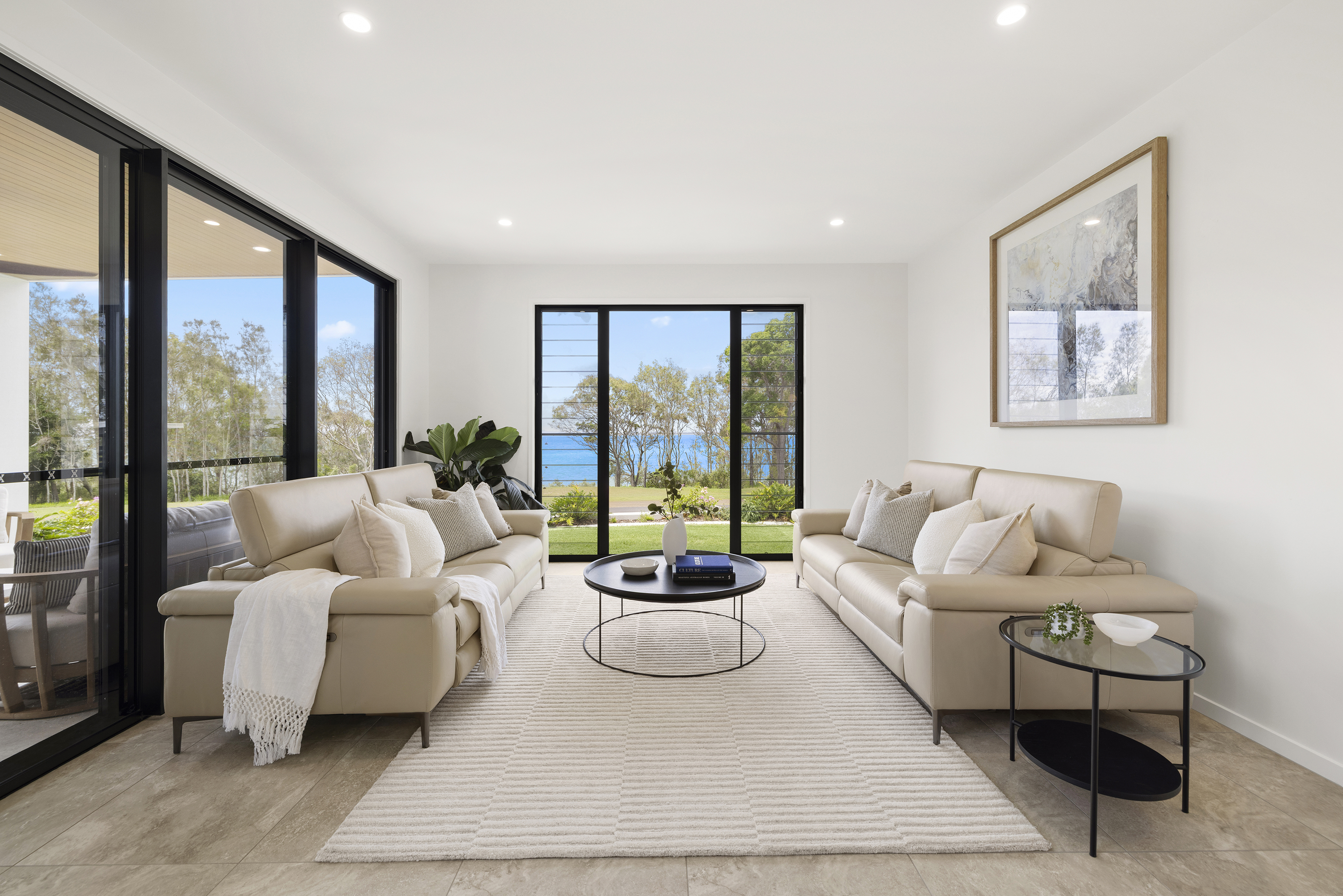 Commanding one of the most sought-after waterfront locations on the Hervey Bay Esplanade, this newly completed executive residence offers exceptional luxury and liveability. Built by master builder Aspiring Homes, the dual-level home with an internal lift sits on a prized 613 sqm waterfront block, providing panoramic views across the turquoise waters of Hervey Bay to World Heritage–listed K'gari. With three ensuite bedrooms, a heated swimming pool, a walk-in wine cellar, a media room, and multiple living areas, every detail and finish has been thoughtfully considered. Step inside, and the bay views unfold through double-height glazing, filling the ground-floor living spaces with natural light and inviting cool bay breezes. The open-plan kitchen, dining, and living area centres on a Black-Fusion granite island that serves as both a practical serving space and a sculptural piece of art. Beyond the main kitchen, a dedicated skylit work kitchen with integrated appliances, double refrigerators, and a double sink enables effortless entertaining without disrupting the pristine aesthetics. A bespoke solid timber staircase with a handcrafted handrail ascends as an architectural statement, leading to the upper level. For wine enthusiasts, a walk-in cellar with glass walls showcases the collection and elevates the home's entertainment appeal. Outside, the heated swimming pool with a cascading water feature is bordered by lush tropical plants and natural stone paving, with an adjacent alfresco kitchen equipped with a built-in barbecue and cabinetry. Glass pool fencing preserves the uninterrupted view. At the same time, the covered ground-level terrace extends the entertainment space, creating a sheltered spot to watch the sunset over the bay or spot seasonal migrating humpback whales. Each of the three bedrooms has an ensuite, providing resort-style comfort for residents and guests alike. One spacious ground-floor bedroom with an ensuite offers both accessibility and privacy, making it ideal for a family home or as a self-contained guest retreat. Upstairs, two ensuite bedrooms enjoy uninterrupted bay views, serviced by a kitchenette with sink and under-bench refrigerator, so the upper level functions as a self-sufficient private wing. A dedicated study nook with a built-in desk and cabinetry provides an efficient home-office environment with a leafy outlook. The upper level also includes a media room and a second covered balcony with a timber-lined ceiling and a ceiling fan, capturing elevated bayfront views of the Coral Sea and toward K'gari. Select amenities • Internal lift connecting both levels • 10kW solar panel system • Fully automated irrigation for gardens and lawns • Two-car garage with motorised door and remote control • Fully gated and fenced • Separate laundry with integrated appliances and an outdoor drying area • Ducted air conditioning throughout • Operable windows to regulate sea breezes • Built-in wardrobes and premium cabinetry throughout • Large-format floor tiles and plush carpet in bedrooms