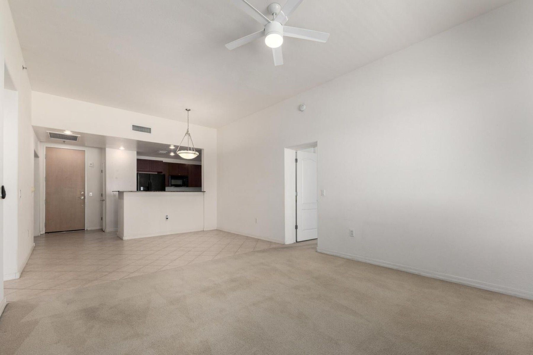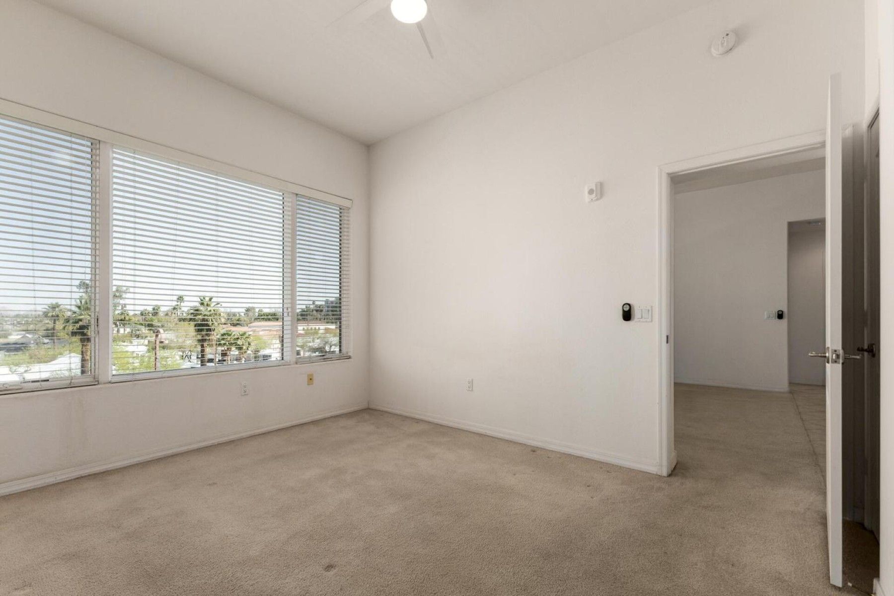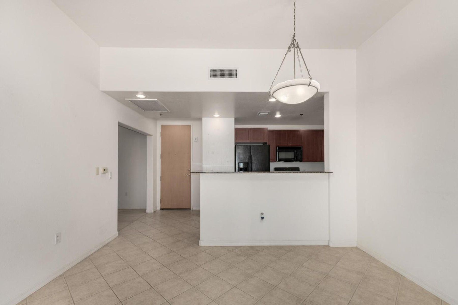 Urban living at its finest. This 4th-floor 2-bedroom, 2-bath condo at Tapestry on Central is filled with natural light, with bedrooms offering city and some mountain views, and one bedroom opening to the balcony. The split floor plan provides privacy, and a den off the entry offers space for a home office. The living area features a gas fireplace and opens to the same balcony. The kitchen has ample cabinet storage, with a laundry room and washer and dryer just off it. Residents enjoy heated pool, spa, sauna, fitness center, and two assigned spaces in the gated underground garage. Enjoy the vibrant energy and convenience of city living, steps from Midtown and Downtown dining, arts, and entertainment.