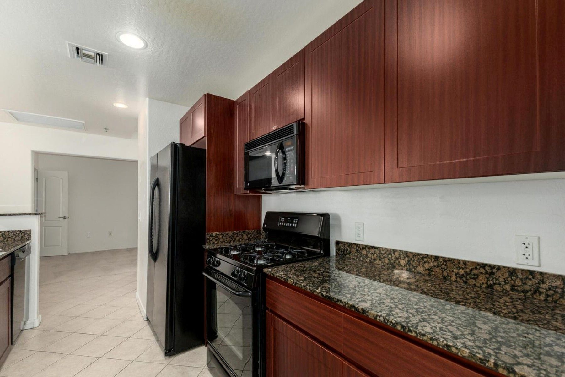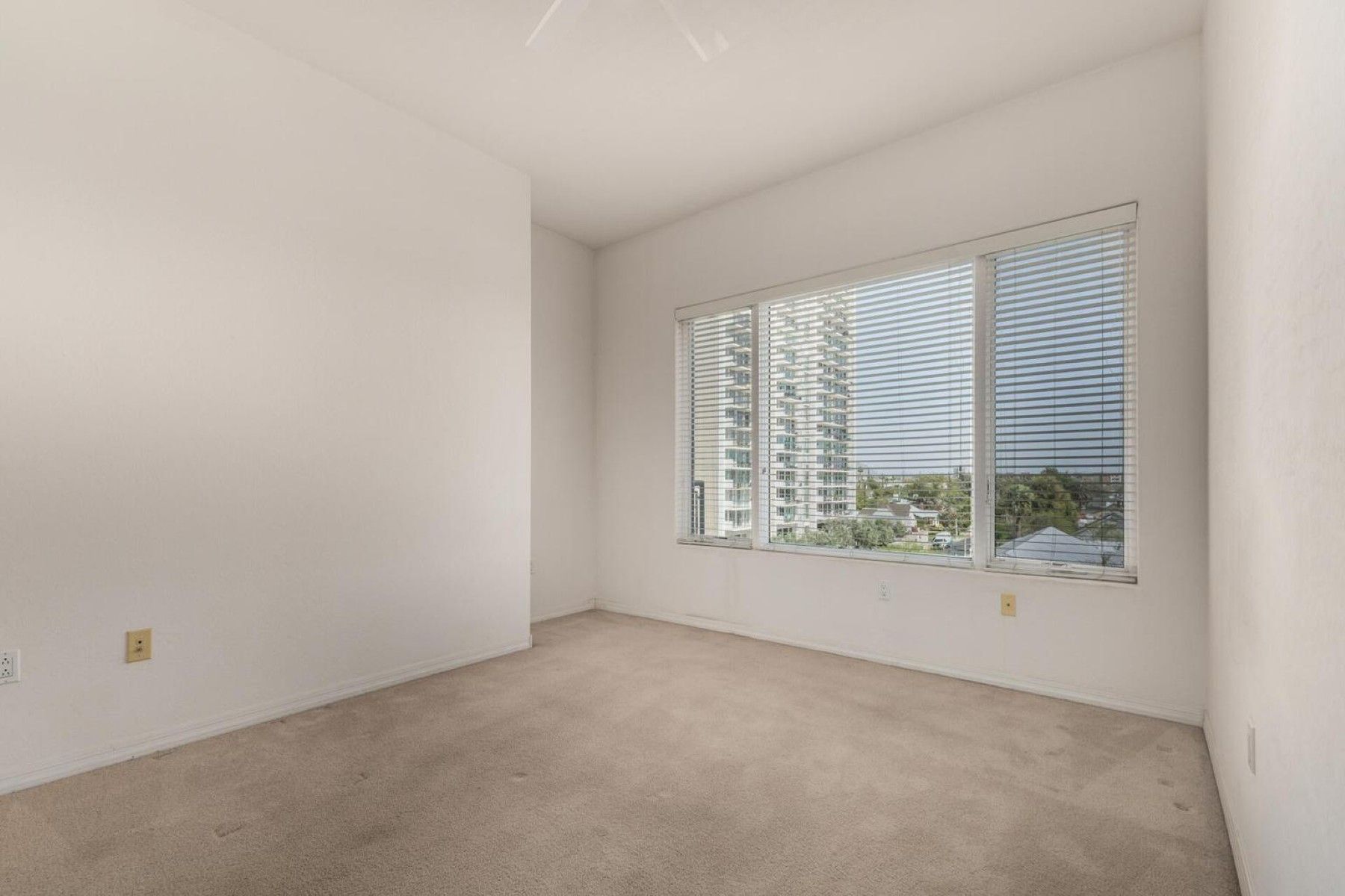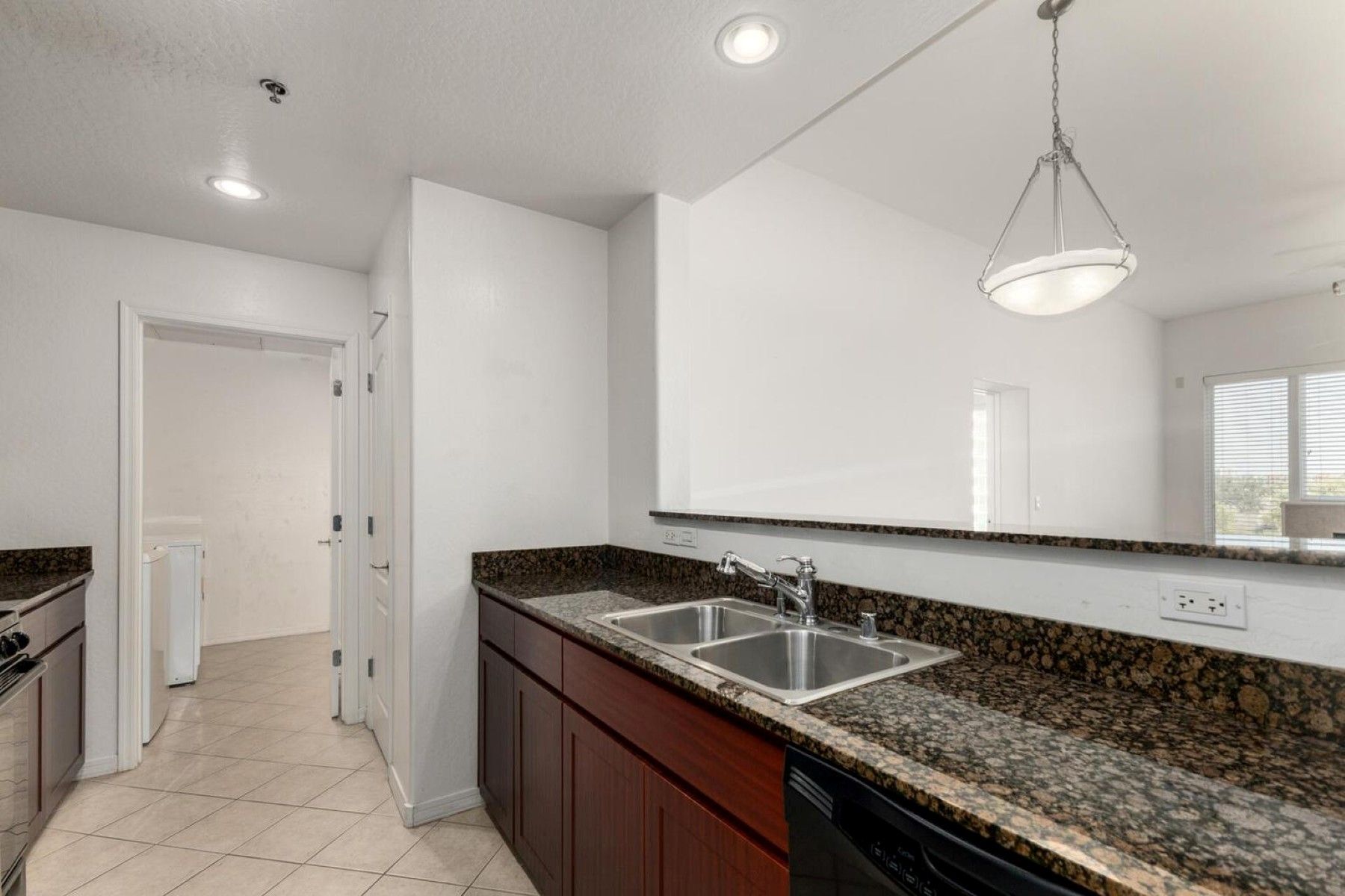 Urban living at its finest. This 4th-floor 2-bedroom, 2-bath condo at Tapestry on Central is filled with natural light, with bedrooms offering city and some mountain views, and one bedroom opening to the balcony. The split floor plan provides privacy, and a den off the entry offers space for a home office. The living area features a gas fireplace and opens to the same balcony. The kitchen has ample cabinet storage, with a laundry room and washer and dryer just off it. Residents enjoy heated pool, spa, sauna, fitness center, and two assigned spaces in the gated underground garage. Enjoy the vibrant energy and convenience of city living, steps from Midtown and Downtown dining, arts, and entertainment.