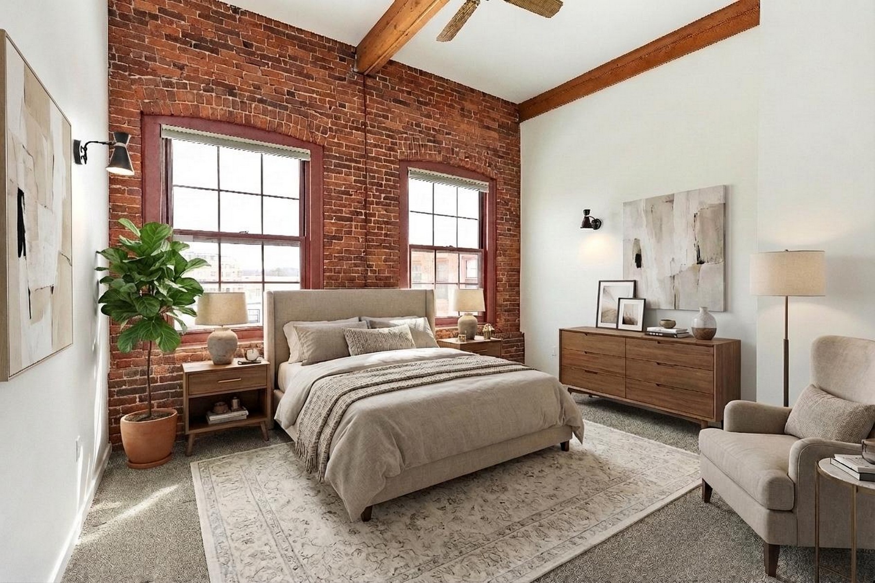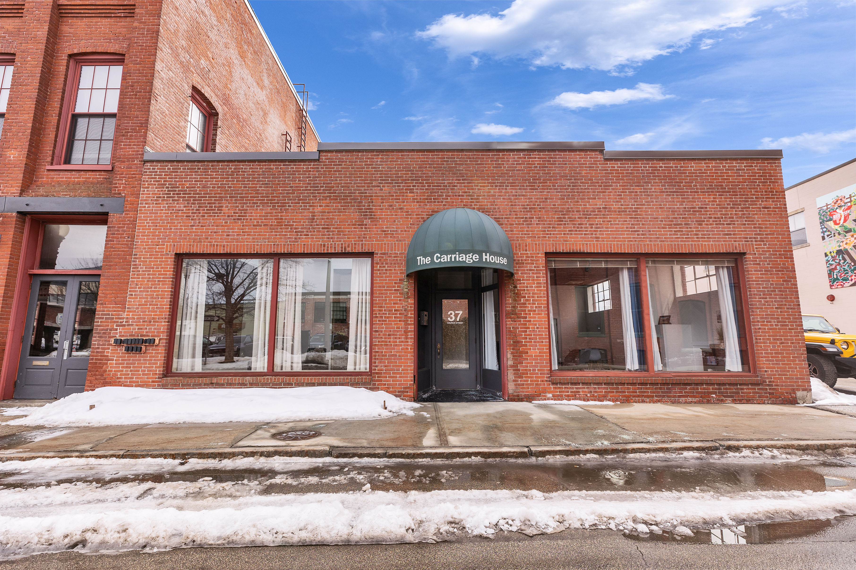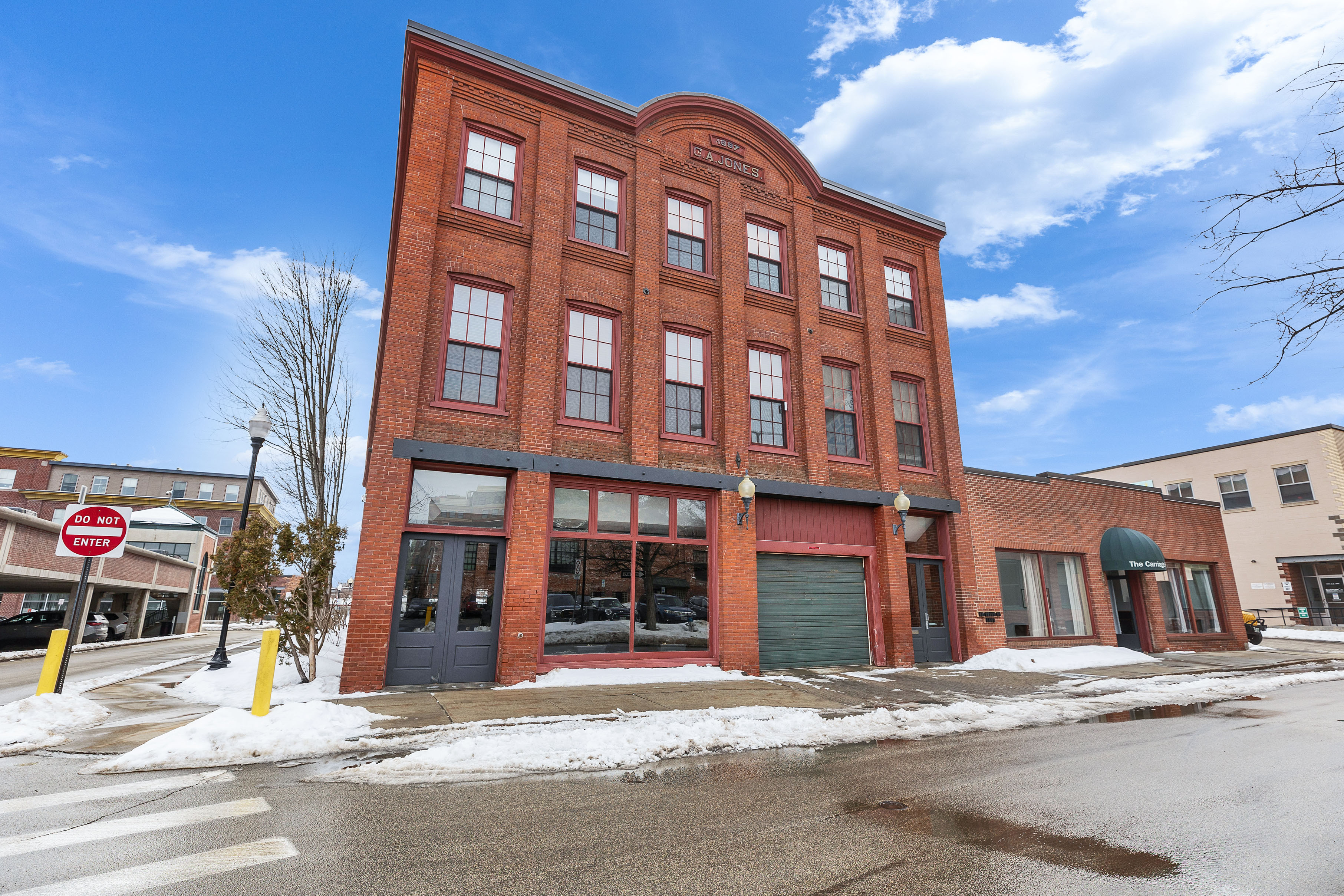 A sophisticated loft-style condominium in the historic Carriage House, offering refined downtown living in the heart of Keene. This 2-bedroom, 2.5-bath residence features exposed brick walls, timber beams, and soaring ceilings that reflect the industrial heritage of the building. The crisp white and wood kitchen offers a clean canvas for personal design. The open dining and living area features hardwood floors, a built-in beverage station, and a mirrored accent wall that enhances light and space. Generous south-facing windows with custom shades offer city views. Upstairs, the spacious primary suite includes double closets, built-ins, and an en-suite bath. A guest bedroom and hallway bath provide comfortable accommodations for visitors or a flexible space for a home office. Originally constructed in 1897 by Charles Jones as a facility for sleigh, carriage, and bicycle manufacturing, the building has been thoughtfully transformed into a community of 14 residences. Amenities include elevator access, central air conditioning, a rooftop deck with BBQ and scenic views, an exercise room, recreation and gathering space, private storage, secure entry, and two deeded parking spaces in the attached garage. The association has recently completed significant improvements, including two new roofs and upgrades to the parking area. From this central location, enjoy easy access to the restaurants, caf?s, shops, and cultural venues surrounding Central Square, along with Keene State College, the Cheshire Rail Trail, and the locally loved Monadnock Food Co-op, all just moments from your door. Do not miss the opportunity to claim this gem. Arrange a showing and envision it as your own!