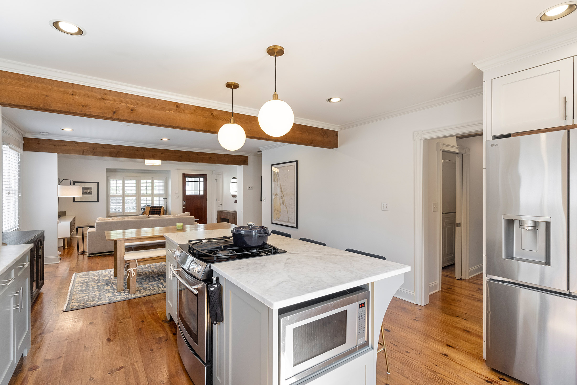 Located in the sought-after Peachtree Hills neighborhood, this charming craftsman sits on a beautiful elevated lot with a dreamy front porch that welcomes you home. Inside, an open-concept layout has been thoughtfully updated and designed for comfortable living and entertaining. The family room flows seamlessly into the dining area and a stunning kitchen featuring stainless steel appliances, a large island, ample storage, stone countertops, and beautiful fixtures throughout. Two generously sized secondary bedrooms share an updated hall bathroom, while the primary suite offers a spacious retreat with a large bathroom complete with dual vanities, a separate tub and shower, and a walk-in closet. Laundry is conveniently located on the main level. The terrace level includes a versatile flex space perfect for a home gym, office, or additional living area. Outside, enjoy a large back deck overlooking a private, fenced yard with a fire pit area—ideal for entertaining or relaxing evenings at home. A perfect Peachtree Hills bungalow just moments from neighborhood favorites like Treehouse Restaurant and Pub, KR SteakBar, and Verde Taqueria.