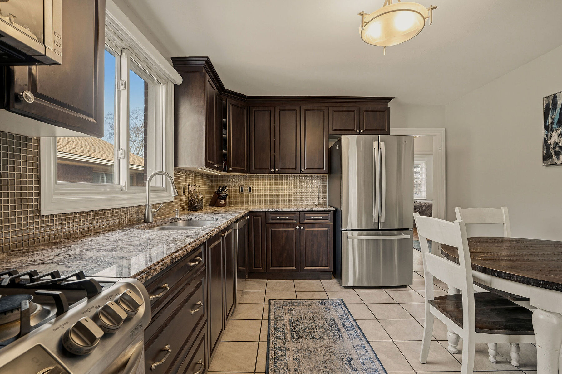 Welcome to this beautifully maintained all-brick family home in the highly desirable University Gardens community. Built in the 1950s and offering 1,564 square feet above grade, this charming residence combines timeless character with thoughtful modern updates. Featuring 4 spacious bedrooms and 2 bathrooms, the home offers a classic layout ideal for family living. The updated kitchen is both stylish and functional, complete with granite countertops, undermount sink, glass tile backsplash, upgraded lighting, and gas stove—perfect for everyday living and entertaining. The fully finished basement (2021) adds valuable living space with a cozy electric fireplace and private den, ideal for a home office, media room, or retreat. Step outside to a private, shaded backyard featuring a patio, natural gas barbecue hookup, and attached 3 season sunroom (2022), creating the perfect setting for relaxing or hosting family and friends. Recently added deck, stone patio, and above ground pool. Move-in ready and located in a sought-after neighborhood, this is a wonderful opportunity to own a warm, inviting home designed for comfortable family living and memorable gatherings. RSA.