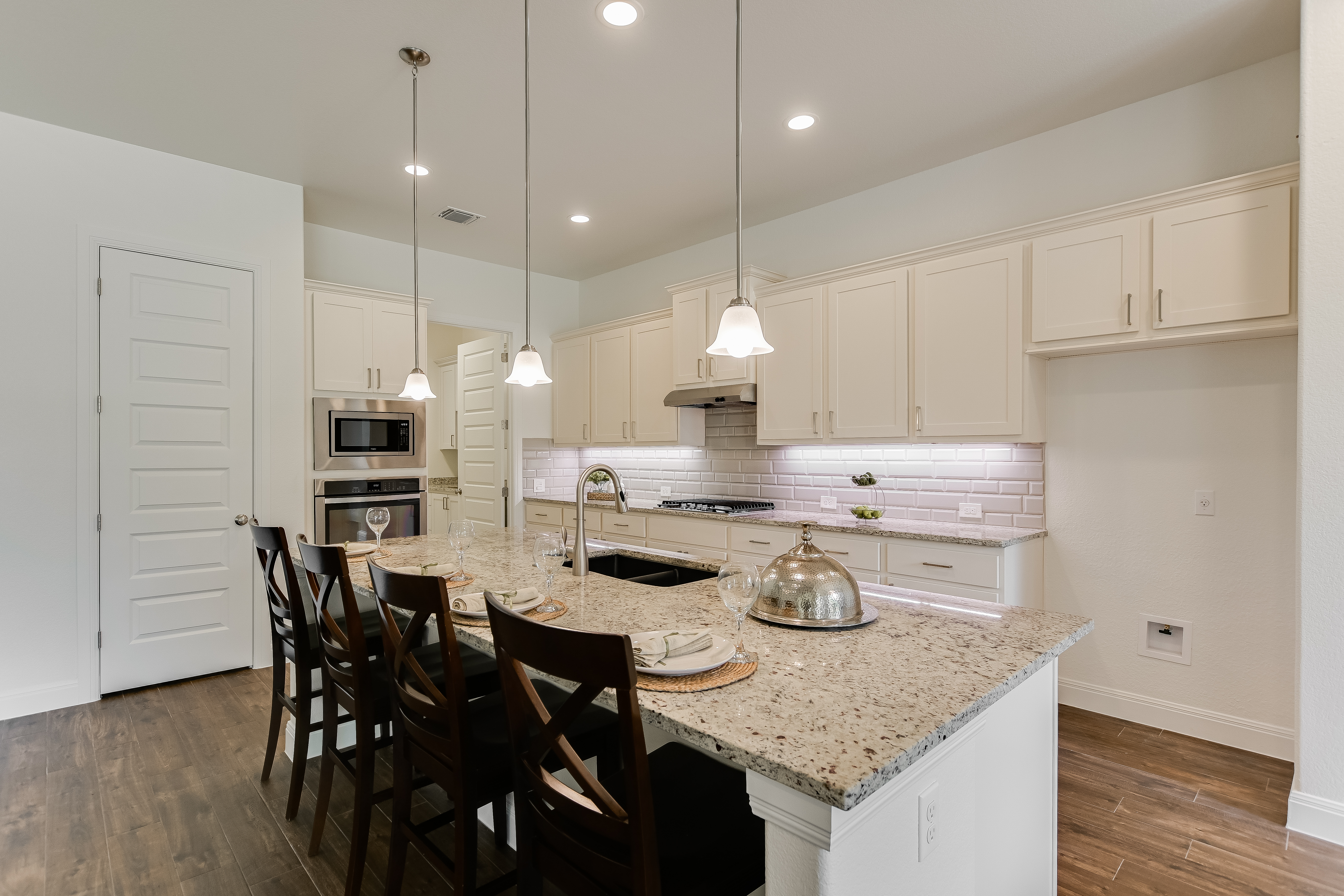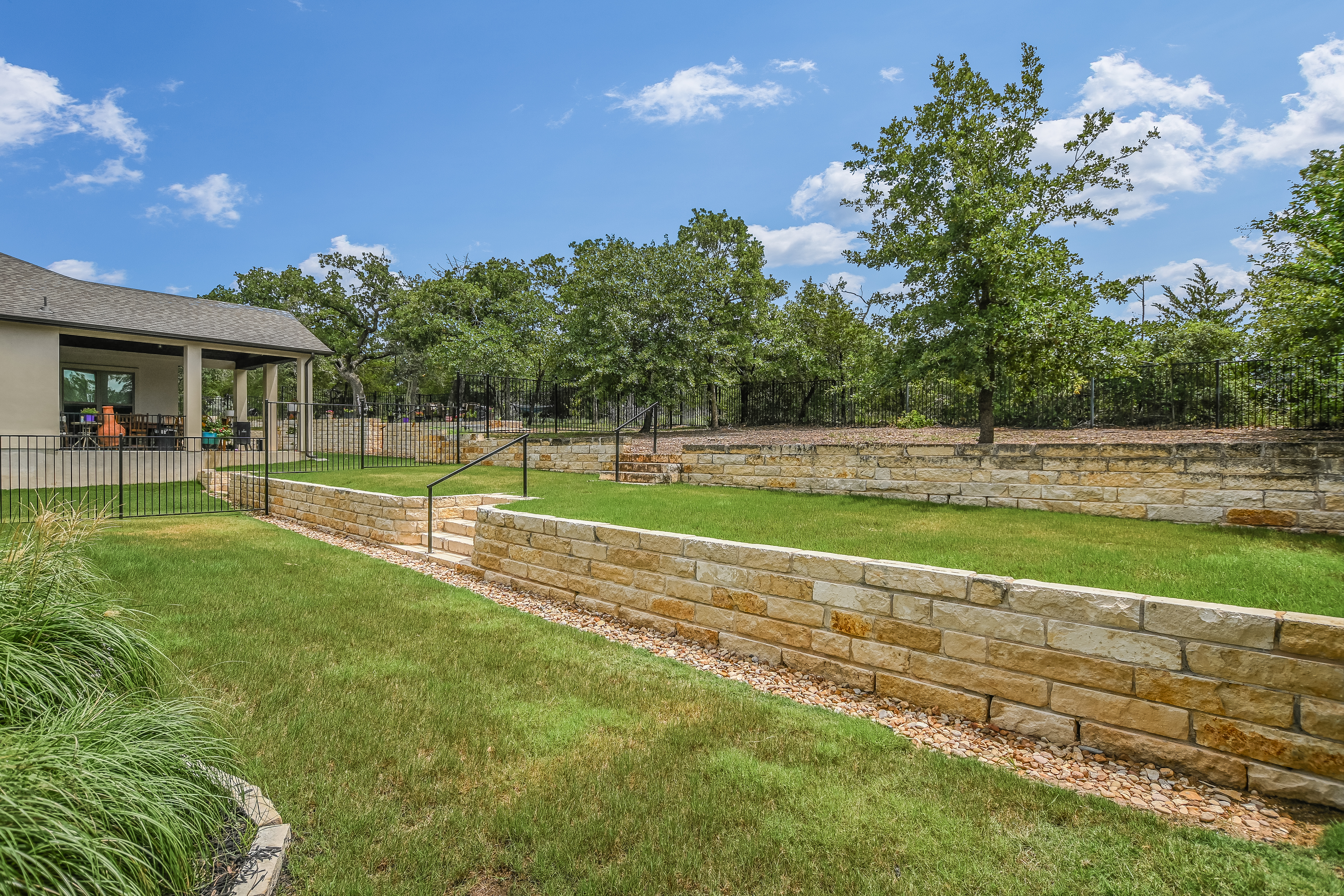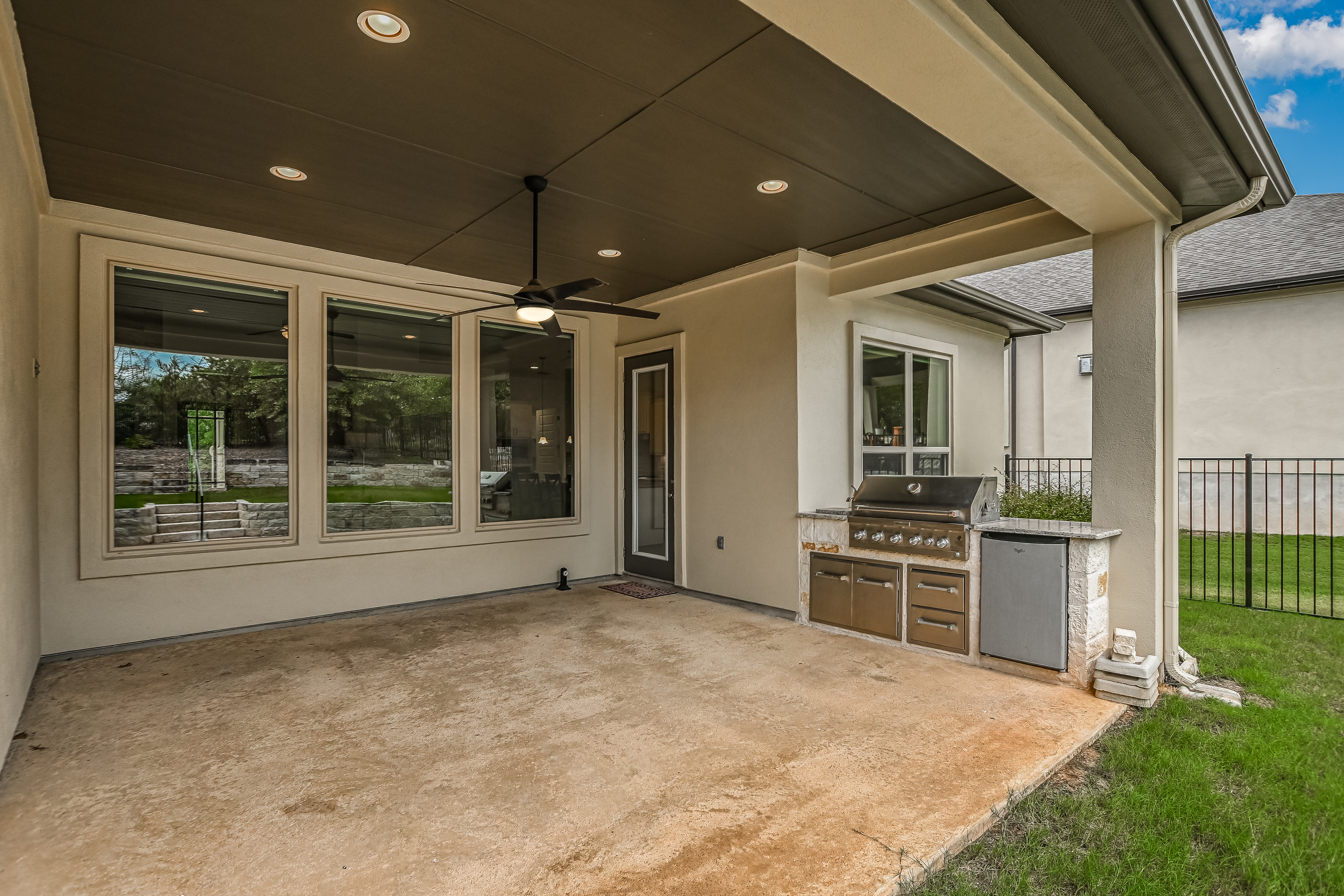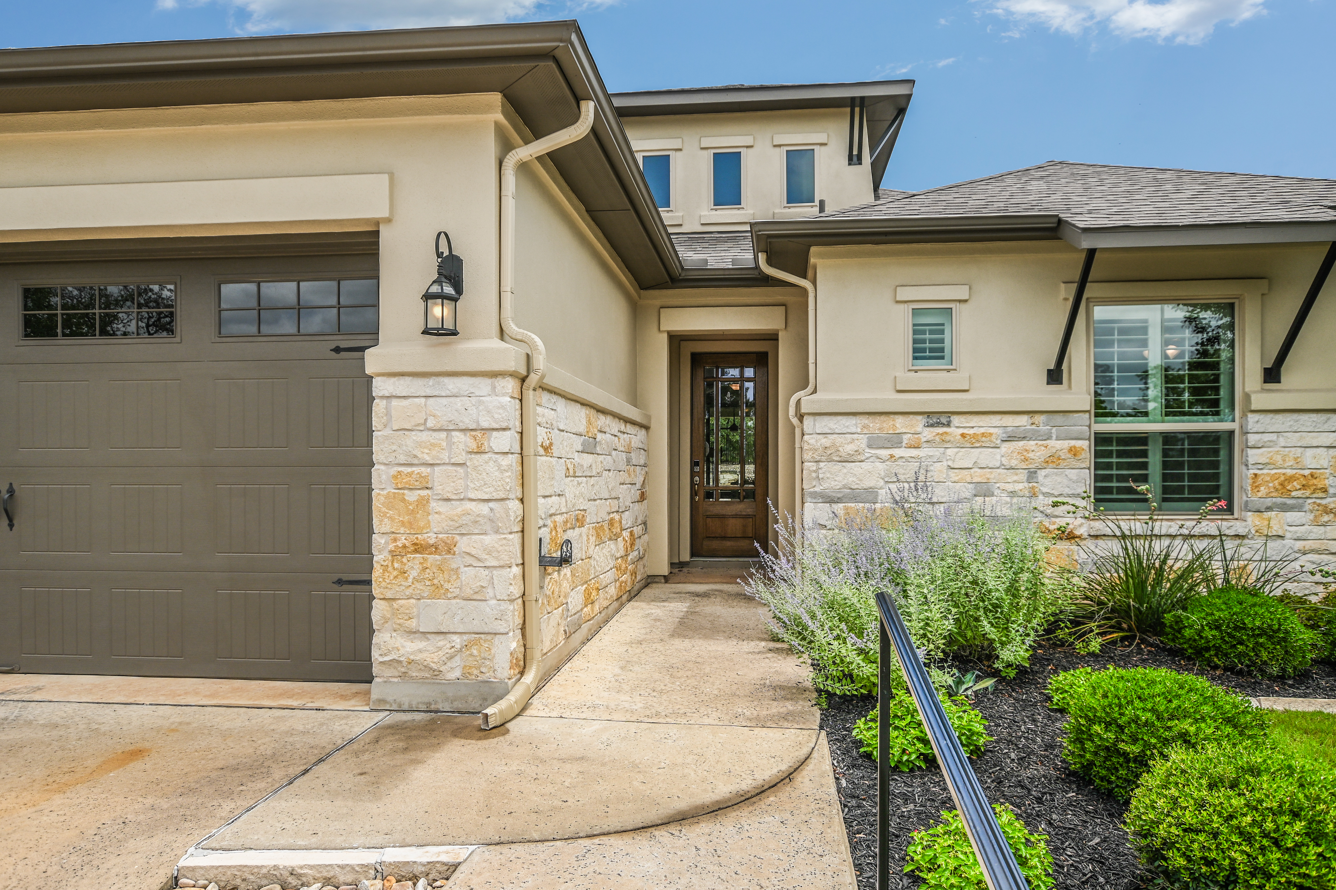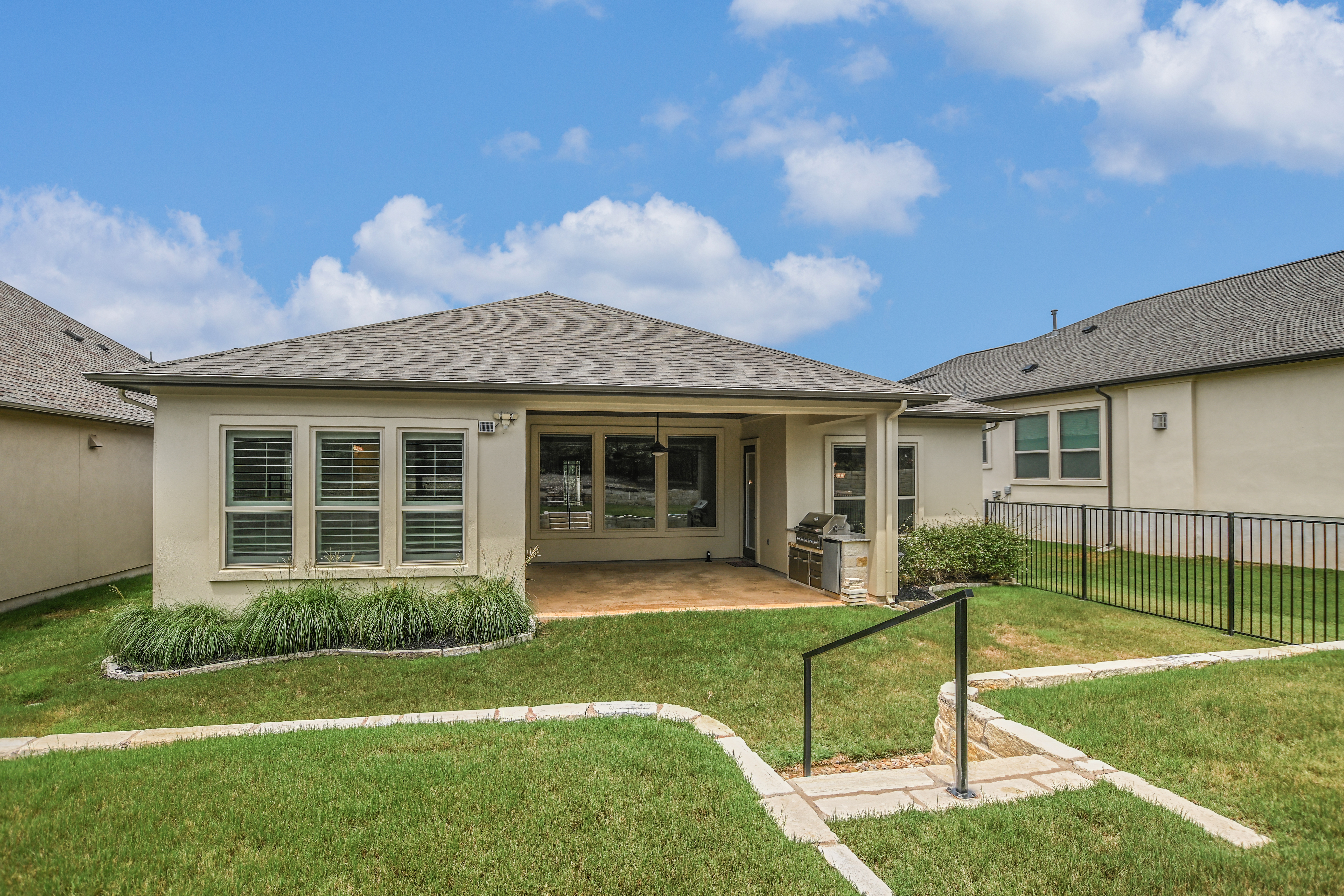 Gated Luxury Living in the Parklands! ~ Welcome to this exceptional Sitterle Home where elegance, comfort and modern design come together seamlessly. This beautifully upgraded stone and stucco residence with 2013sf of living space features a spacious open-concept layout that effortlessly connects the living, dining and kitchen areas – perfect for both entertaining and everyday living. The interior has been freshly painted. The well-appointed kitchen is equipped with Whirlpool and GE appliances, abundant counter and cabinet space, and a walk-in pantry for all your culinary needs. The expansive primary suite is a true retreat with plantation shutters, a built-in bed, dresser and night stands. The en-suite bathroom features dual vanities, a spacious walk-in shower and a thoughtfully designed custom closet. The office/study area provides privacy for those working remotely. This home is a true gem, offering a covered patio complete with an outdoor kitchen that includes BBQ grill, refrigerator and storage. Enjoy alfresco dining and the picturesque views of a wooded greenbelt and wrought iron fence in place for pets and unobstructed views. Energy efficiency meets peace of mind with installed solar panels and a whole-house generator. Enjoy a premier location with convenient access to ABIA, COTA, Boring Co., SpaceX, Tesla, X headquarters and Hyatt Lost Pines Resort and Spa.