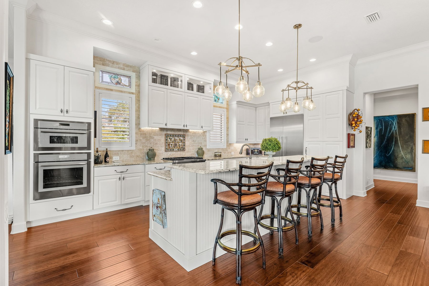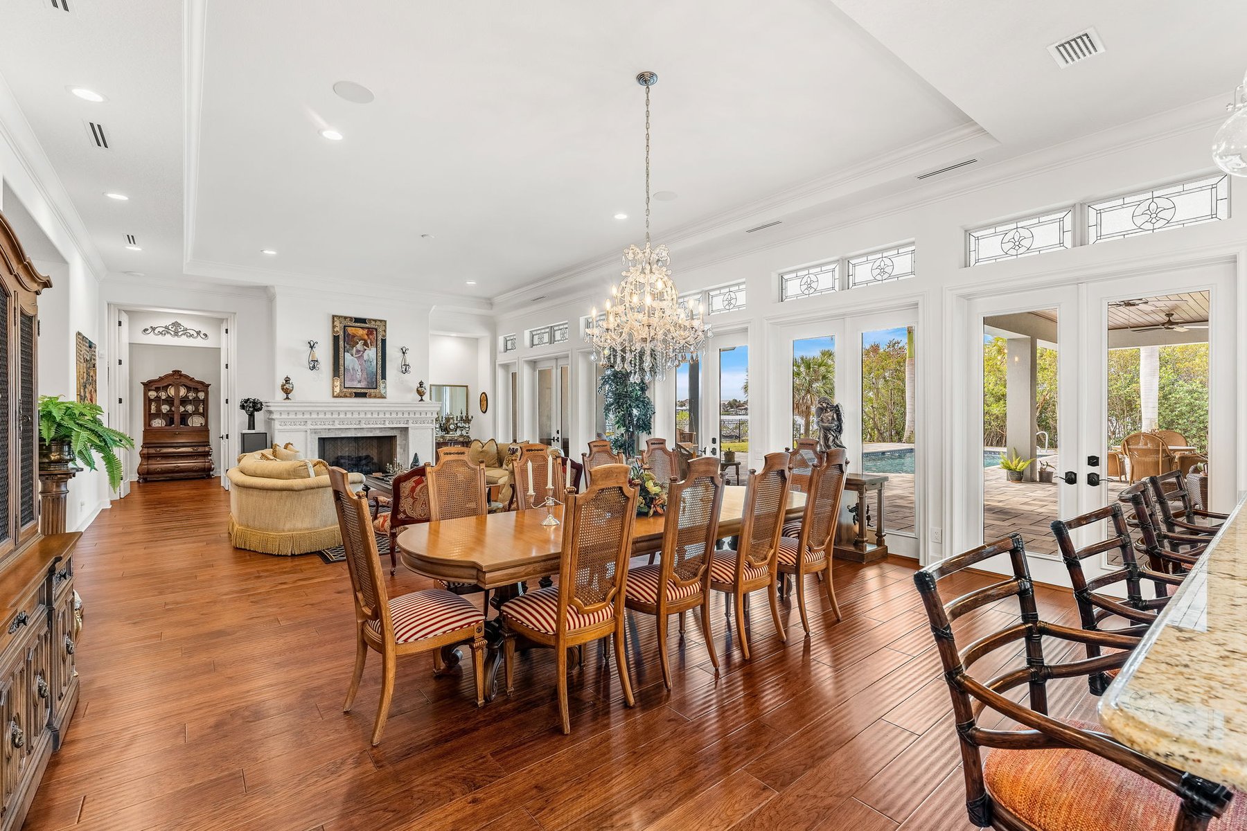 Positioned on 1.11 acres with 150 feet of direct Indian River frontage, this 2020 Arthur Rutenberg custom estate is located within Phase 1 of Lansing Island, the original Estate Section known for its larger, premier homesites.Built of concrete block construction with a concrete tile roof and full Miami Dade impact windows and doors, the residence offers over 5,000 square feet of single level living designed with intention and long term durability in mind.The split bedroom floor plan features either four bedrooms and four and a half baths, or three bedrooms plus a substantial office or flex space. From the moment you enter, expansive water views, elevated ceilings, and a seamless open layout create immediate presence. The interiors feel light and bright while maintaining warmth and character through ultra custom finishes, engineered wood flooring, granite surfaces, custom built ins, stained glass accents, and two gas fireplaces. The kitchen is refined and functional, appointed with Thermador appliances including a gas range, wall oven, and wine refrigeration, positioned to connect effortlessly to both the main living areas and outdoor spaces. The primary suite offers private courtyard access, dual dressing rooms, and an adjoining flex space currently utilized as a private gym. Outdoors, a saltwater pool overlooks deep water frontage and a private dock and boat lift. A gated porte cochere entry leads to the three car garage, adding architectural presence and privacy. Three zone HVAC and integrated security complete the home's infrastructure. In addition to the 5,010 square feet currently under air, the home was constructed with a substantial unfinished second story footprint, providing the rare opportunity to expand the estate in the future if desired.Within Lansing Island's 24 hour guard gated setting, privacy, security, and estate scale living come together in one of the Space Coast's most exclusive waterfront communities. Just 15 minutes to Melbourne Orlando International Airport, approximately one hour to Orlando International Airport, and 10 minutes to the beach, the location balances seclusion with convenience in a way few properties can.