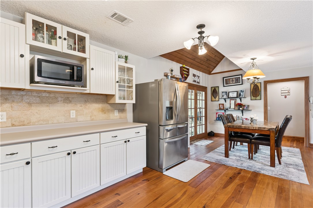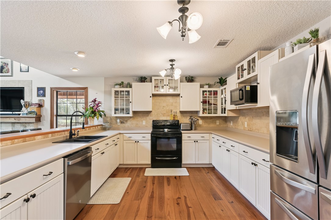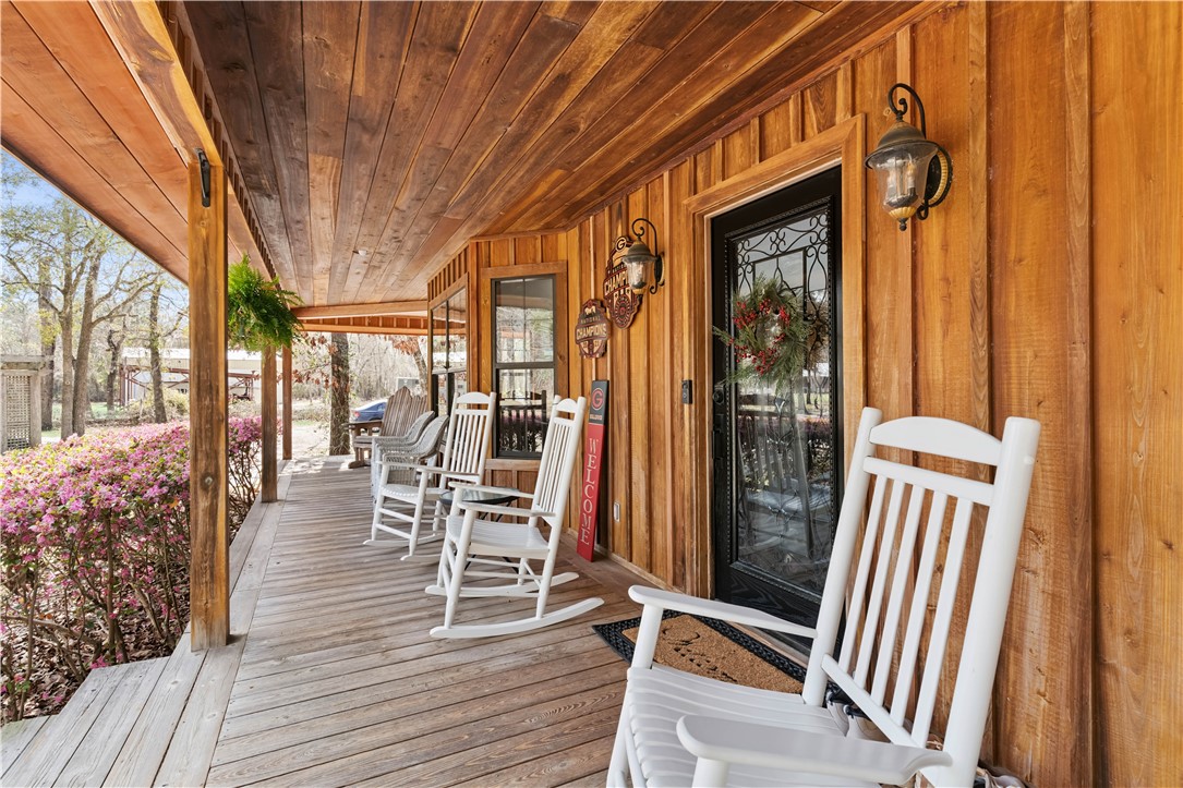 Beautiful wood cabin-style home with a cypress exterior and wraparound front porch complete with a swing. The main level of home features great room with gas log fireplace, kitchen, dining, powder room, laundry and primary bedroom. The spacious fully equipped kitchen offers lots of cabinetry and a breakfast bar. The primary bedroom is located on the main level and includes an ensuite bathroom with a tile shower and walk-in closet. Upstairs are two guest bedrooms, a full bathroom, and a loft area. A stack washer and dryer remain with the home. The property includes an above-ground pool that can remain or be removed based on buyer preference, a workshop/storage building, and an RV/boat carport for covered parking. Much of the 4.61-acre property remains wooded. UTILITIES: Okefenokee Power, Private Well, Septic tank, fireplace is gas log but would require a Propane Tank (no tank in place), High Speed Internest with Brantley Telephone. Metal Roof original, HVAC approx 8 yrs, Water Heater 3 yrs.