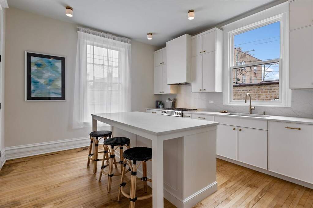 Stunningly rehabbed 6 bed / 3 bath SFH in the perfect Logan Square location. This home has been carefully renovated to preserve vintage charm, while incorporating contemporary comforts. Enter through the restored front door that leads to a charming foyer with a large coat closet. The living and dining rooms are separated by original 8' pocket doors and offer 10' ceilings, inlaid Pine and Oak floors, and oversized bay windows. The kitchen is impeccable; high quality custom cabinetry, Bosch appliances, a large island and pantry with a coffee bar. A full bathroom on the main floor serves a guest bedroom. There are two additional rooms that can function as offices, playrooms, or bedrooms; all with professionally organized closets. Upstairs are three bedrooms and two bathrooms. The generously sized primary suite features a walk-in closet as well as additional storage. The primary bathroom includes a dual vanity with abundant storage, linen shelving, and a large shower. The remaining two bedrooms are charming with organized closets, skylights and hardwood floors throughout. The basement is wide open and ready for your personalization. There is a dedicated laundry room, mechanical room, and storage room. Convenient direct exterior access from the basement. Outside is a brick-paver parking pad as well as paver patio and a charming fenced yard. The home includes new custom wood windows, new porches, and is ready for a new owner to make it into their home! Only steps from the newly redeveloped center of Logan Square, this is a quintessential location. The CTA Blue Line, Farmer's Market, restaurants/bars such as Lula Cafe, Longman & Eagle, Webster's, Andros Taverna and more are all less than a ten minute walk.
